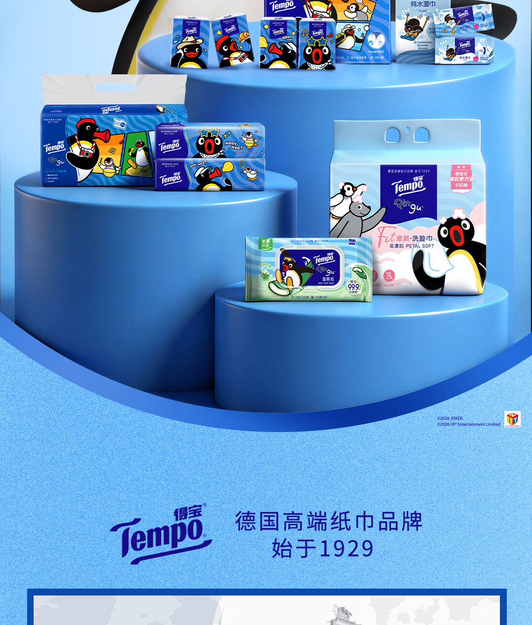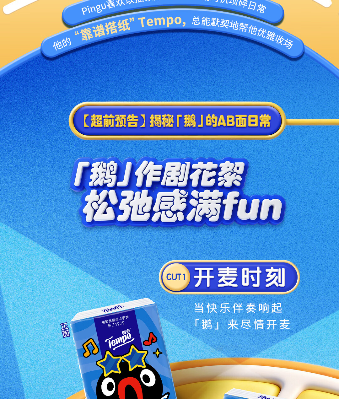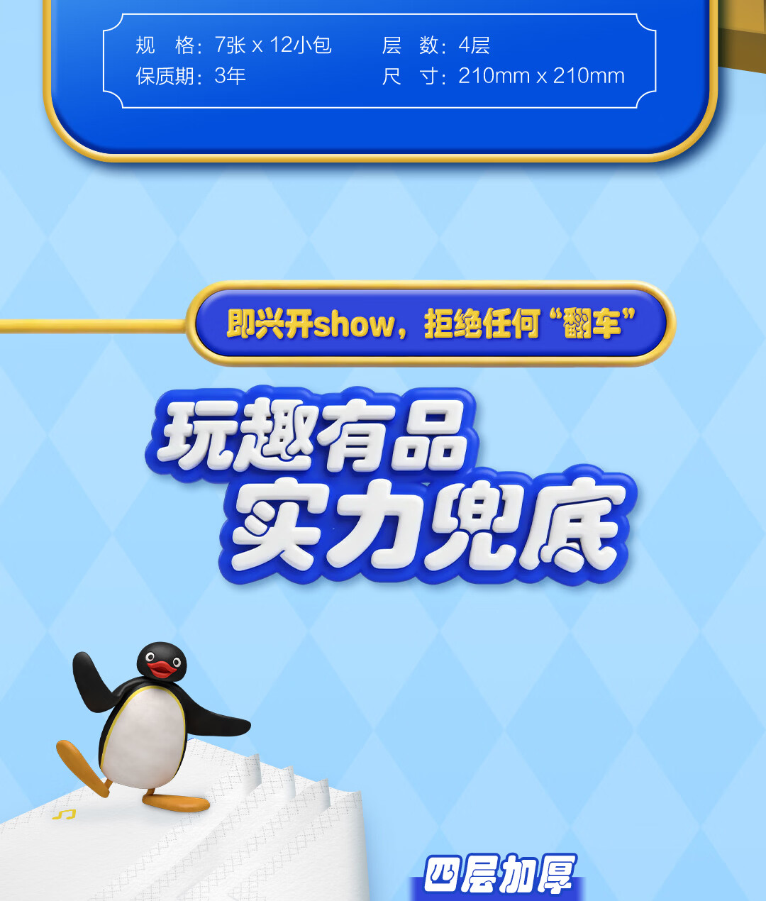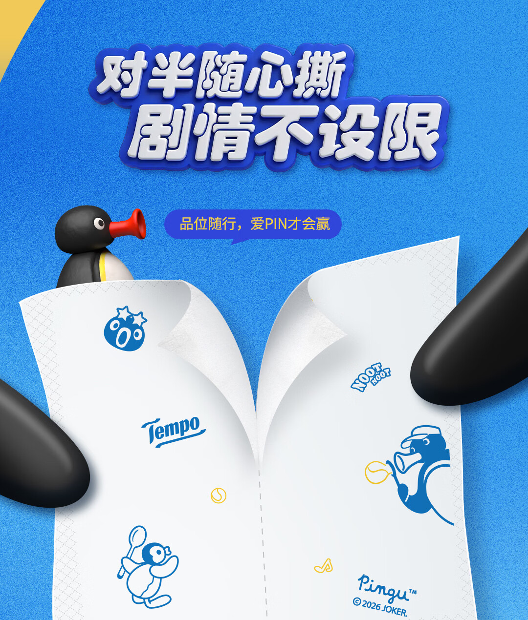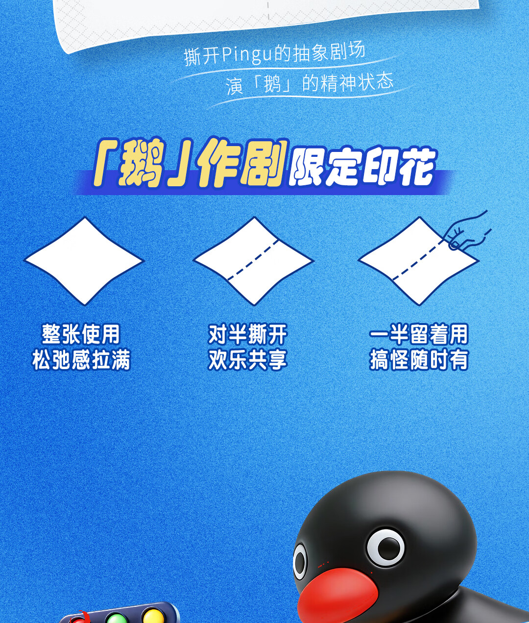 得宝(TEMPO)Pingu联名款手帕纸 4层7张*12包 企鹅印花无香纸手帕 面巾纸
