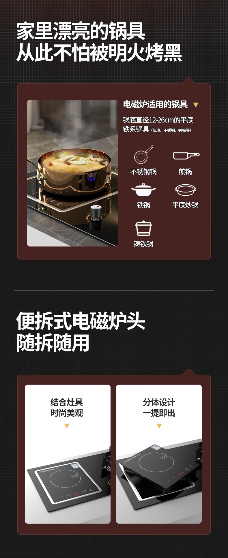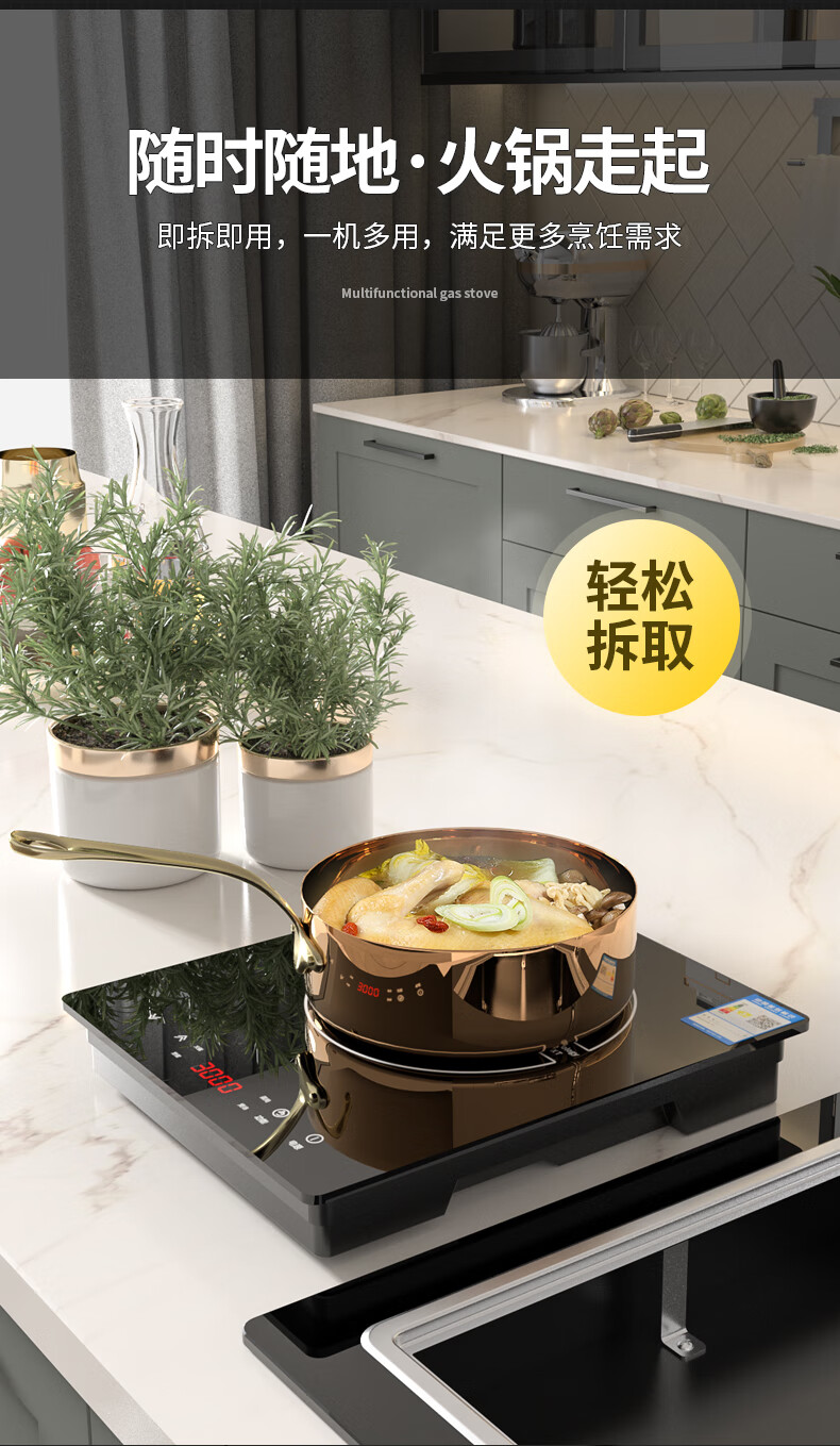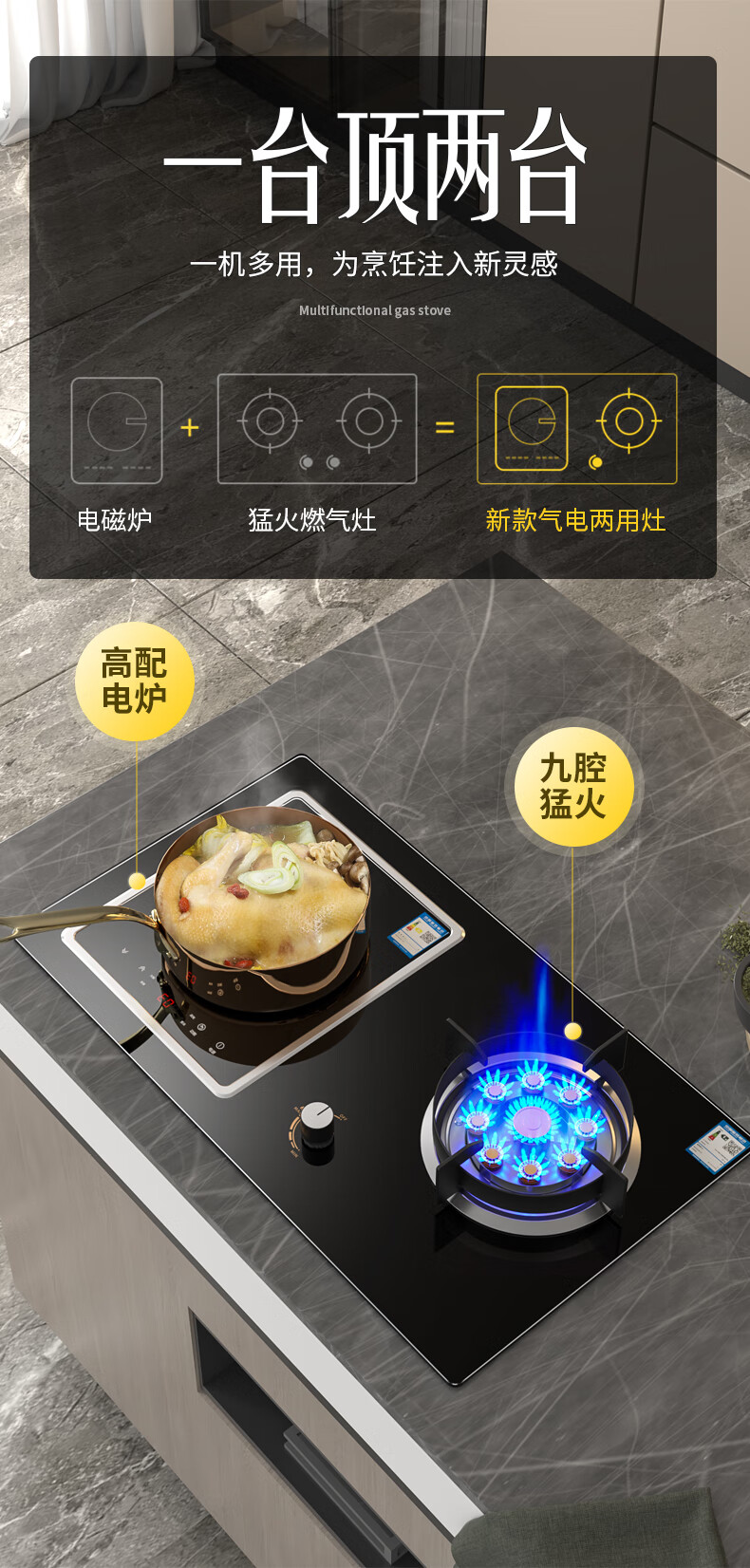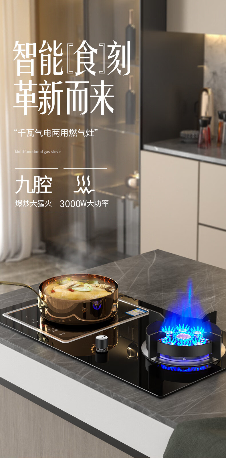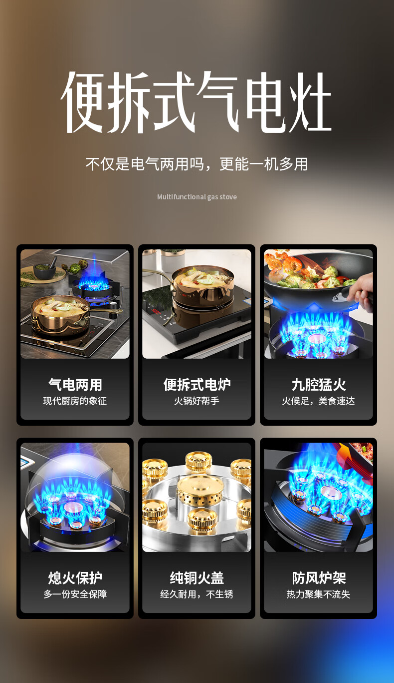 老板生活ROVBOANI家用燃气灶可拆卸电磁炉燃气灶气电猛火节能天然气液化汽 钢化玻璃节能气电灶/左电右气 天然气