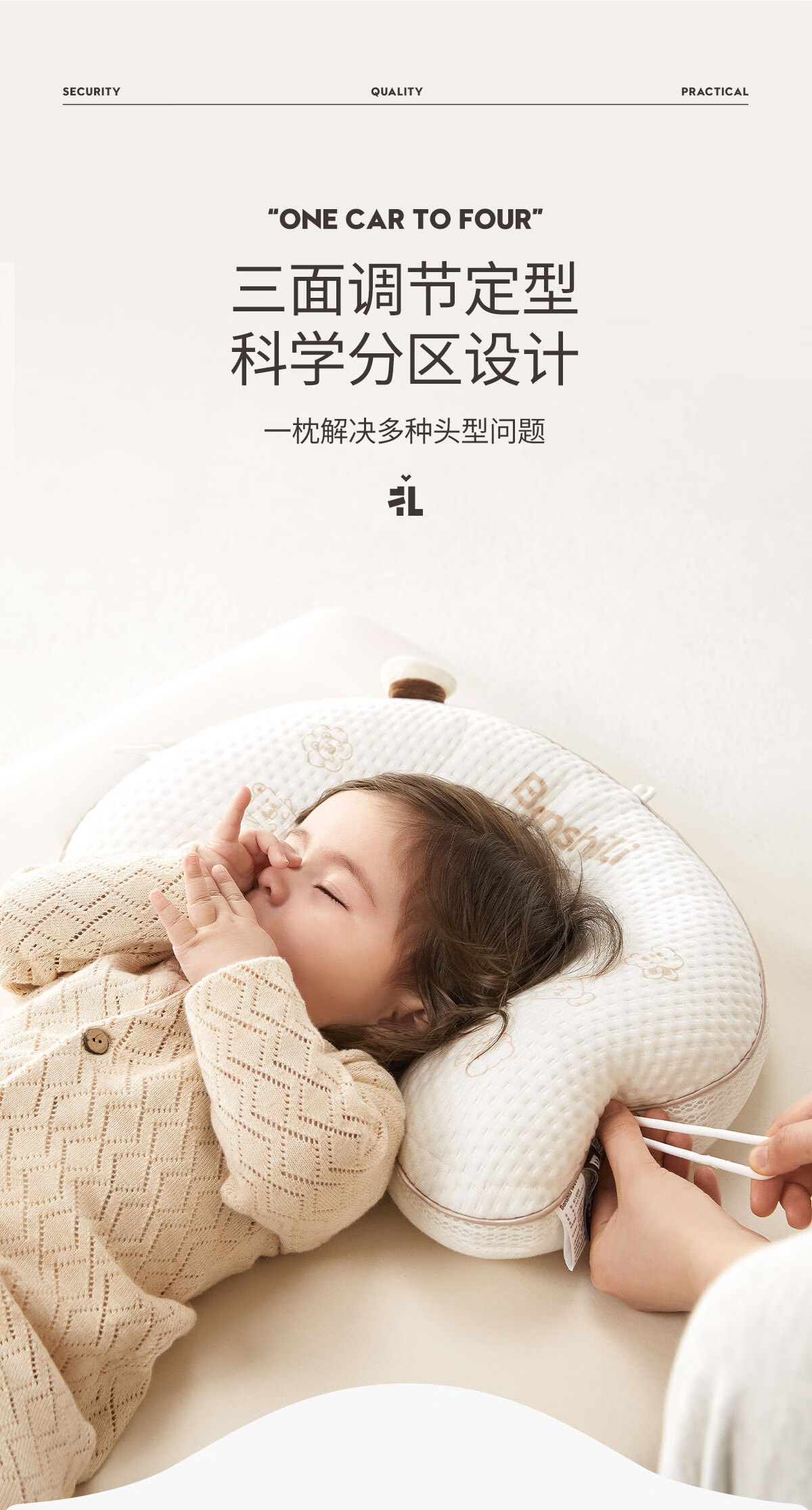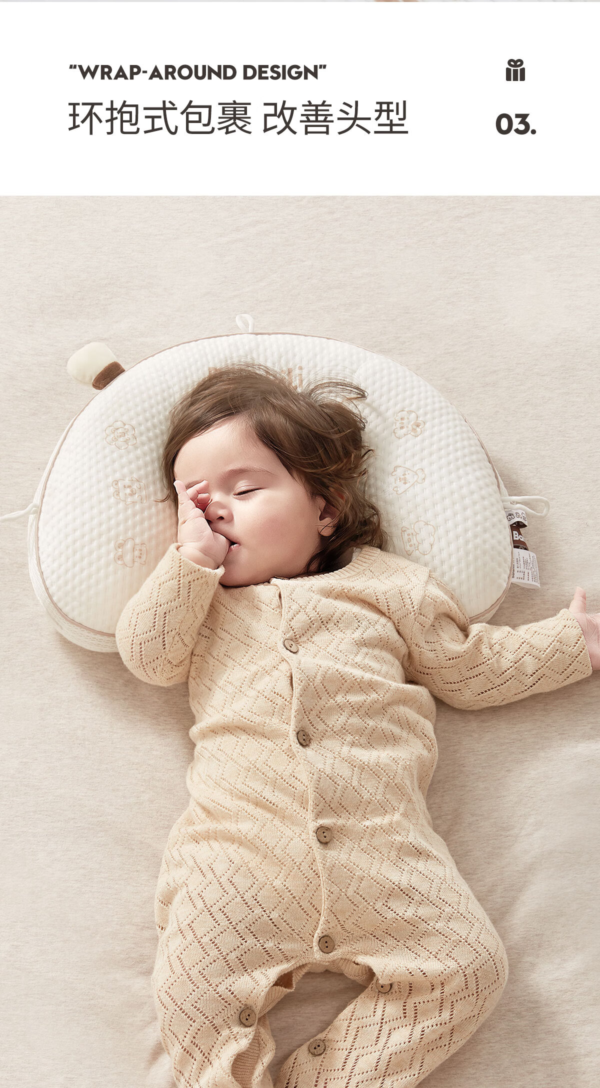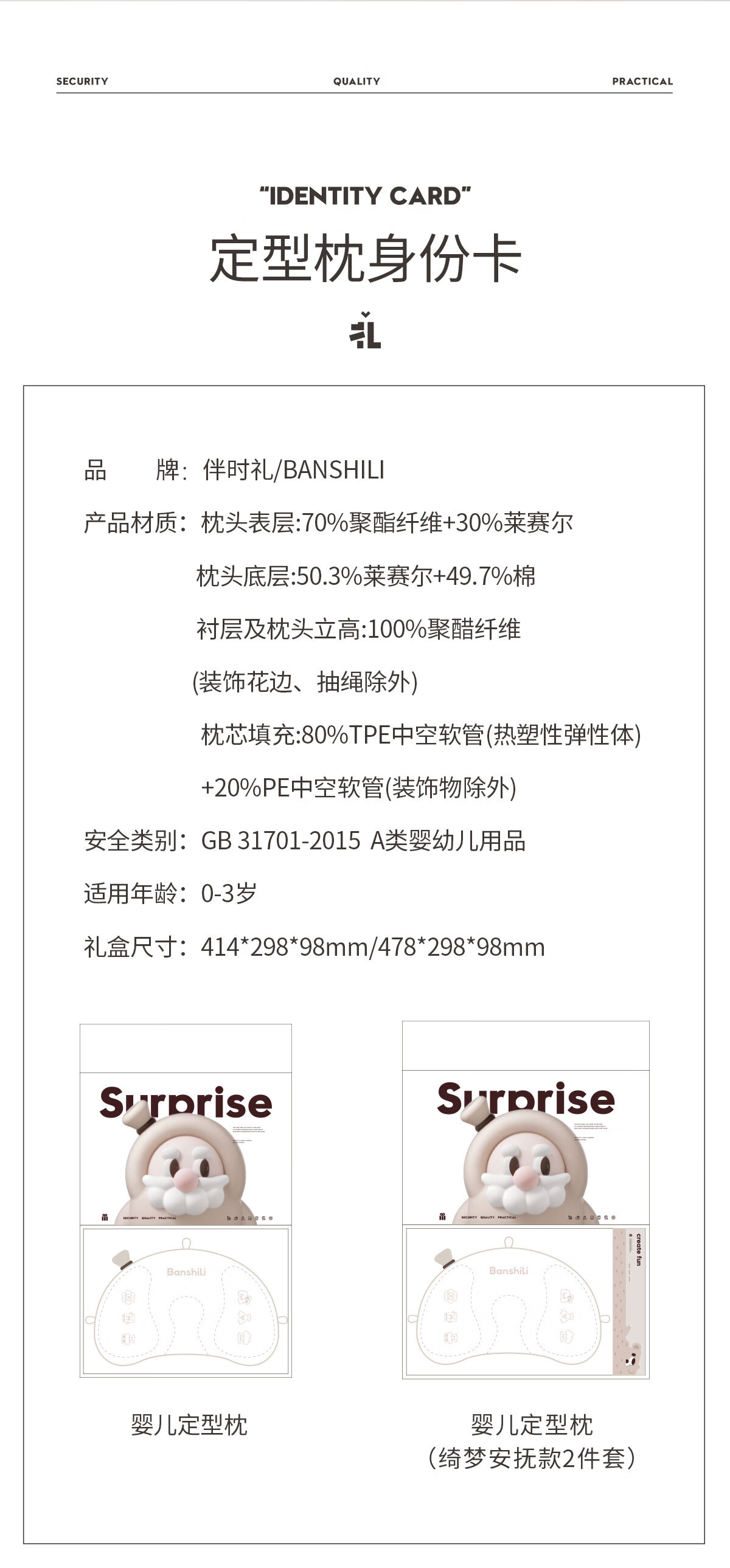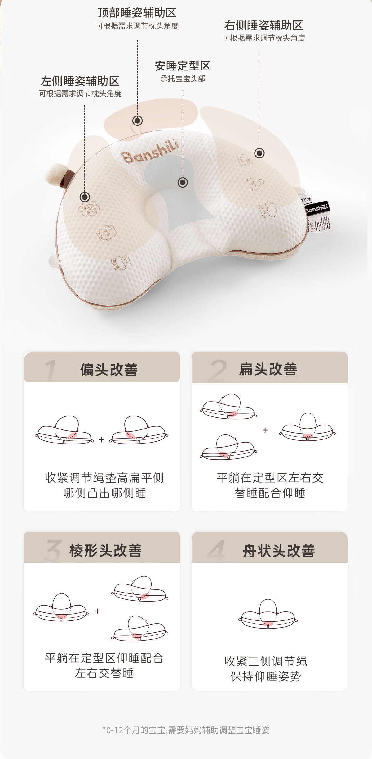 伴时礼定型枕头婴儿枕头0-1岁定型枕宝宝枕头头型矫正枕头实用满月礼物 婴儿定型枕【安抚组合款】 纯色