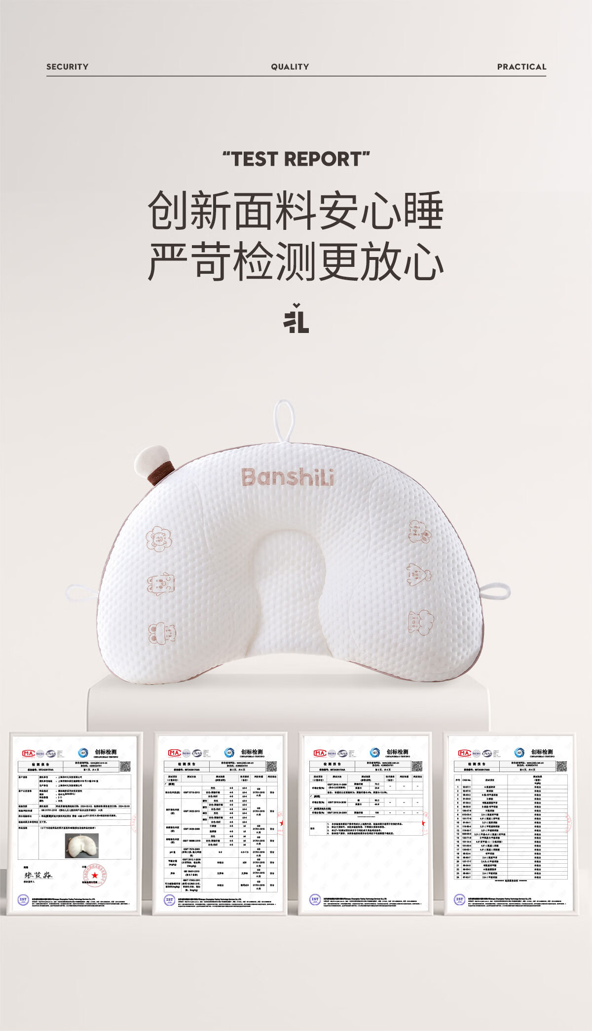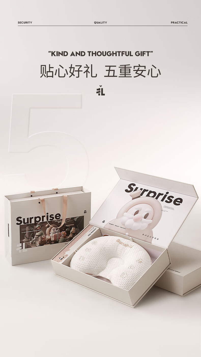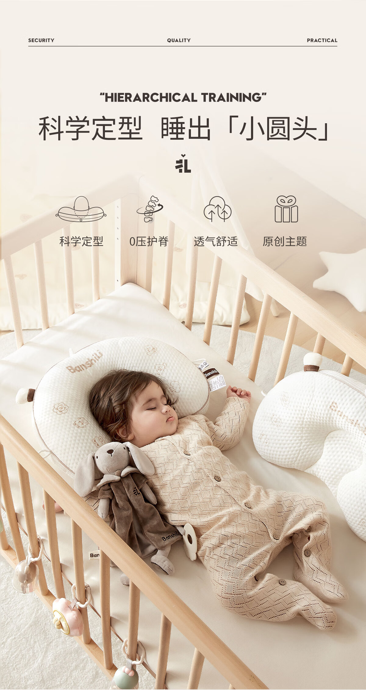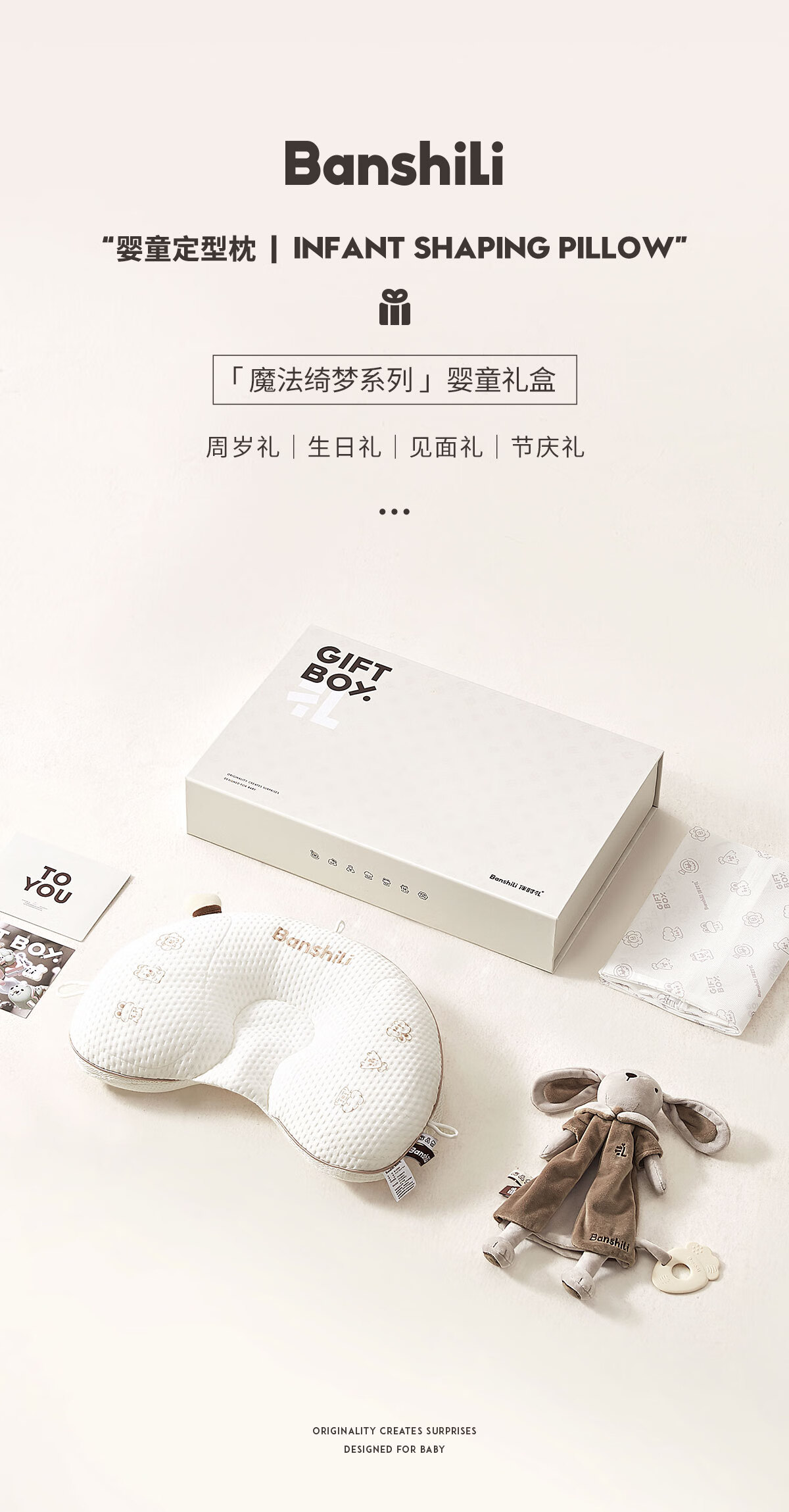 伴时礼定型枕头婴儿枕头0-1岁定型枕宝宝枕头头型矫正枕头实用满月礼物 婴儿定型枕【安抚组合款】 纯色
