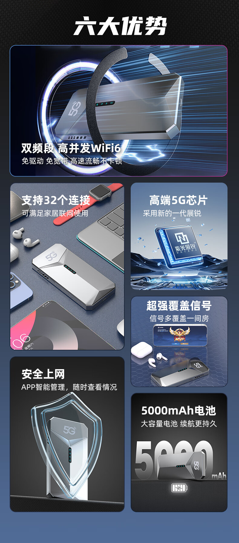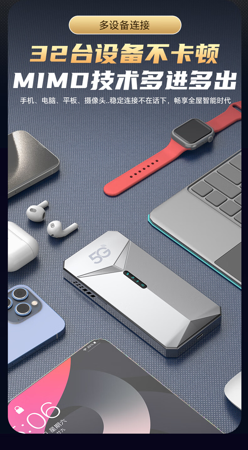 牧歌真5g随身wifi6千兆双频免插卡便携式cpe路由器适用车载上网卡移动联通高速流量上网宝mifi通用 真5G【顶配版】石墨灰-WIFI6
