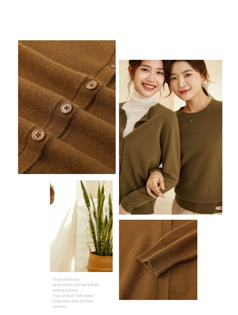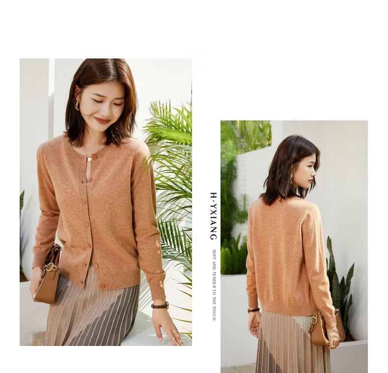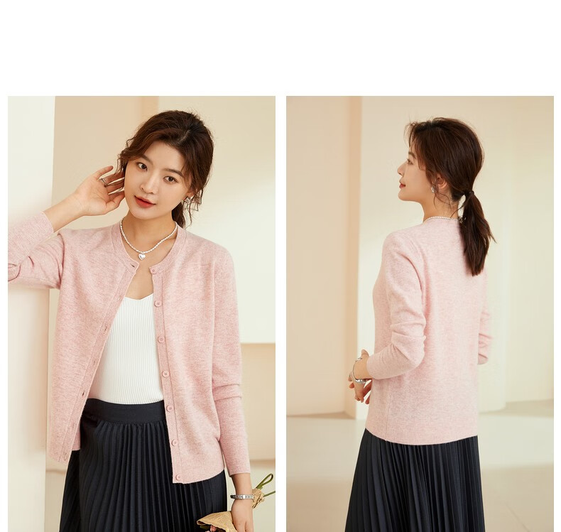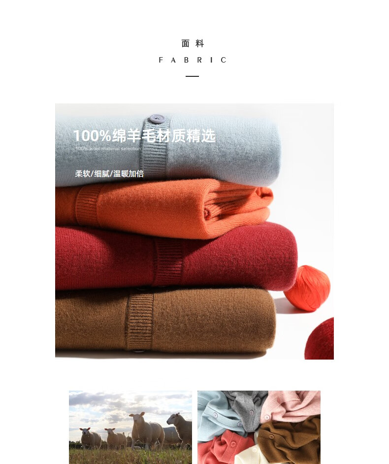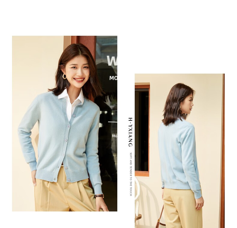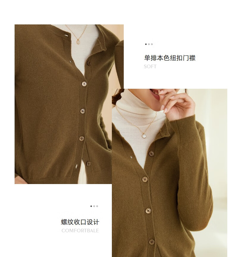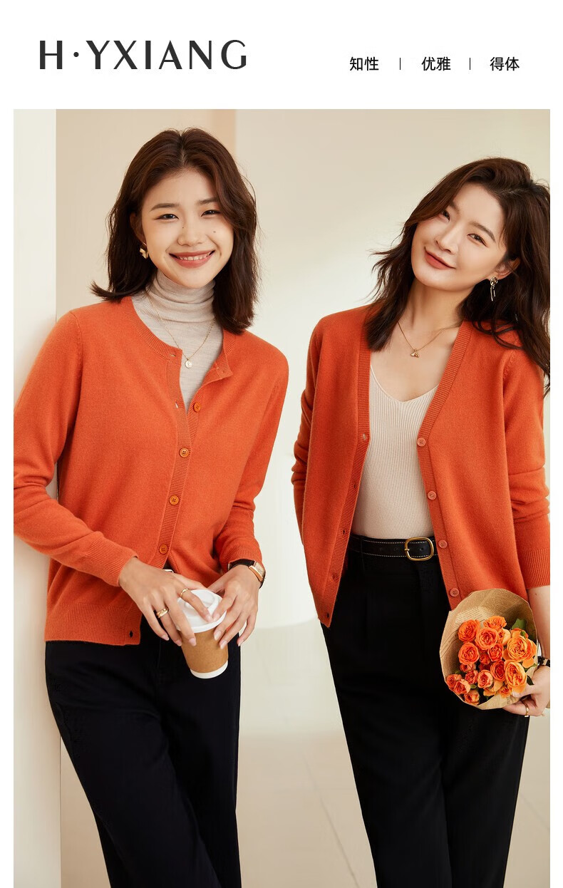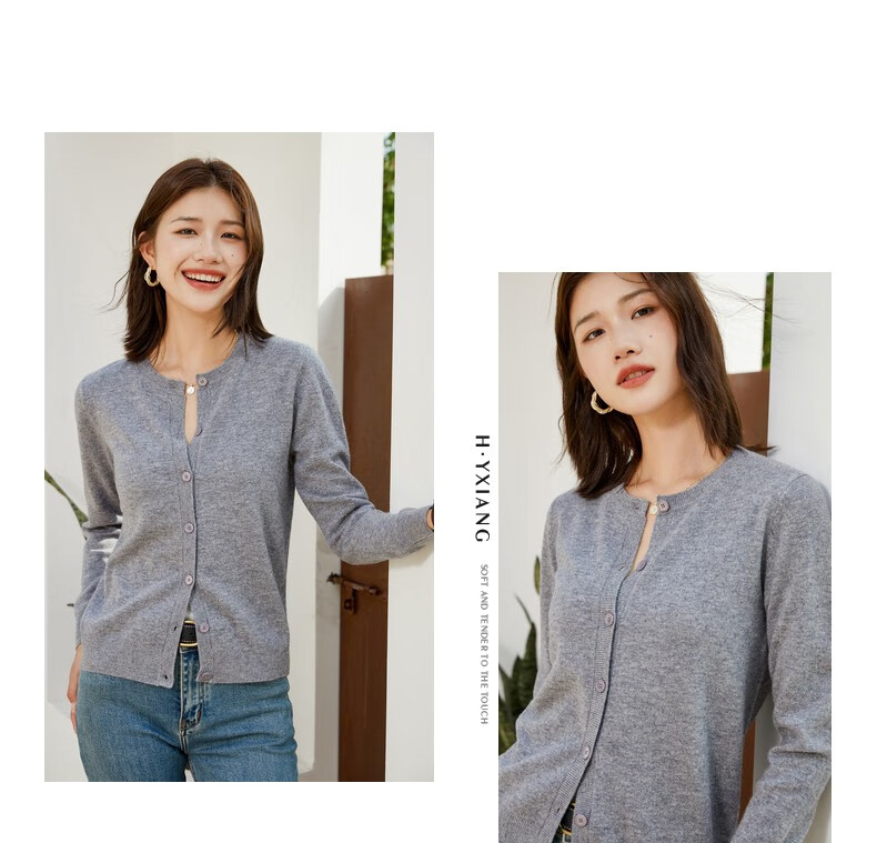 恒源祥纯色圆领羊毛衫女开衫秋冬新款毛衣外套时尚外穿纽扣insV领针织衫 烟灰色 M /165/88A