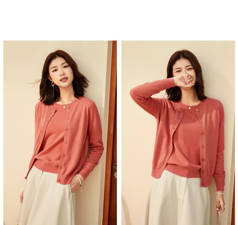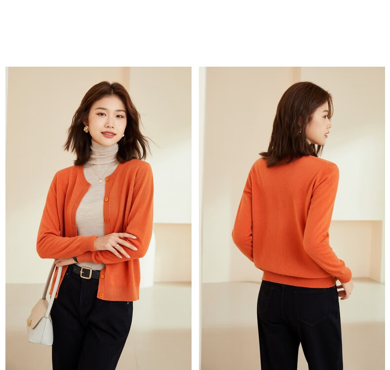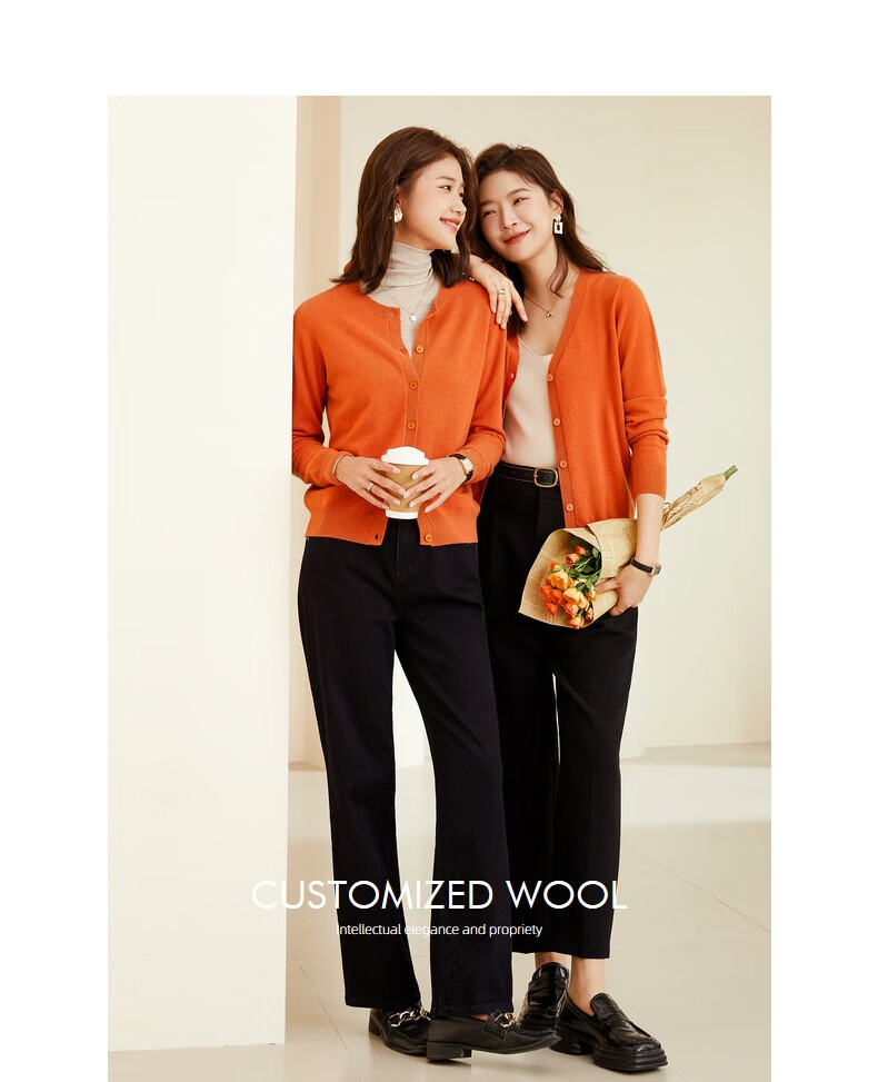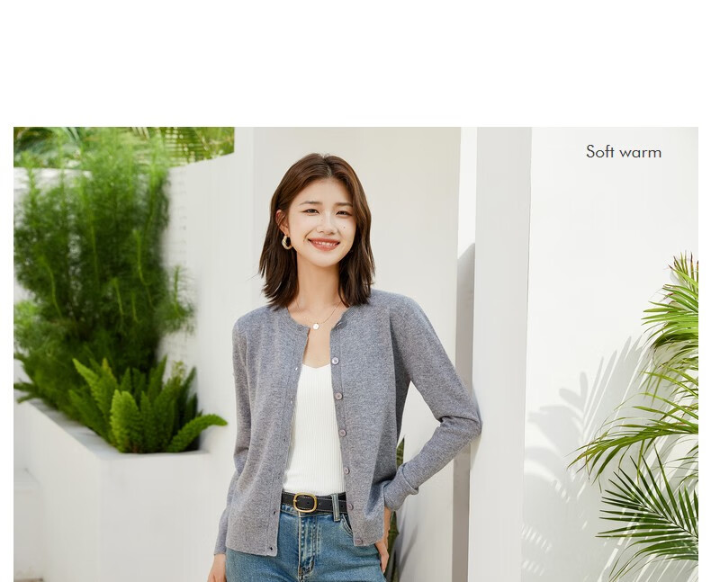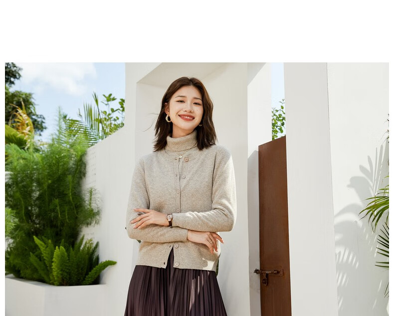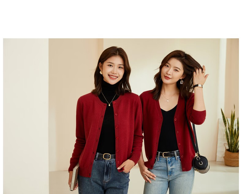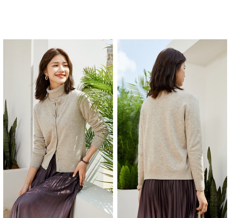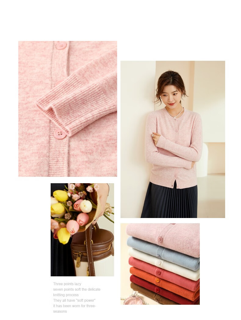 恒源祥纯色圆领羊毛衫女开衫秋冬新款毛衣外套时尚外穿纽扣insV领针织衫 烟灰色 M /165/88A