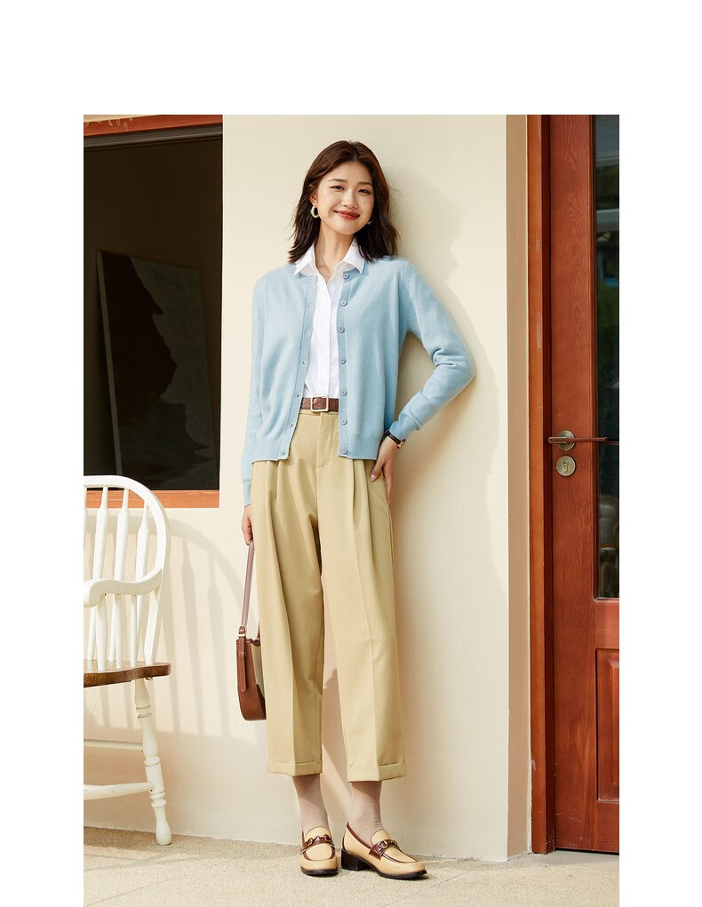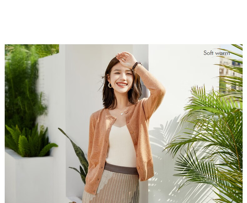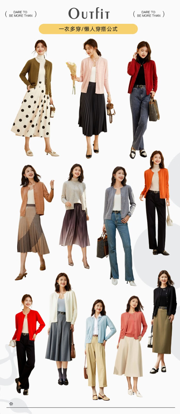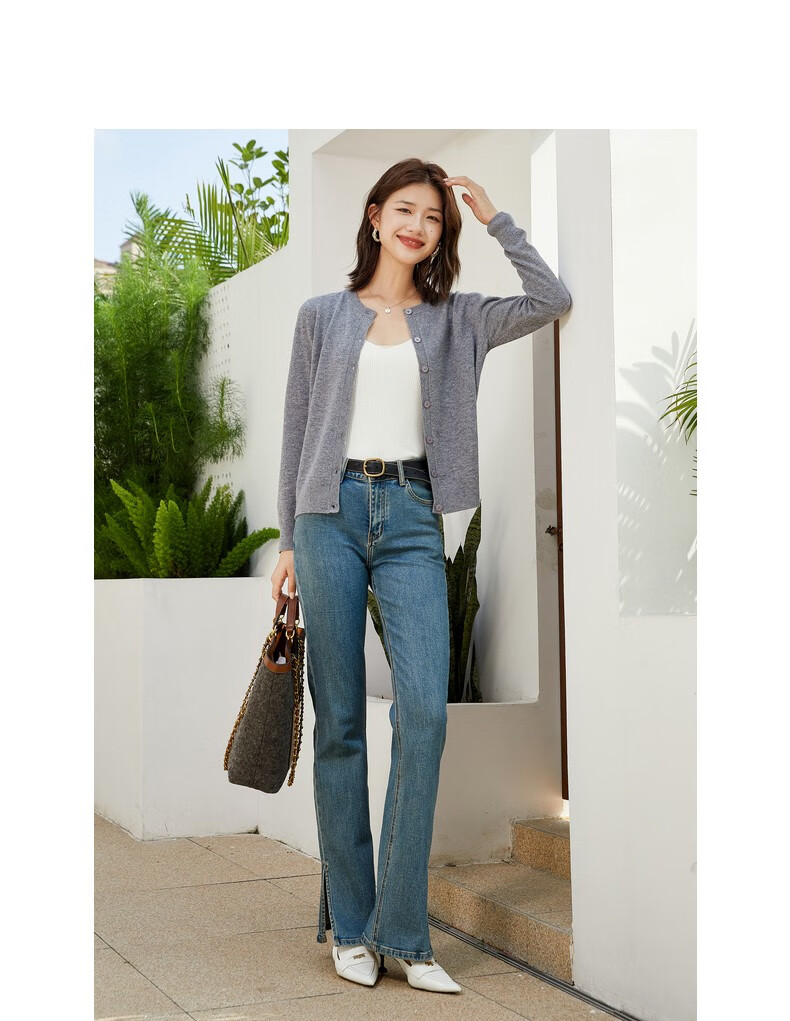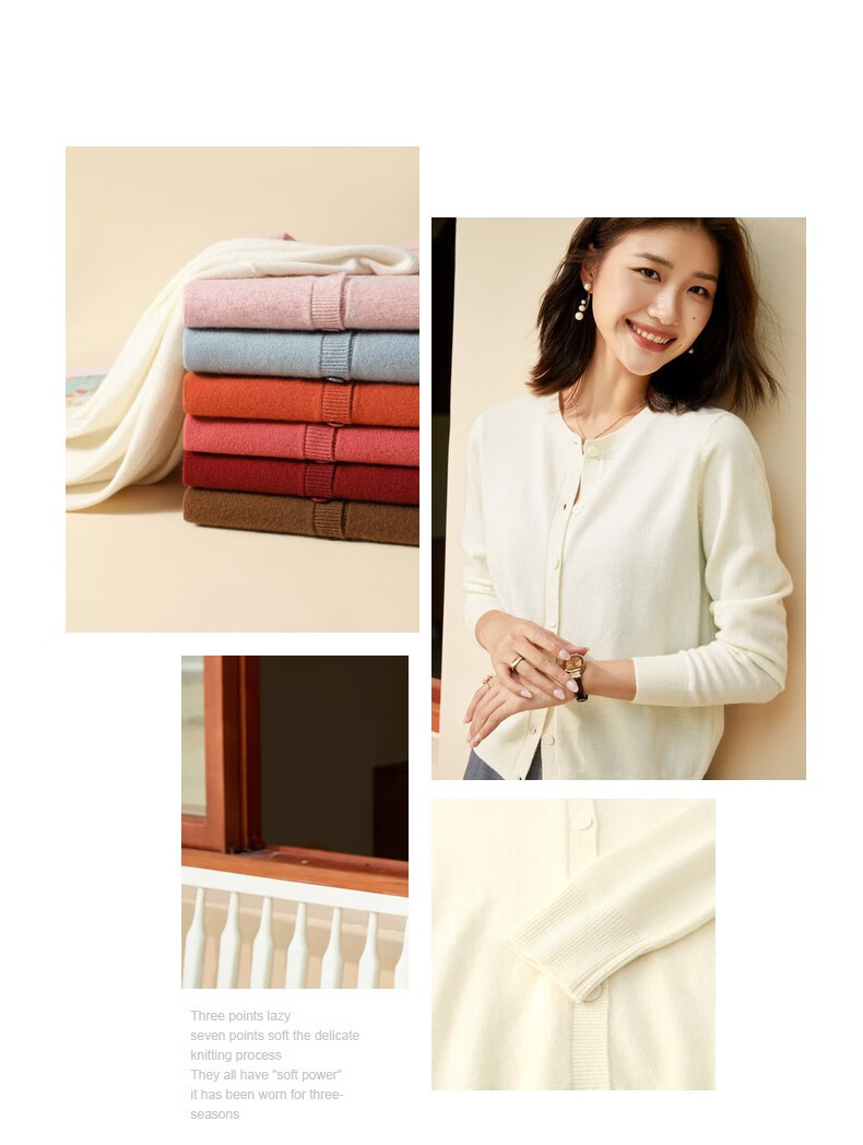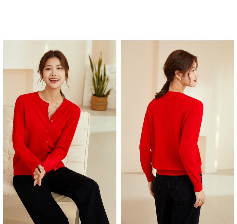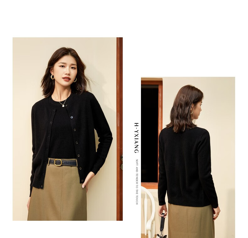 恒源祥纯色圆领羊毛衫女开衫秋冬新款毛衣外套时尚外穿纽扣insV领针织衫 烟灰色 M /165/88A