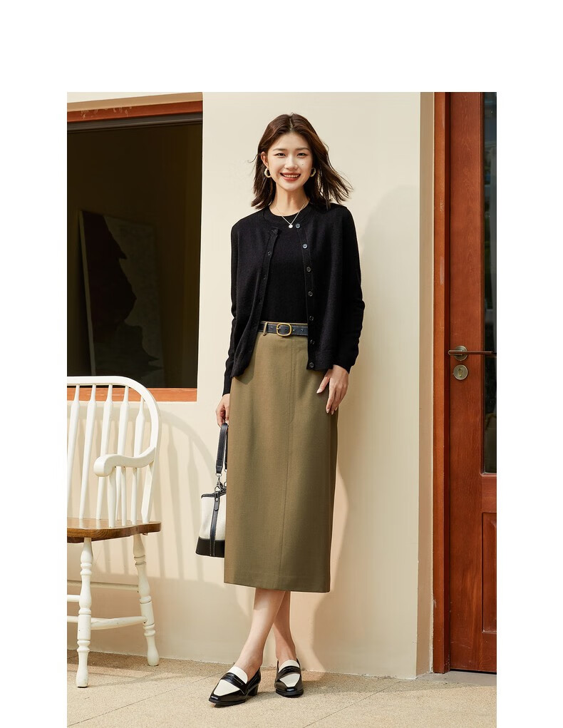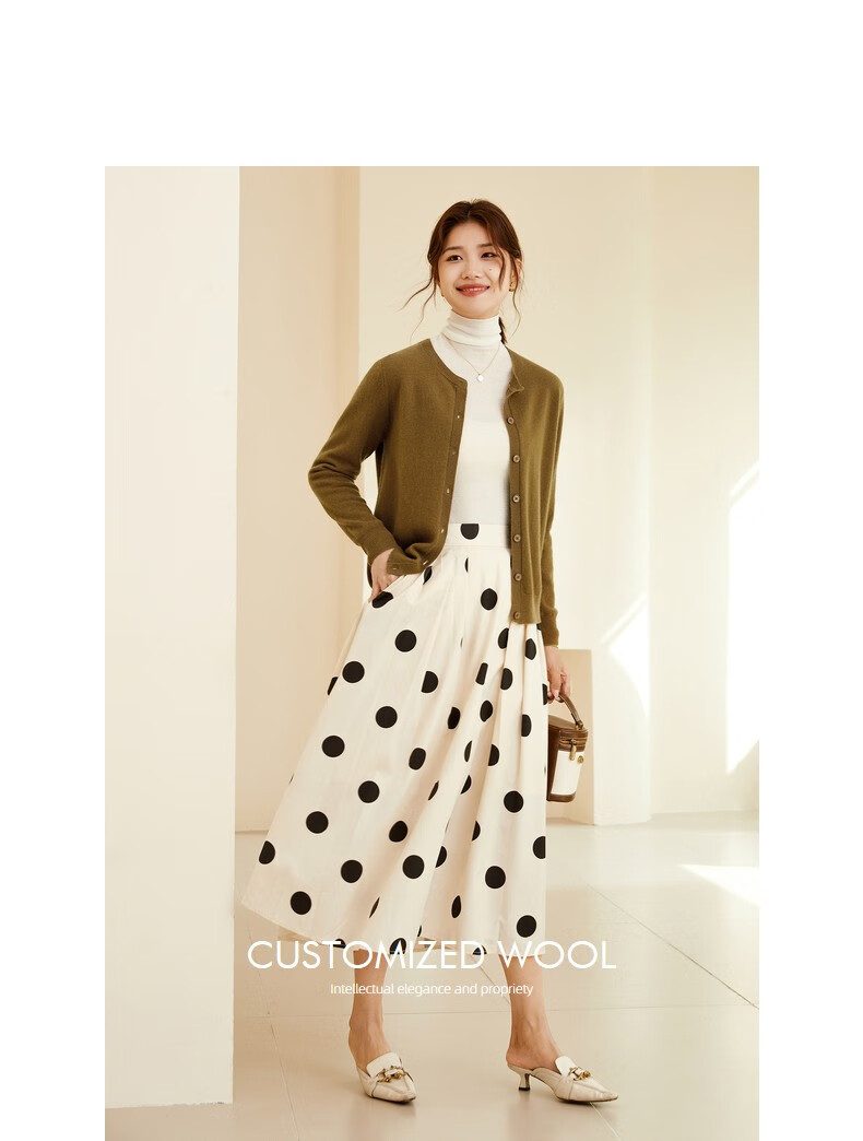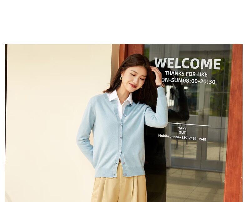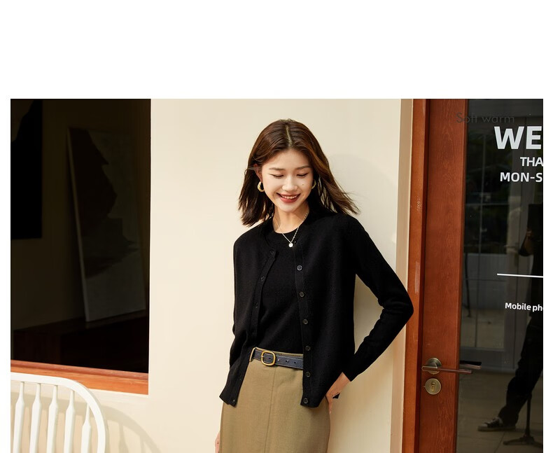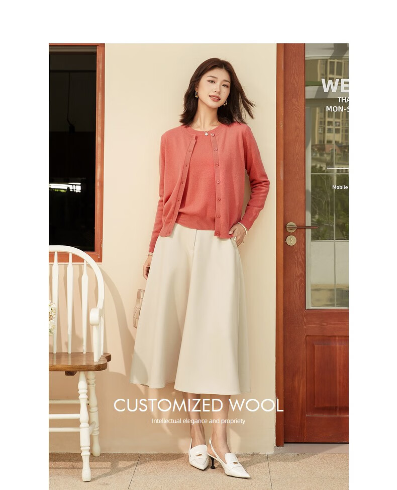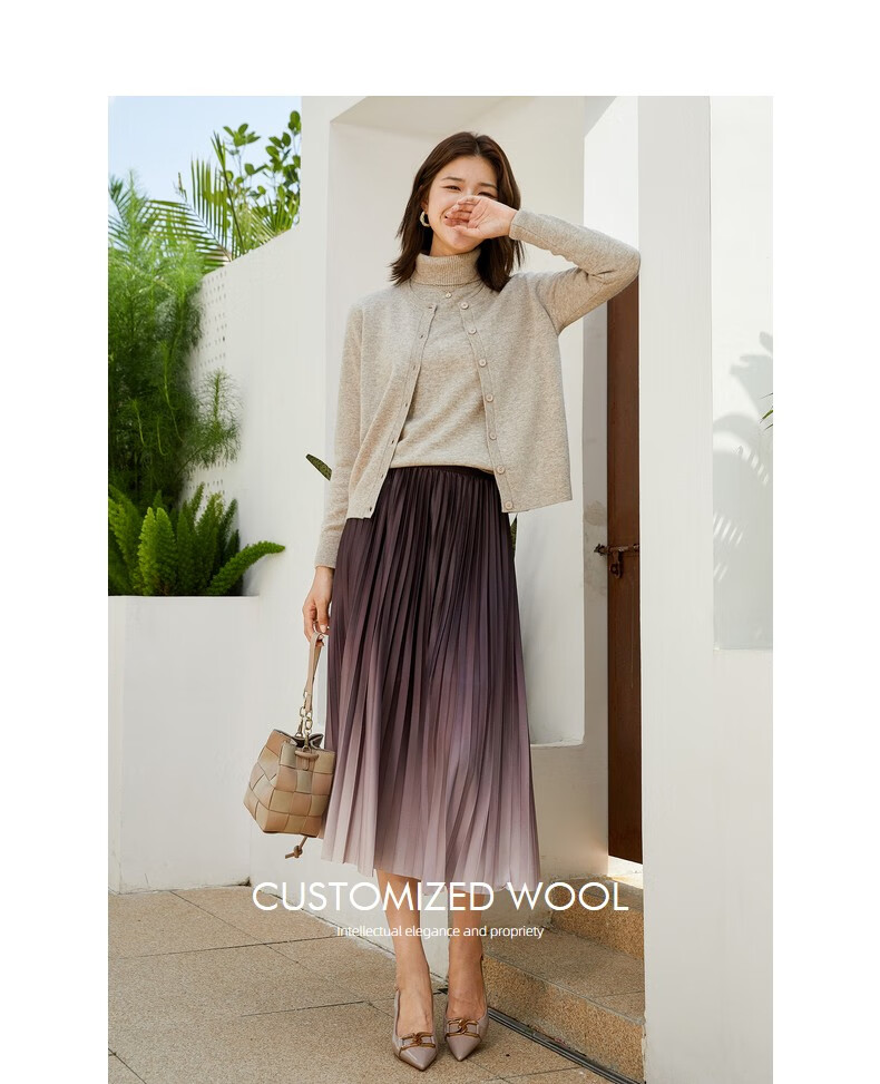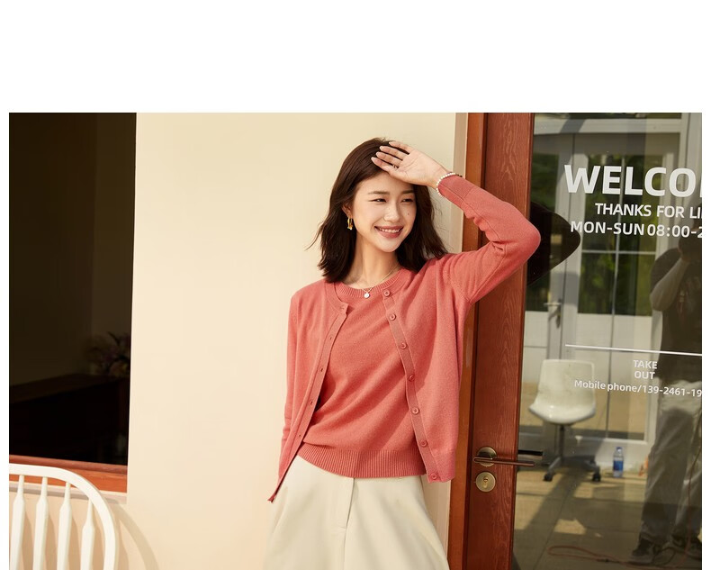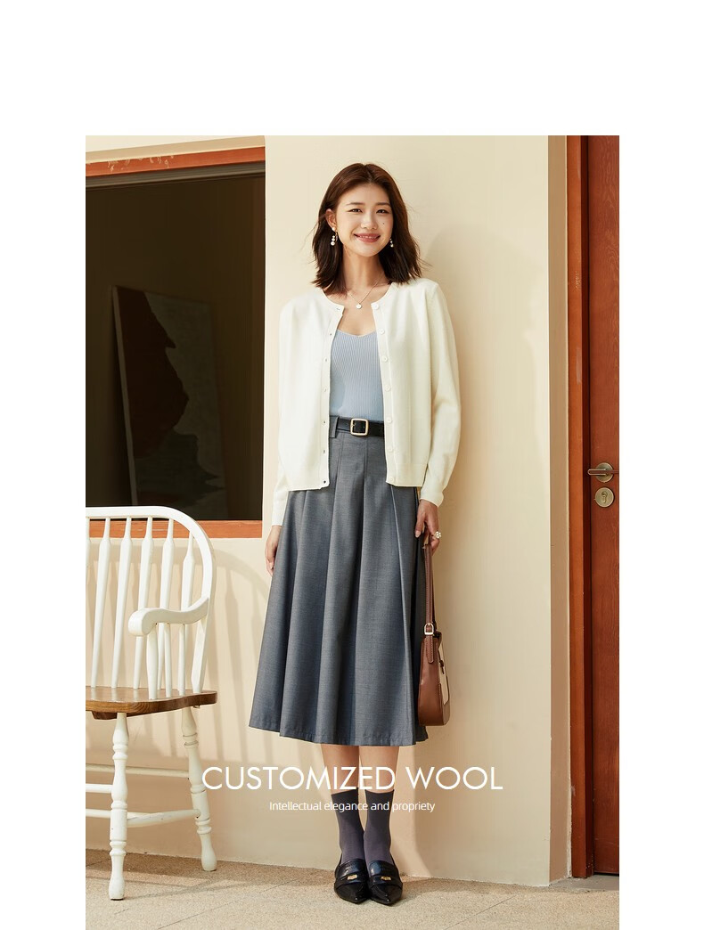 恒源祥纯色圆领羊毛衫女开衫秋冬新款毛衣外套时尚外穿纽扣insV领针织衫 烟灰色 M /165/88A