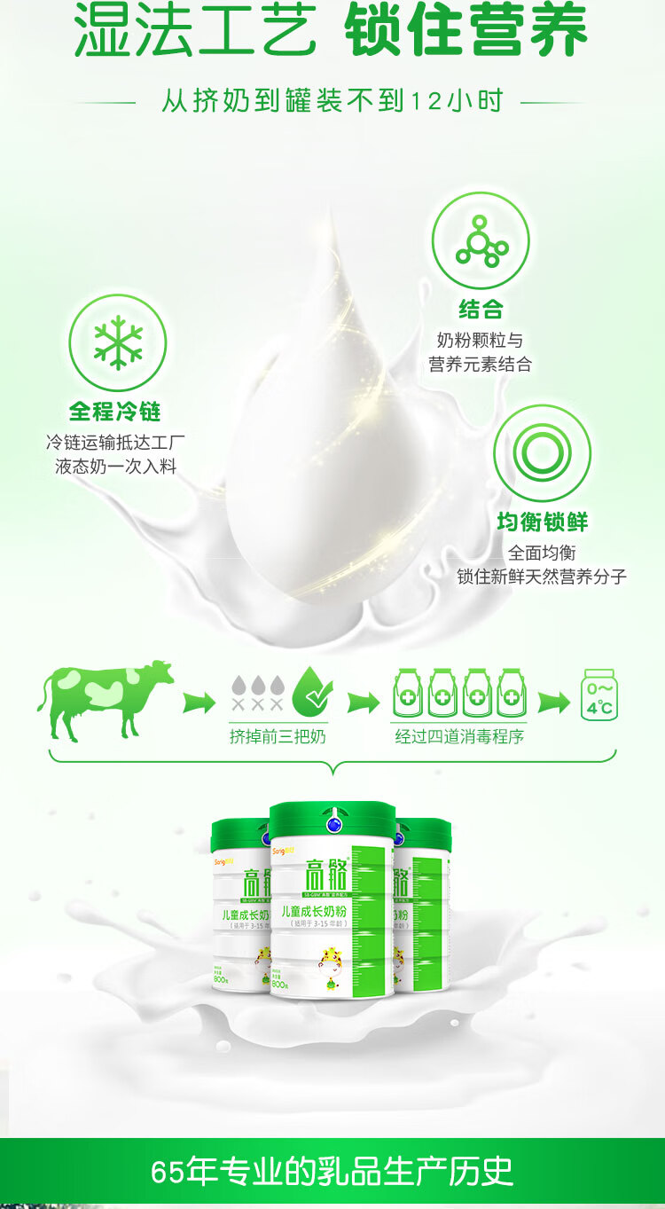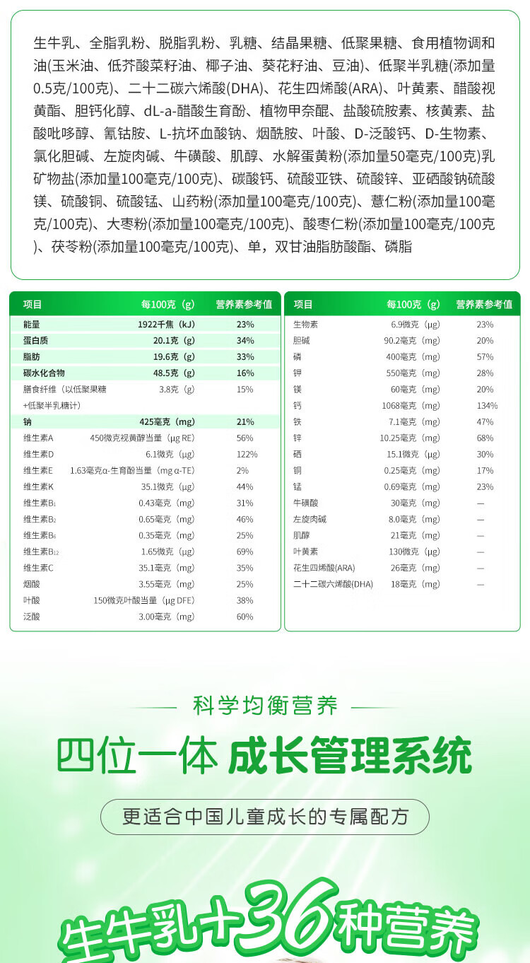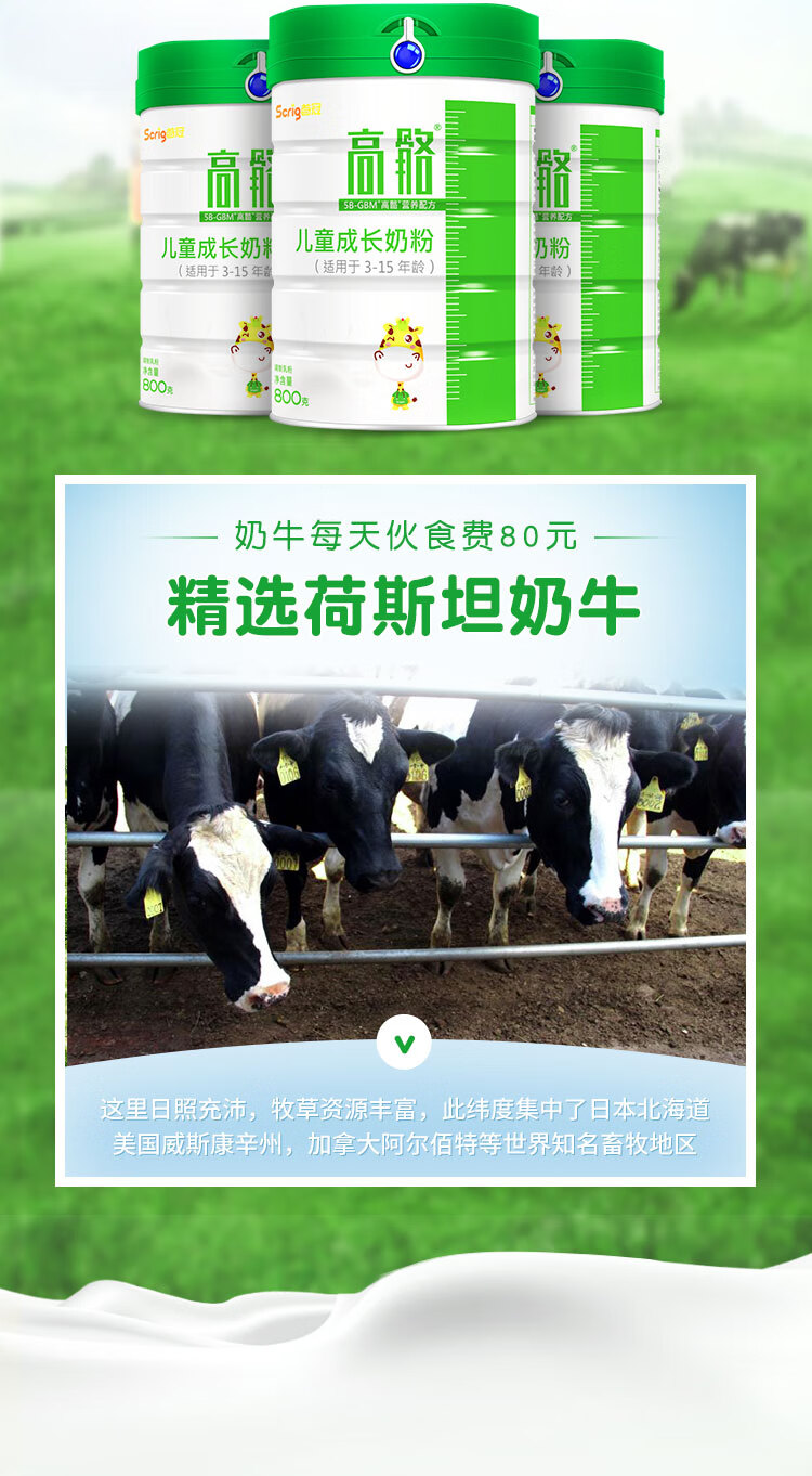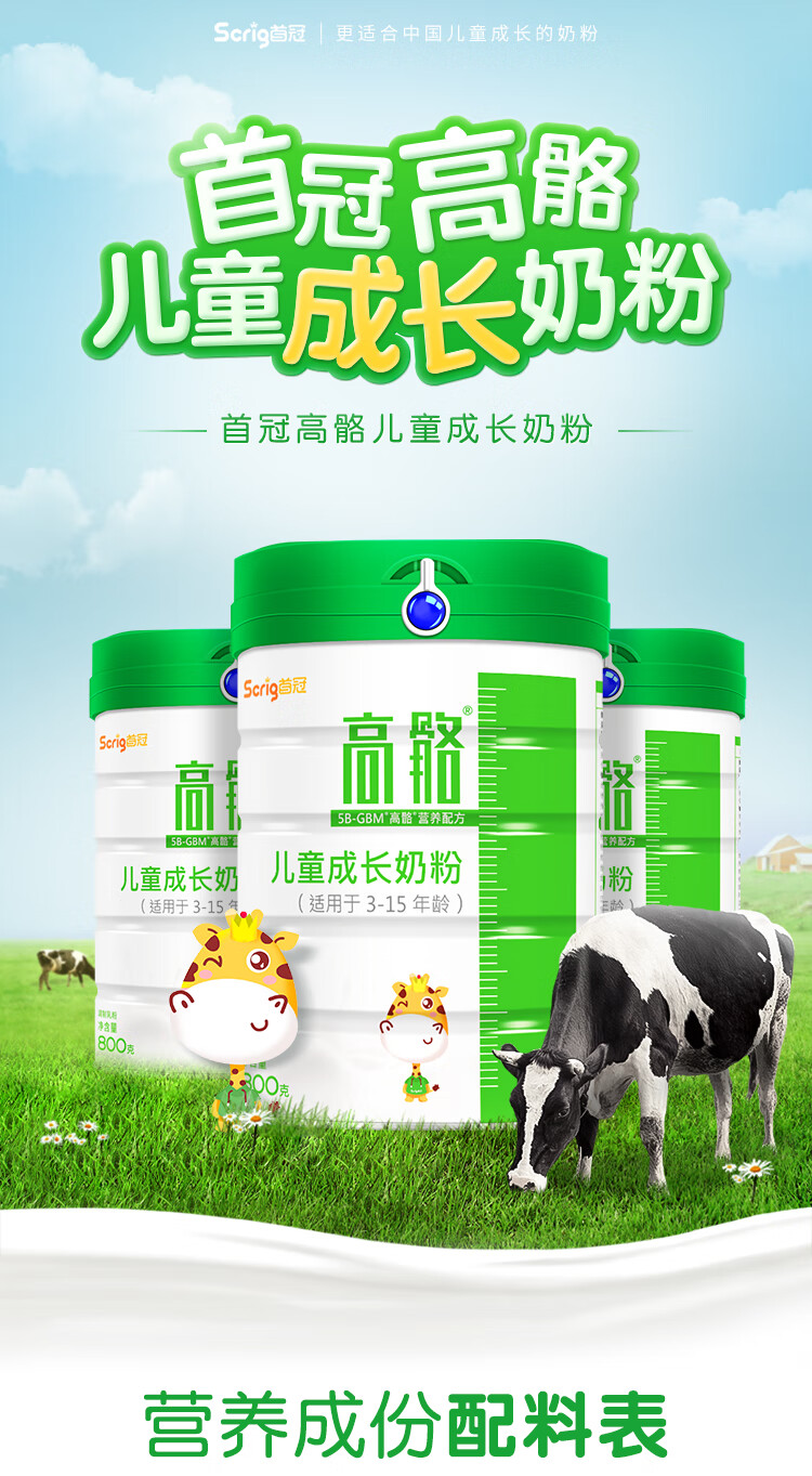 首冠高骼儿童奶成长奶粉水解蛋黄粉DHA青少年初中小学生高钙牛奶粉 800g*1罐【买3罐送1罐本品】
