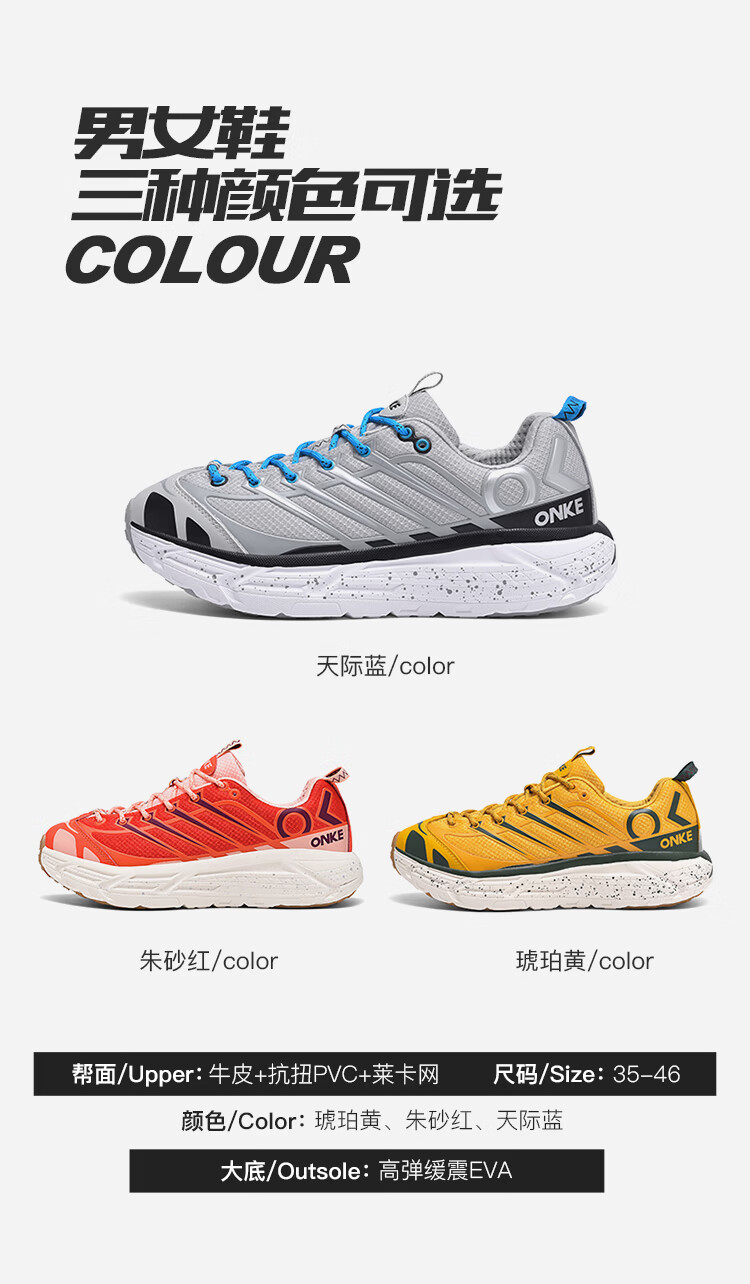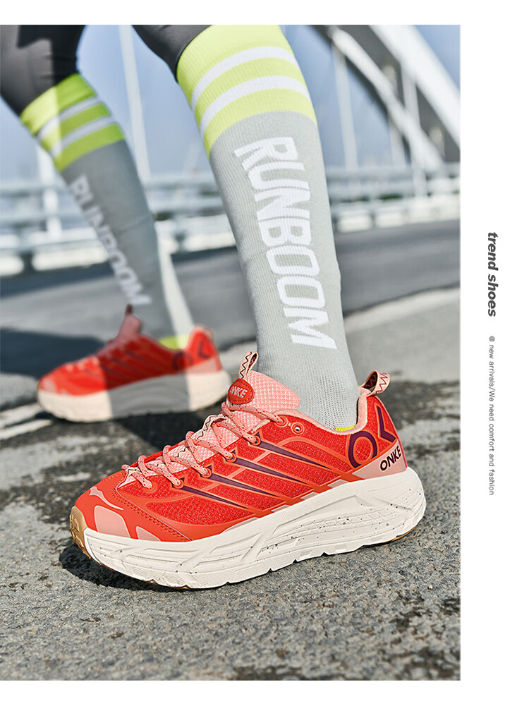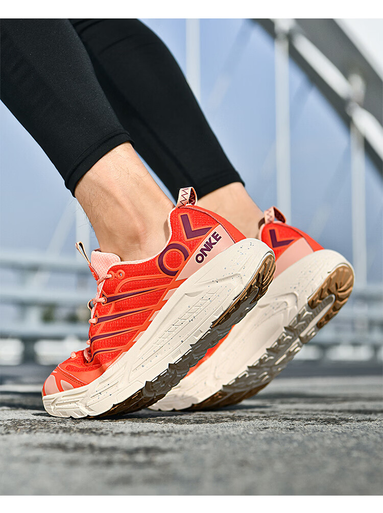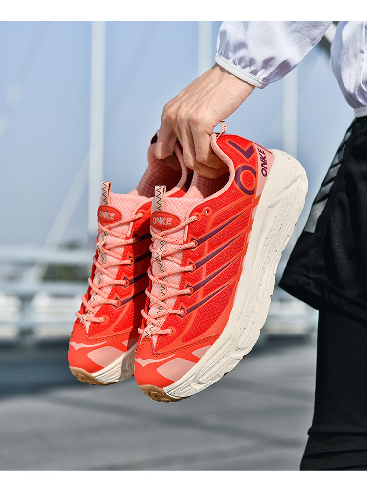 ONKE德国欧克男女款户外运动休闲鞋男鞋复古轻盈缓震情侣跑步鞋女鞋子 朱砂红 37