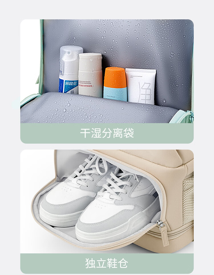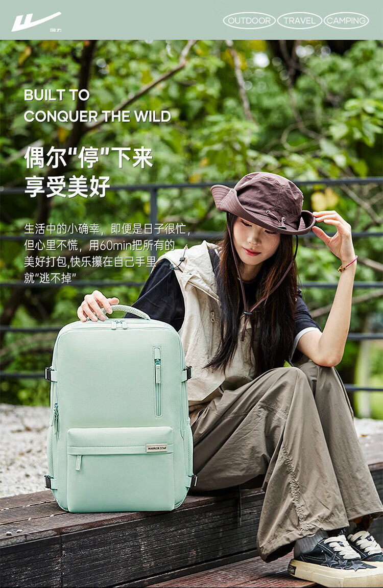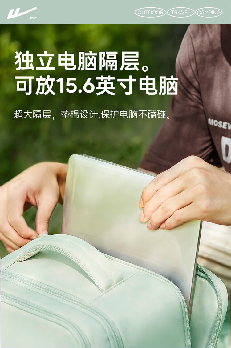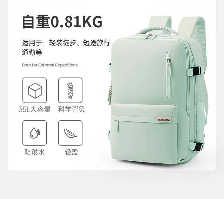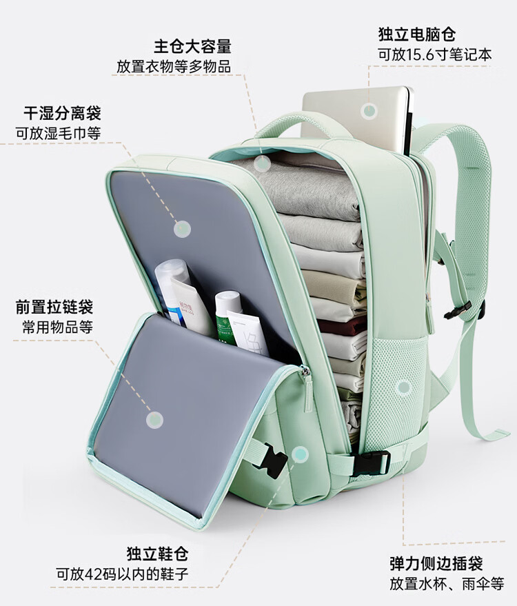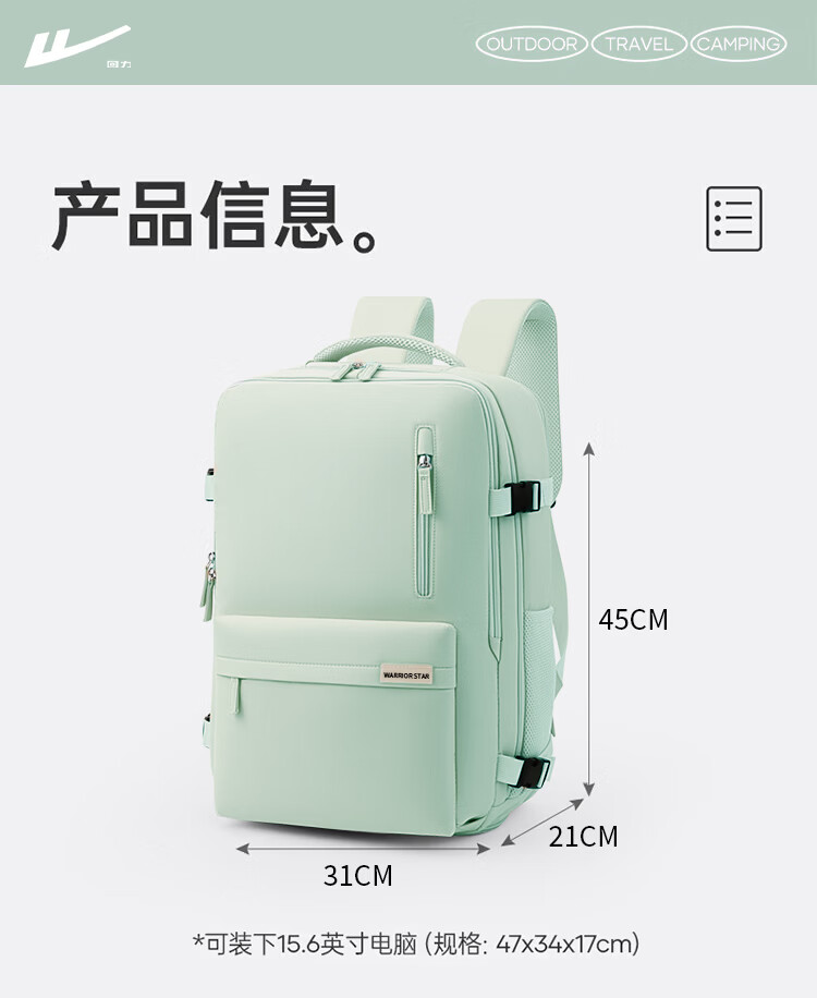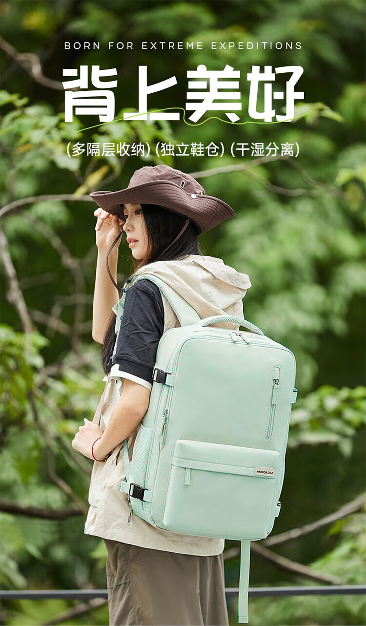 回力旅行背包女大容量双肩包2026新款短途出差行李包多功能扩容电脑包 清新绿