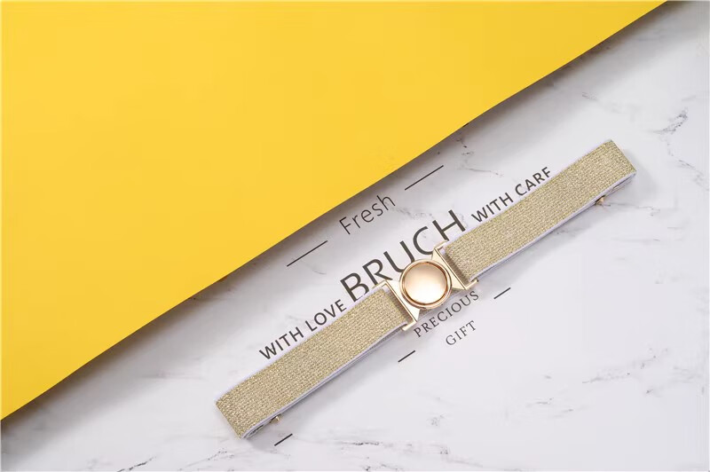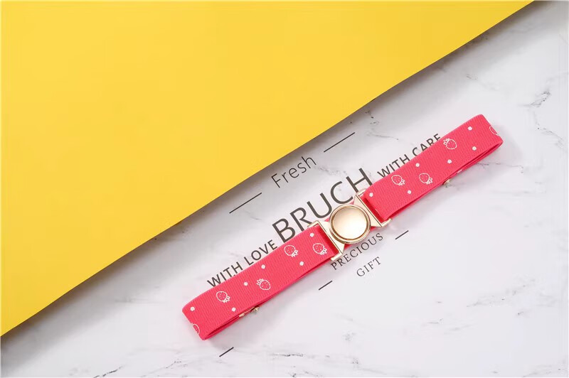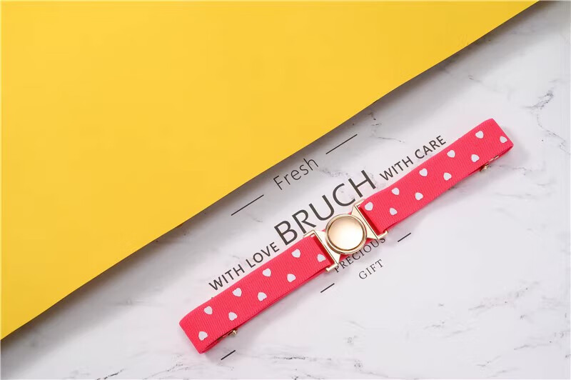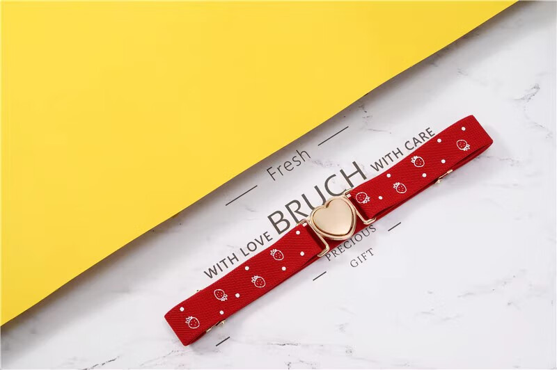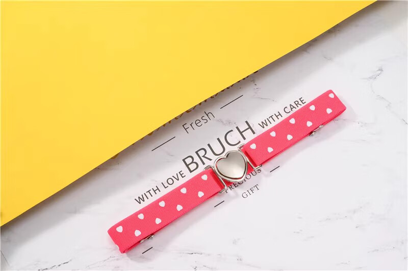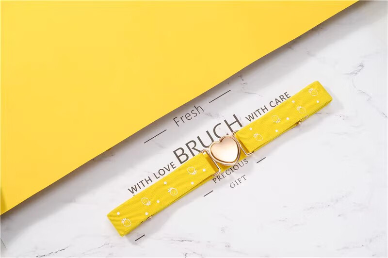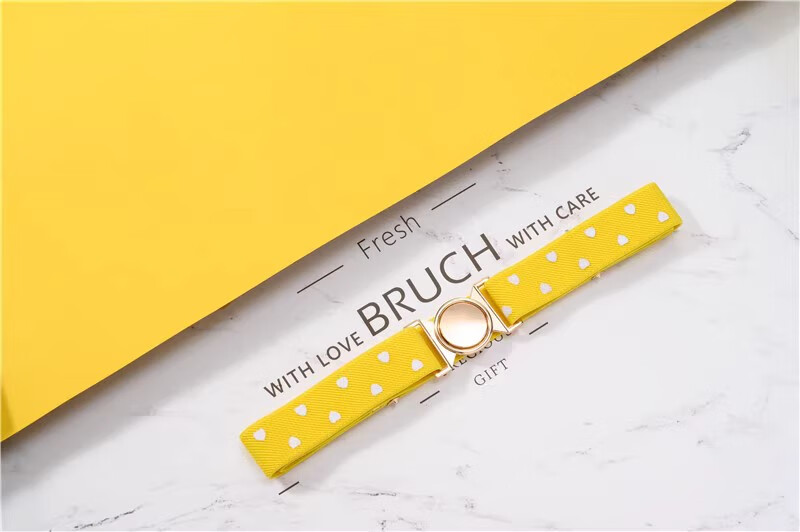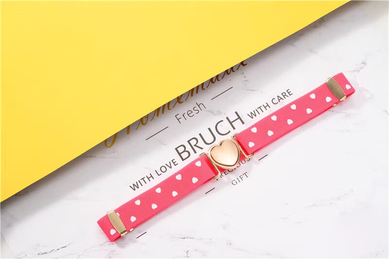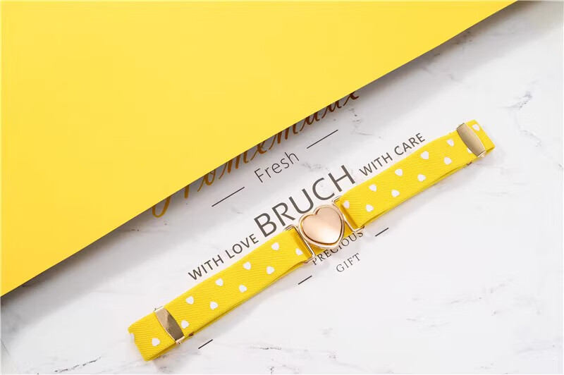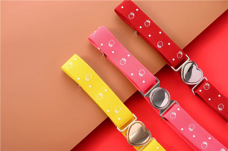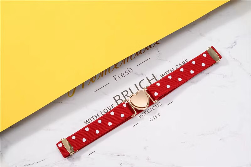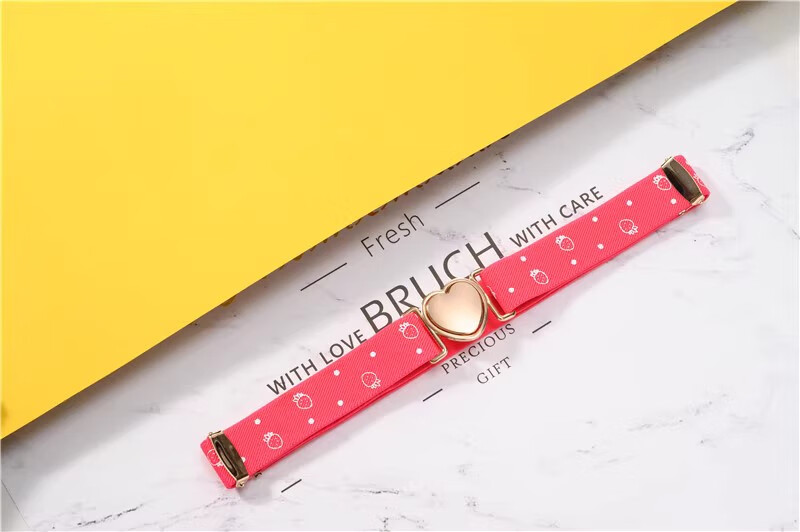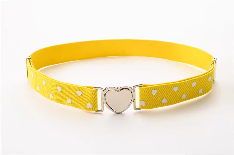 缇彩娜女童腰带有弹力橡皮筋装饰裙子腰饰小学生皮带女孩子裤带儿童幼儿 金线金爱心扣