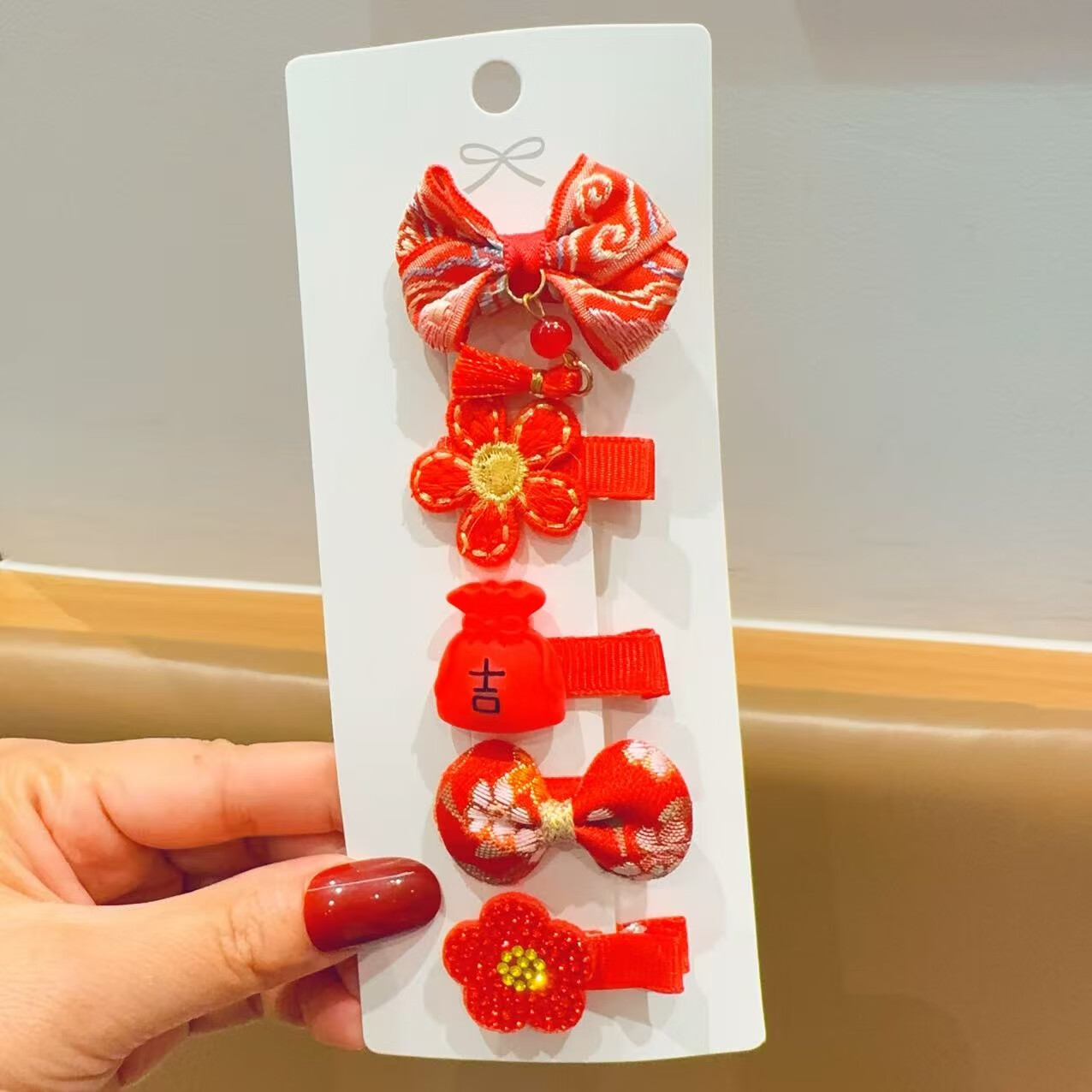 【好物优选】儿童宝宝包布发夹不伤发新年头饰小女孩发饰可爱过年 06#吉祥钱袋
