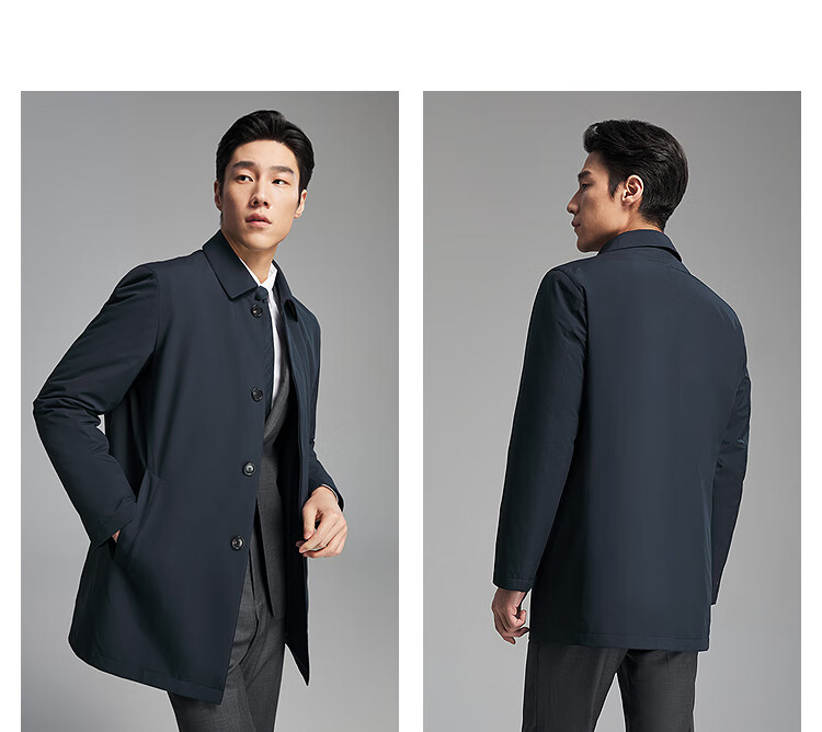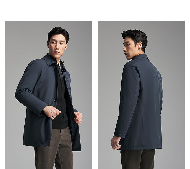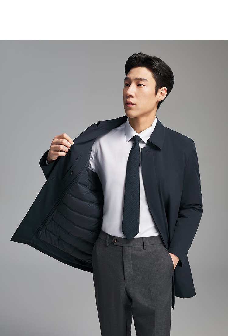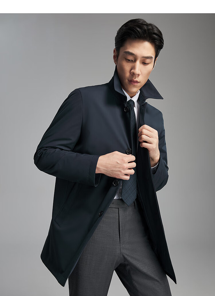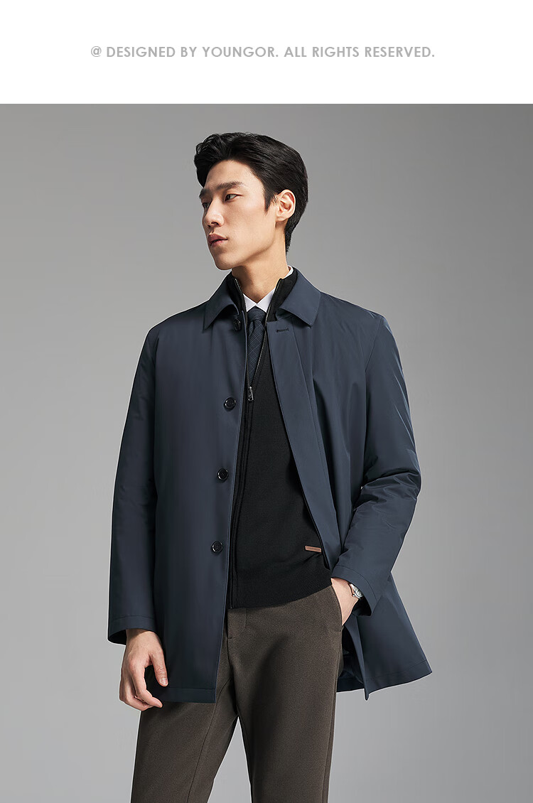雅戈尔(YOUNGOR)2025秋冬风衣男士优质羽绒风衣商务翻领经典款新品合款 藏青VYYF419865FFA M 170/92A (推荐120-130斤)