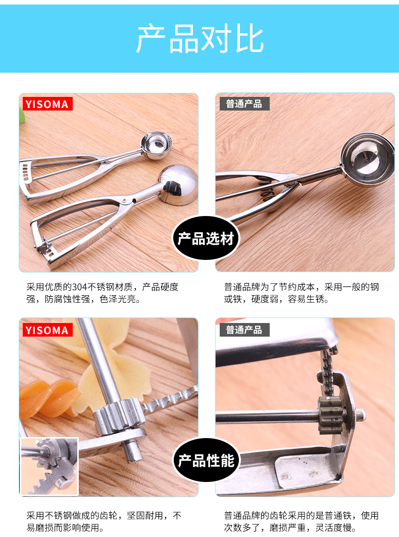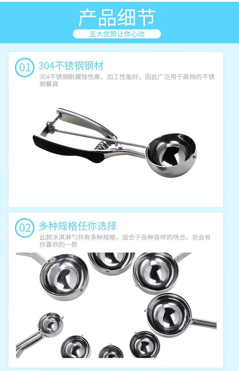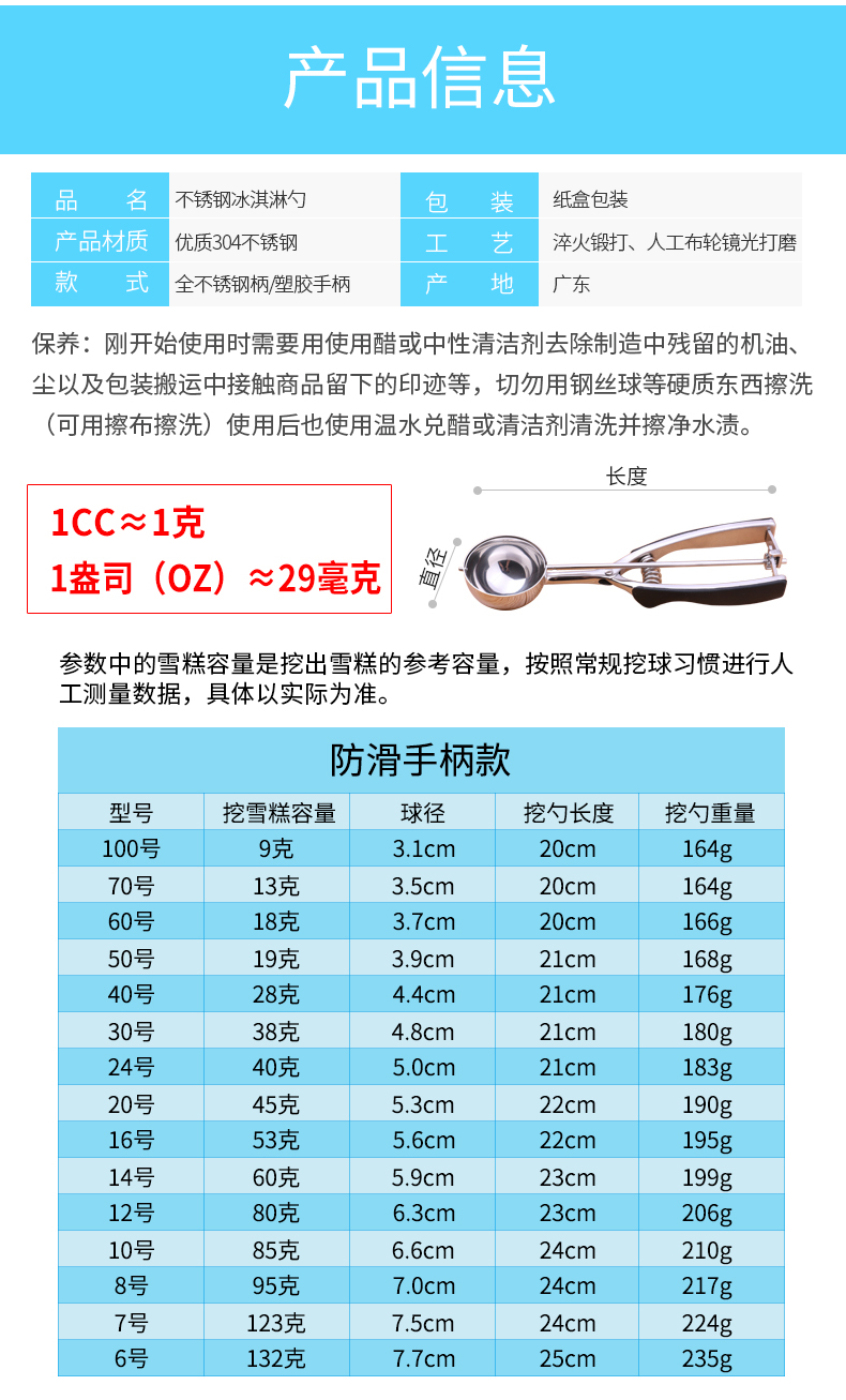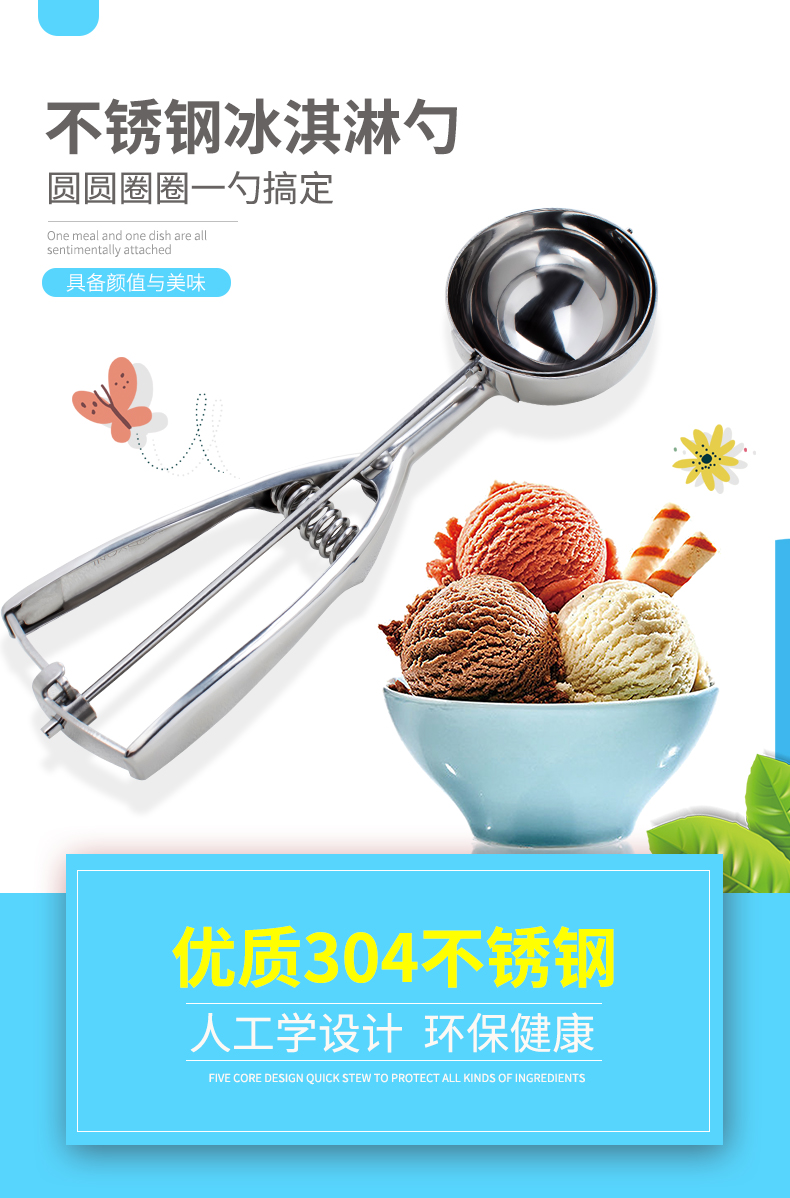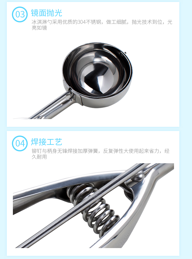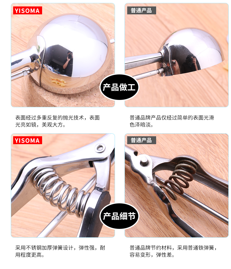 伊莎玛(YISOMA) 304不锈钢冰淇淋挖球勺水果打球器冰激凌勺西瓜雪糕挖勺 (升级款)防滑手柄8号 7.0CM