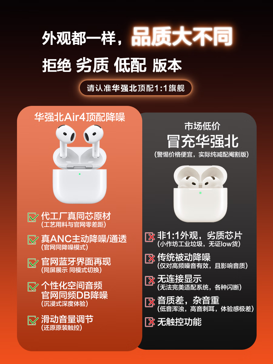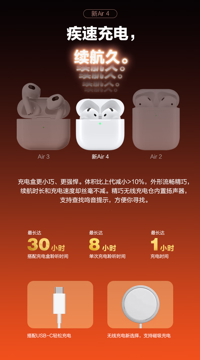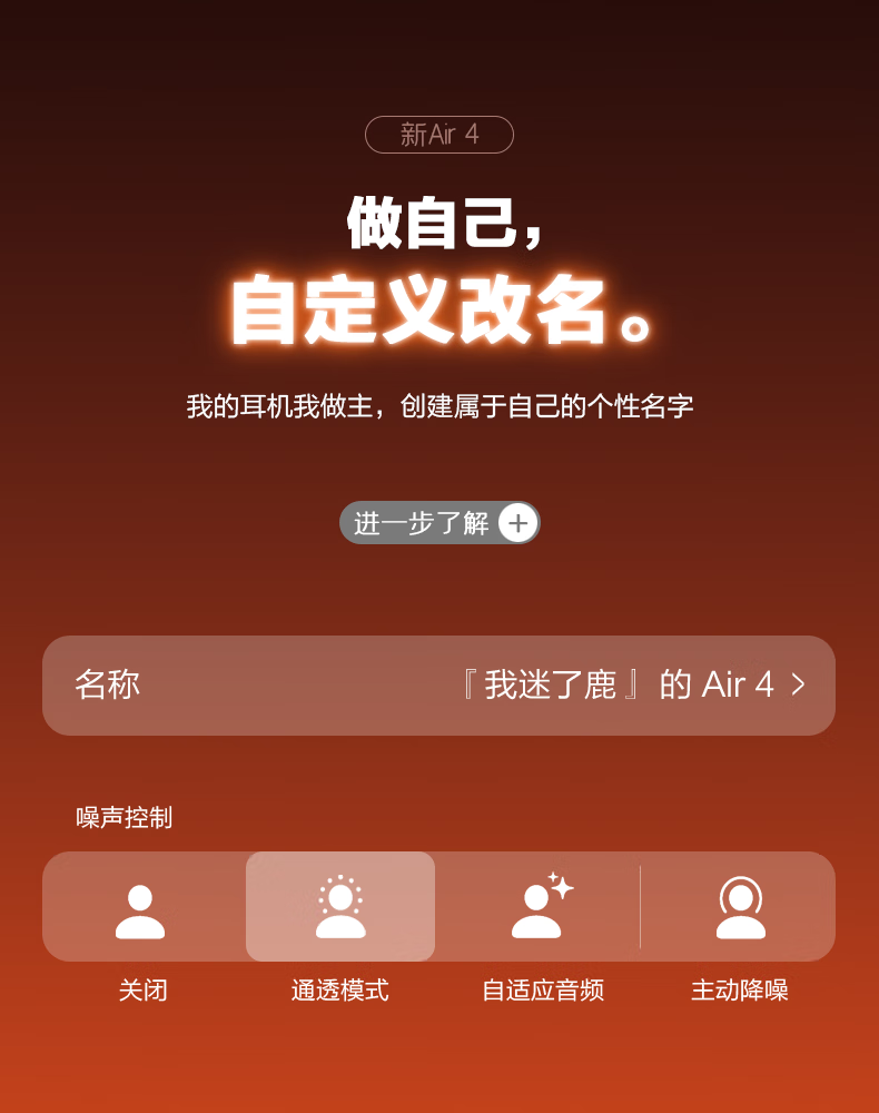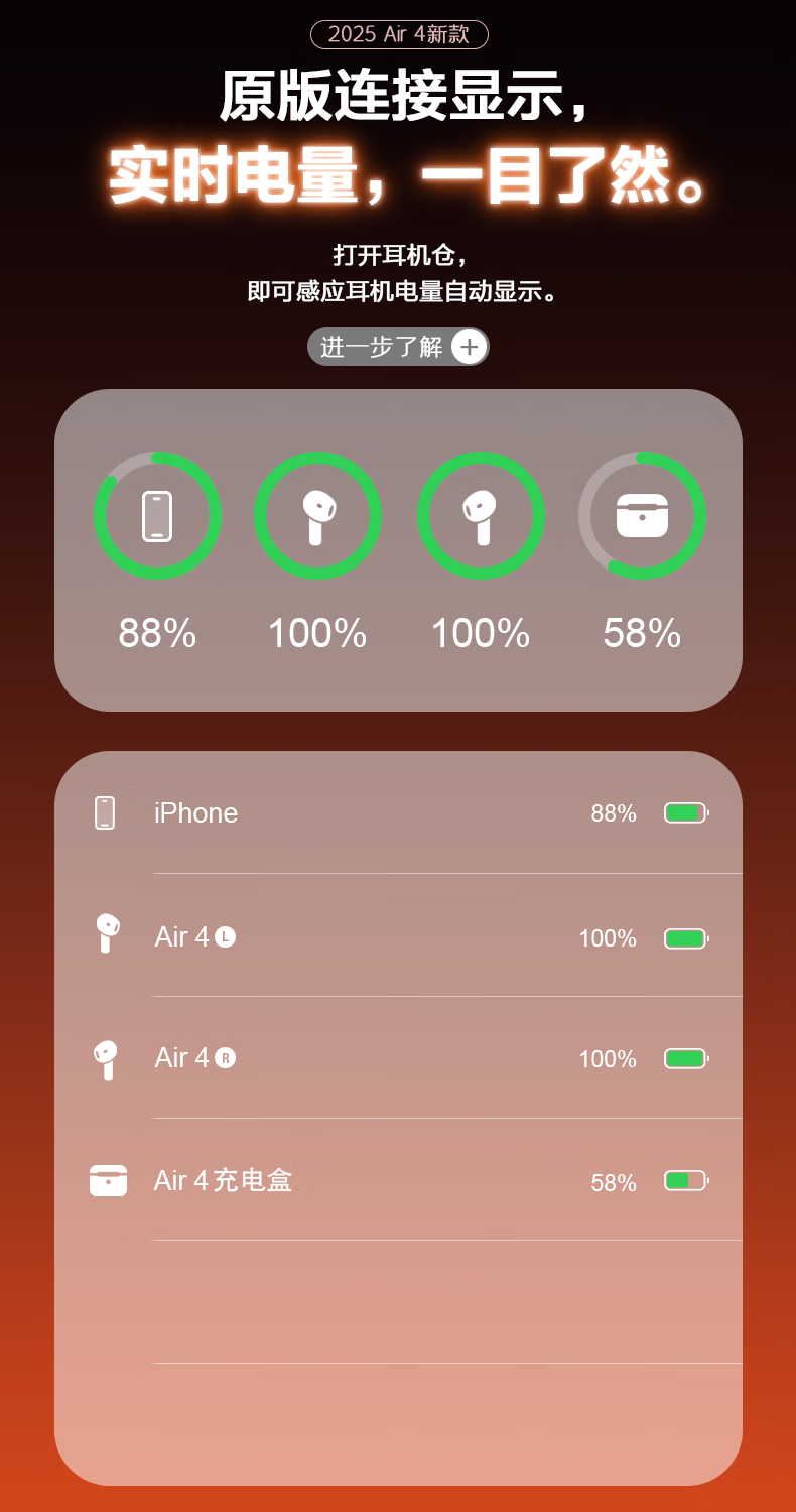 心趣【官新正品丨Air4代降噪款】无线蓝牙耳机适配苹果2025新款半入耳式金榜iphone17/16/15/14pods4 【原版同功能pods4降噪版】 【主动降噪+空间音頻+三真电量】