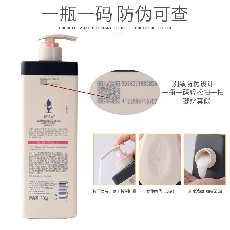 阿道夫人参自然洗发水750g去屑止痒控油美发持久留香洗发露沐浴露护发素 人参沐浴露500g