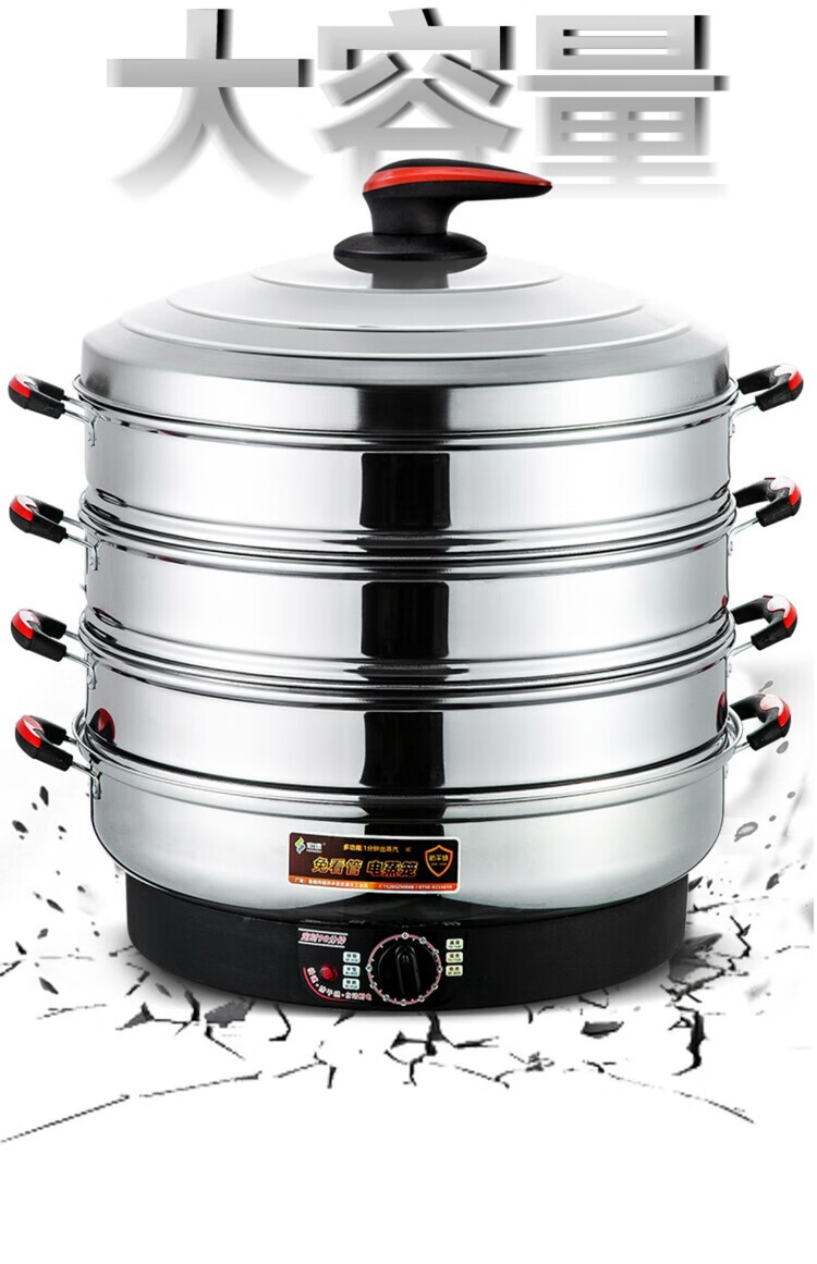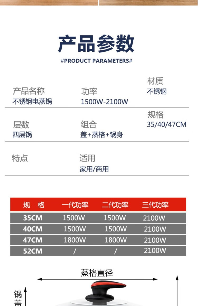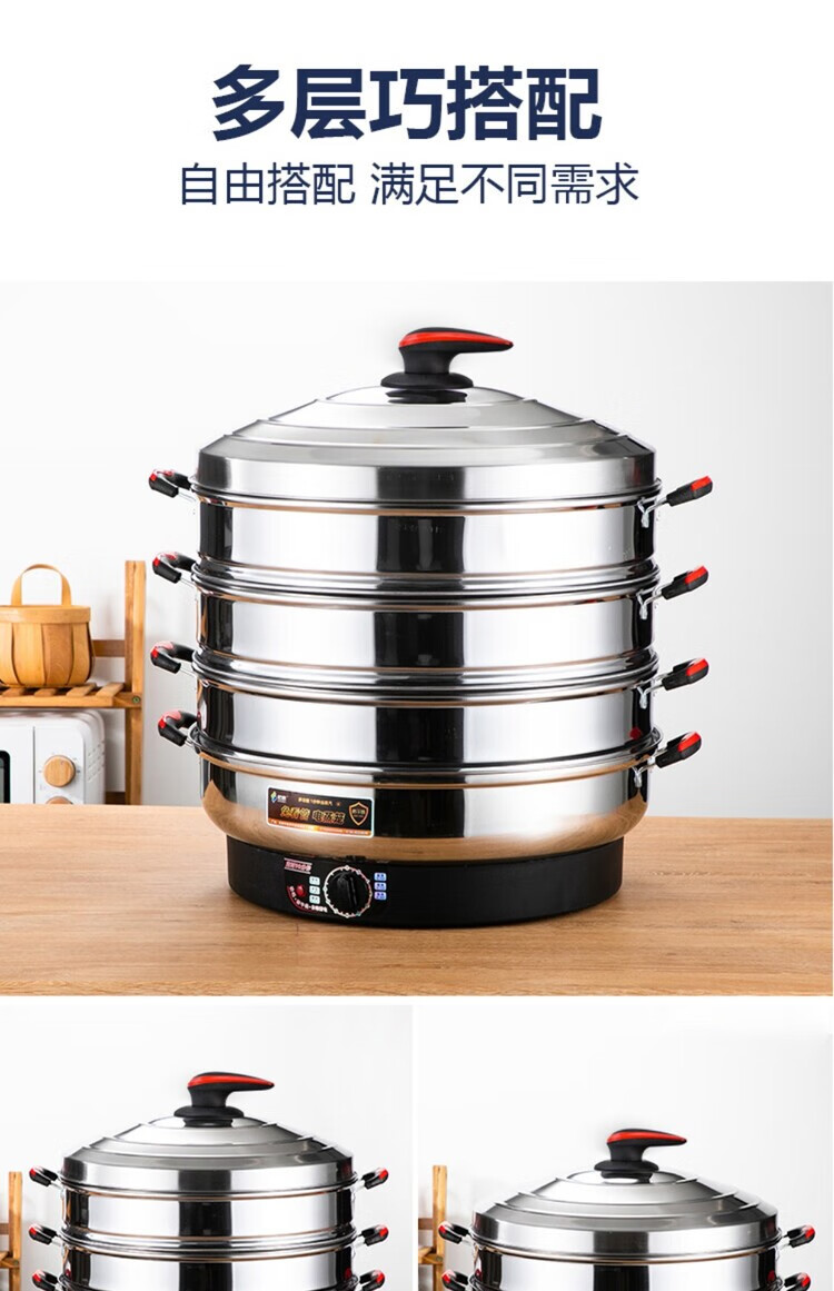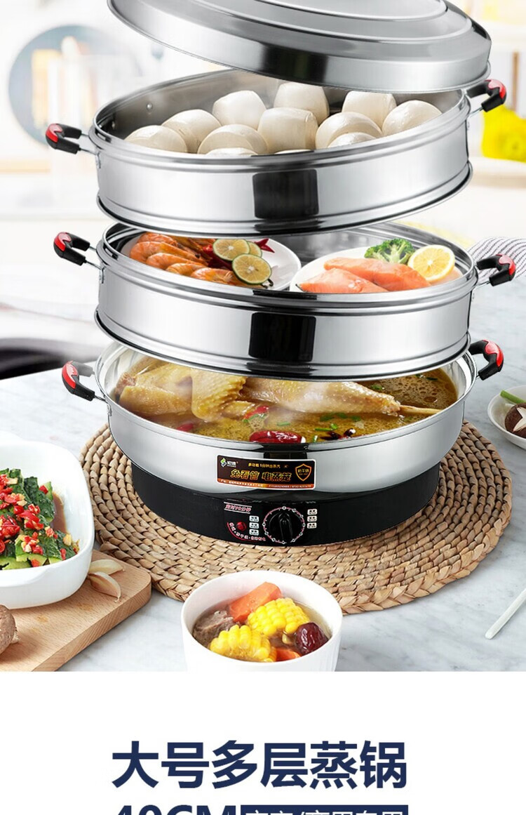 宏速多功能大容量电蒸锅不锈钢多层蒸菜包电蒸笼插电家用商用47CM 三代47CM(定时+保温+调火力) 3层