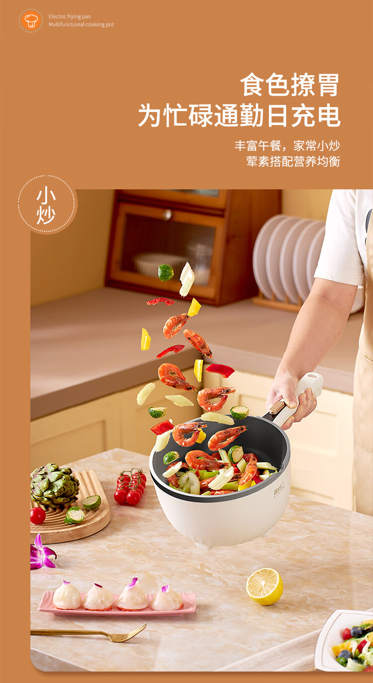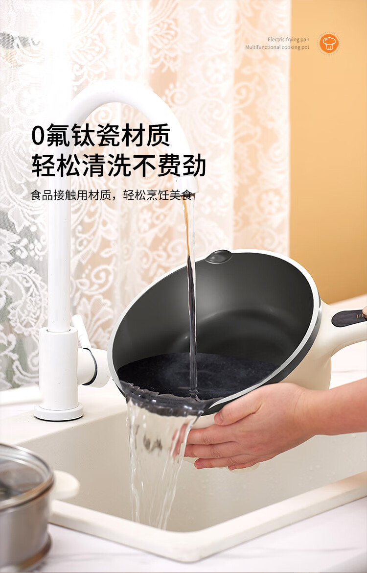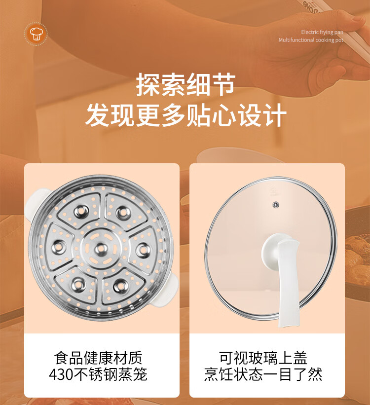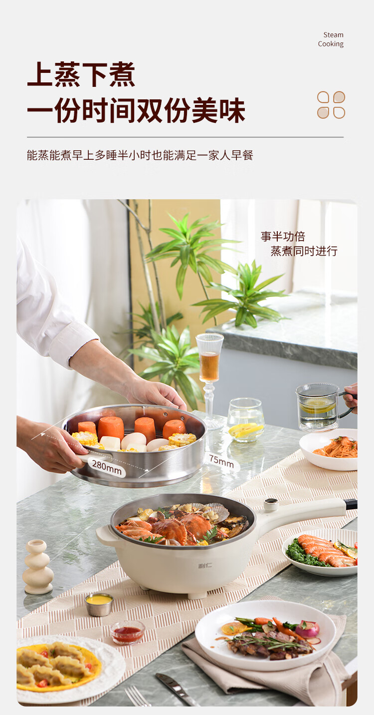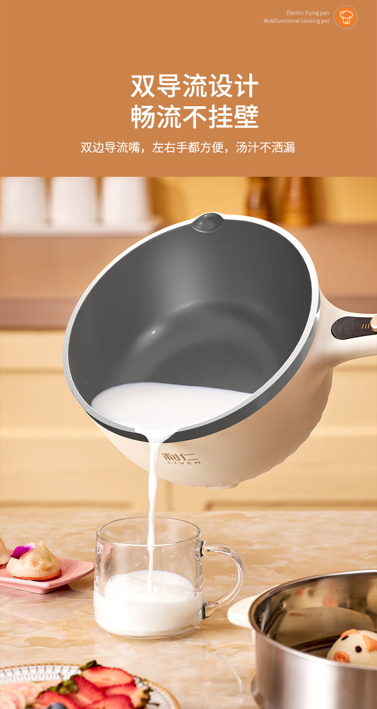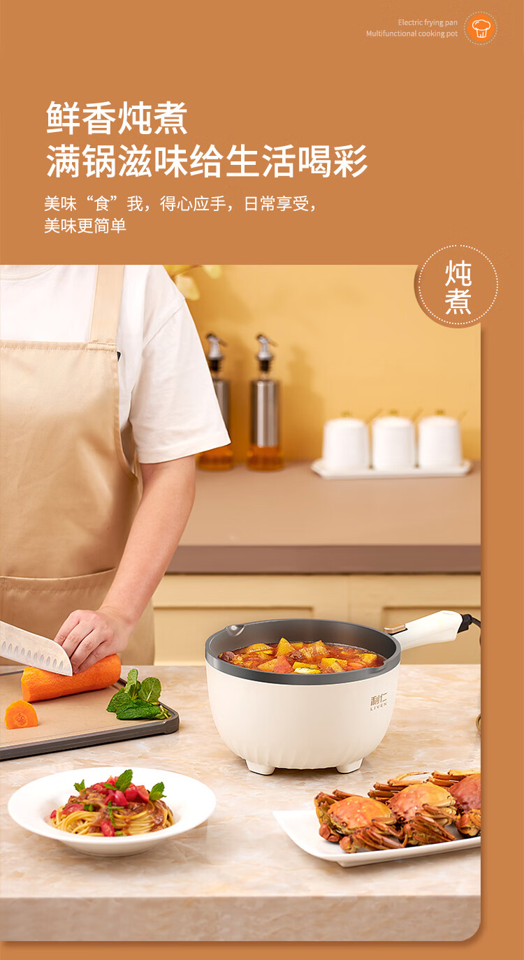 利仁(Liven)电炒锅电煮锅电蒸锅电火锅专用锅3升小电锅电热锅多功能电煮锅蒸煮涮烤一体锅配蒸屉G-89 4L 【0氟钛瓷超耐磨】+三档火