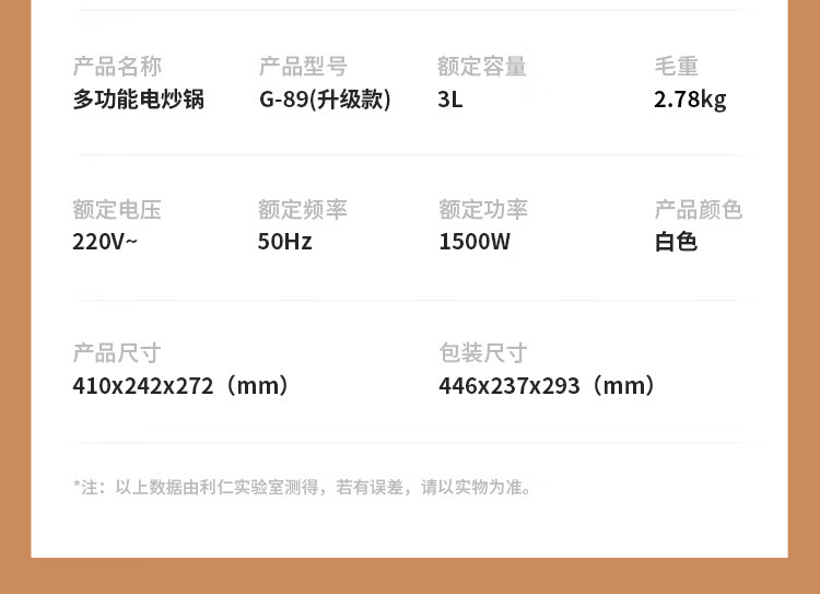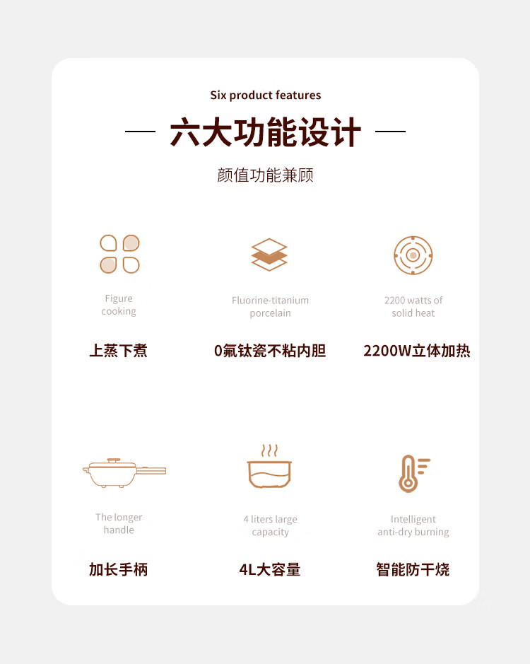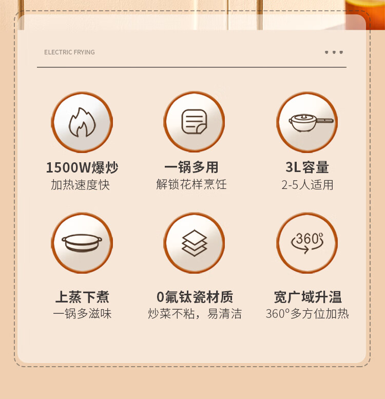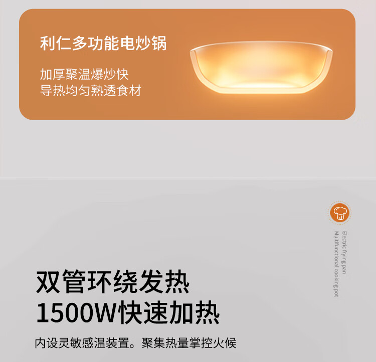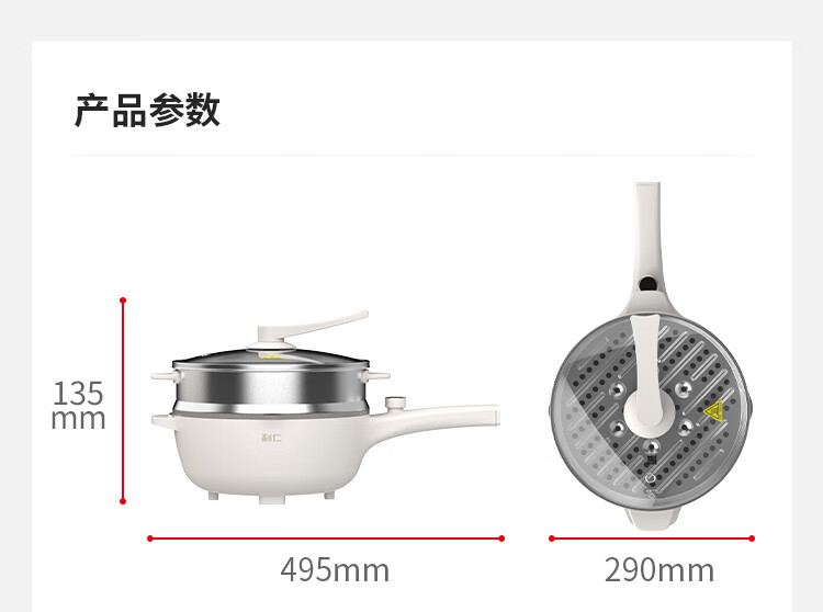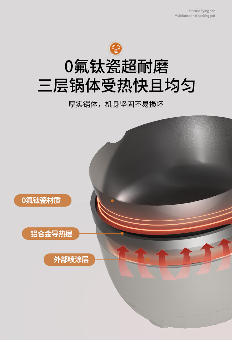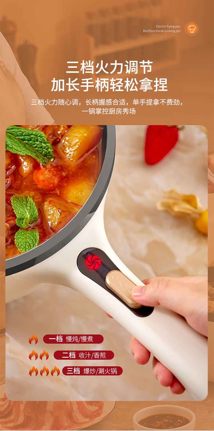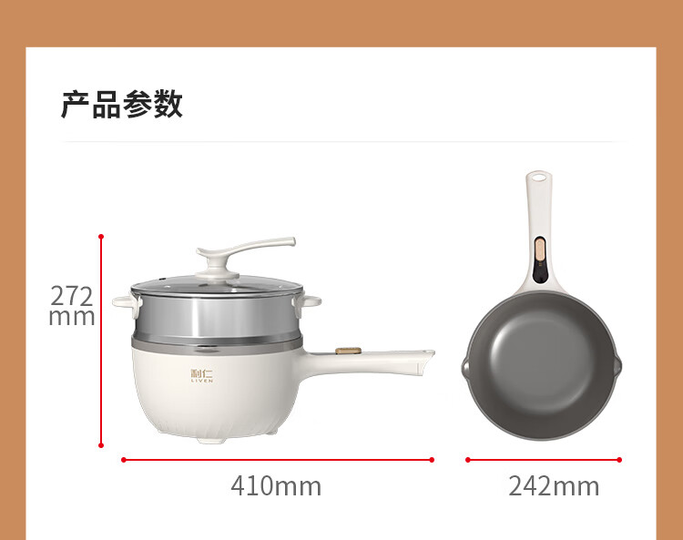 利仁(Liven)电炒锅电煮锅电蒸锅电火锅专用锅3升小电锅电热锅多功能电煮锅蒸煮涮烤一体锅配蒸屉G-89 4L 【0氟钛瓷超耐磨】+三档火