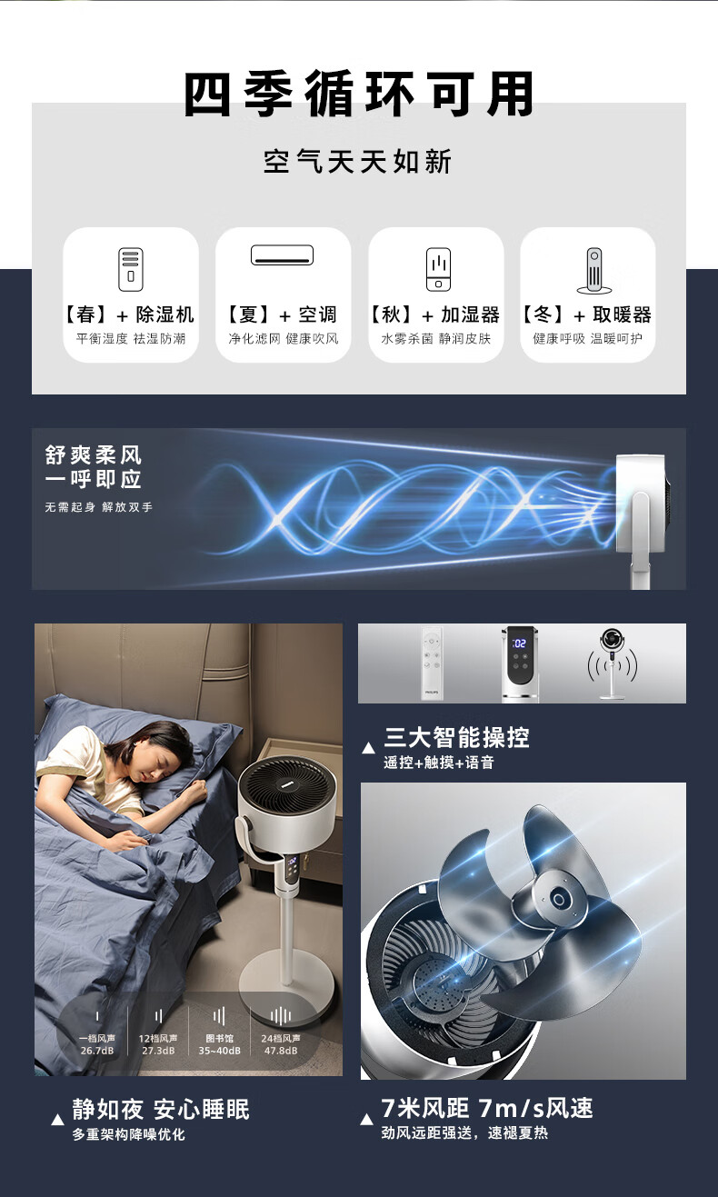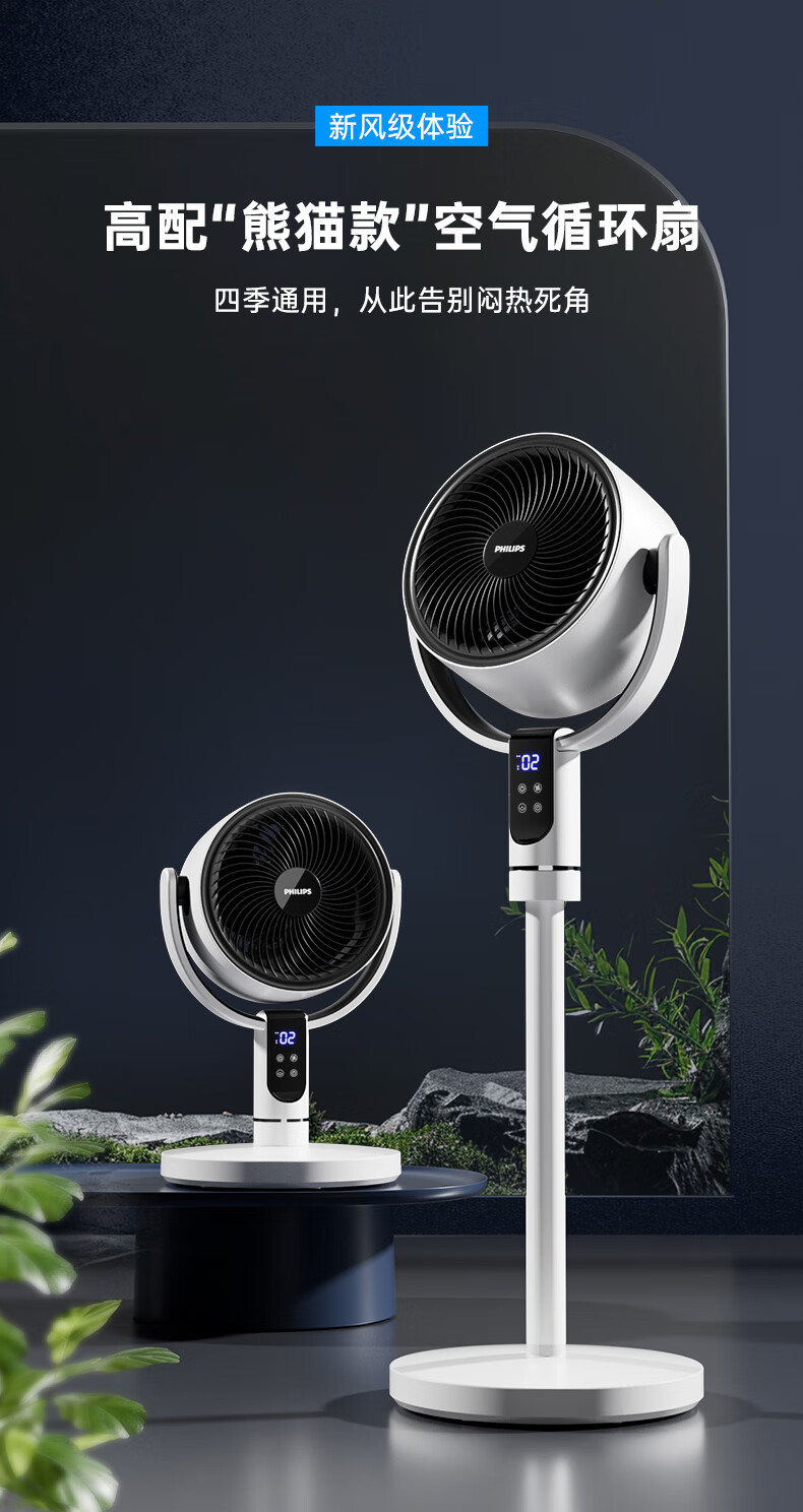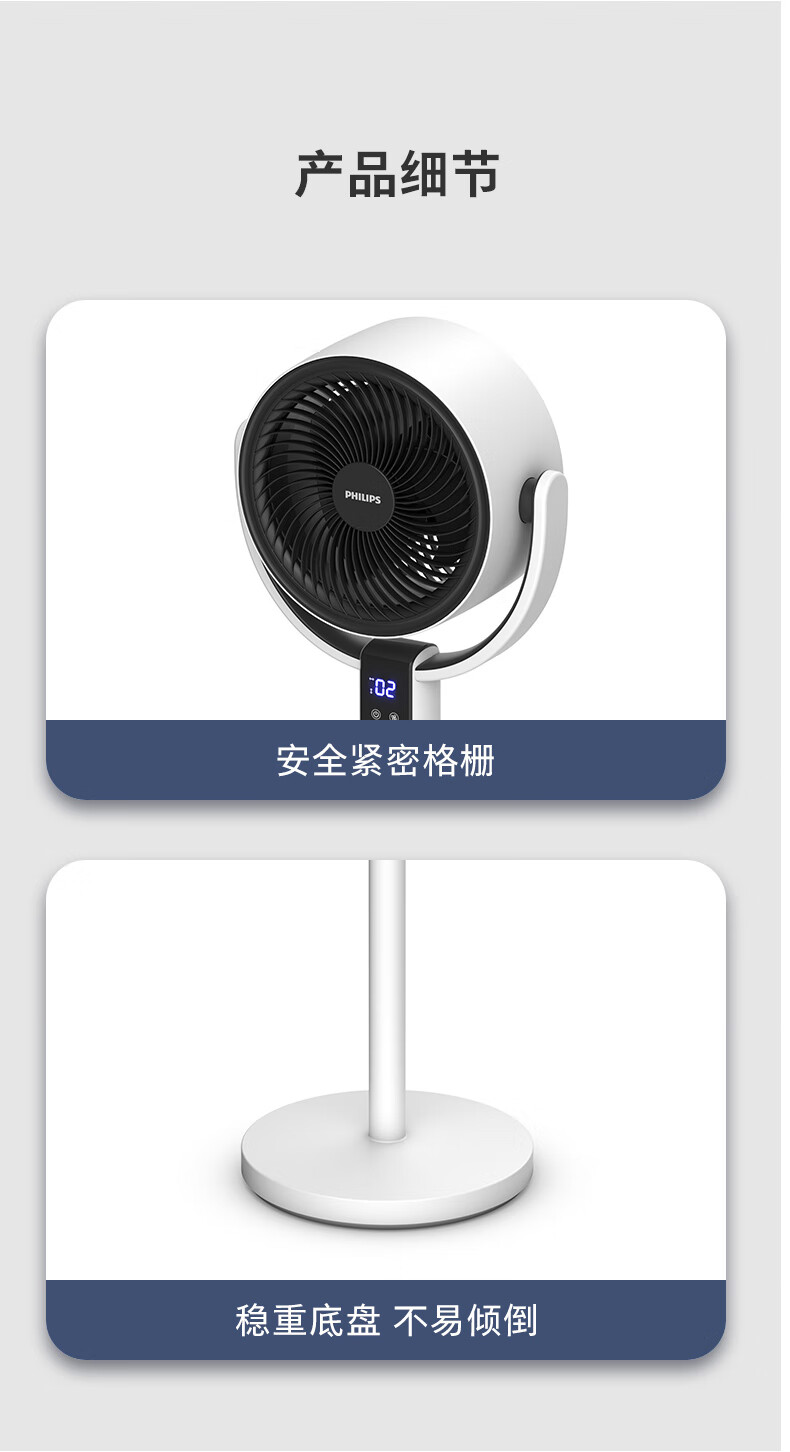 飞利浦(PHILIPS)空气循环扇电风扇落地扇家用小风扇台地两用轻音遥控低噪3D摇头扇 「升级语音控制」2242CFV