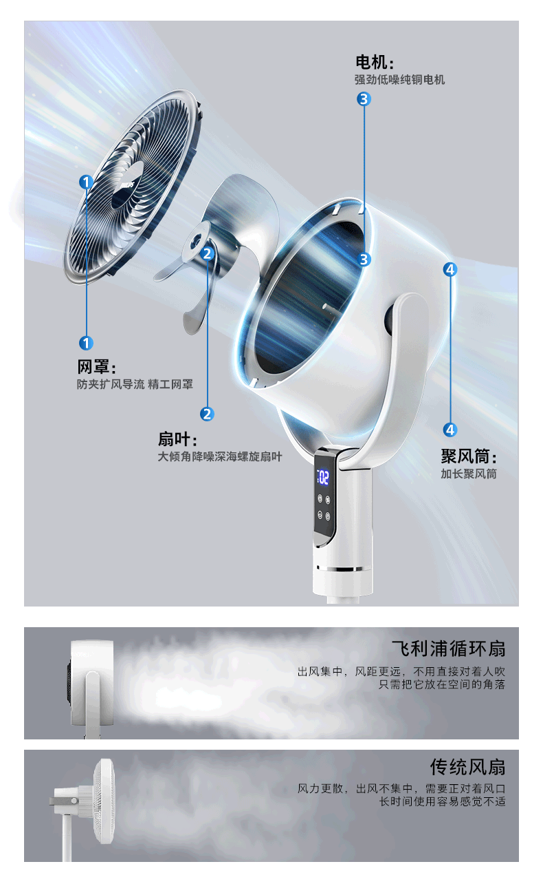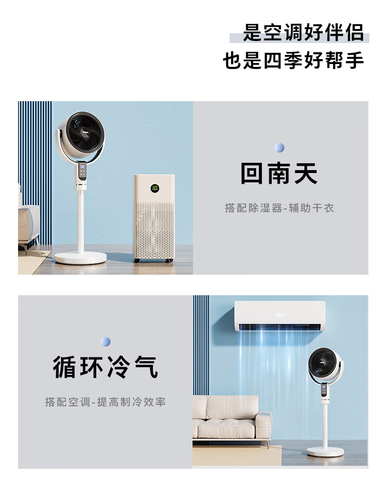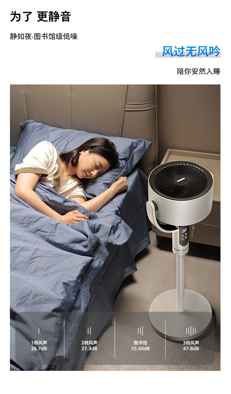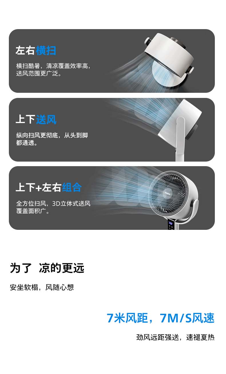飞利浦(PHILIPS)空气循环扇电风扇落地扇家用小风扇台地两用轻音遥控低噪3D摇头扇 「升级语音控制」2242CFV
