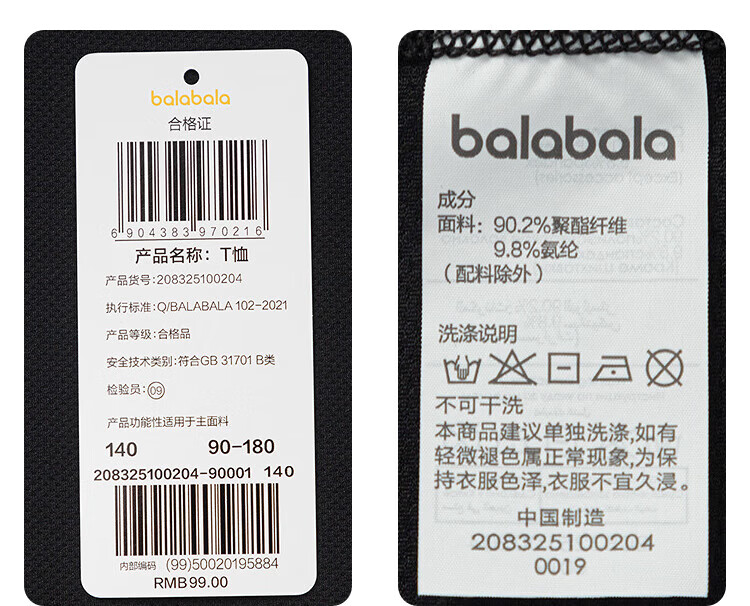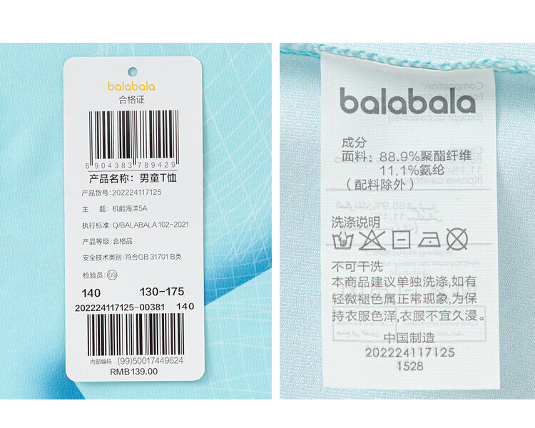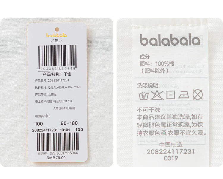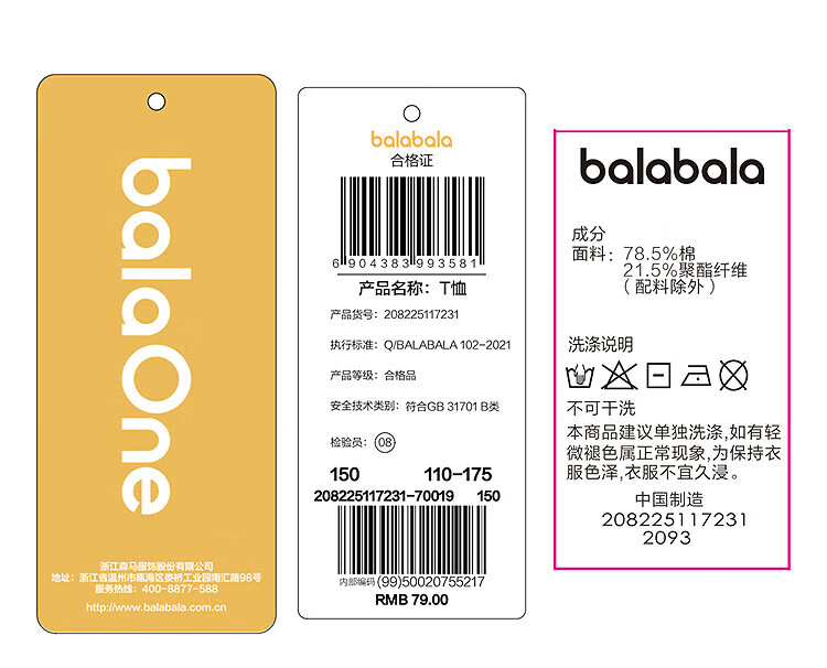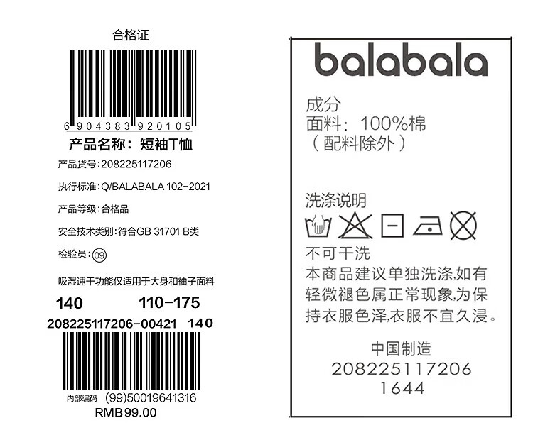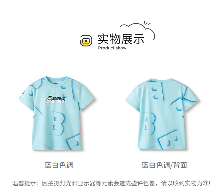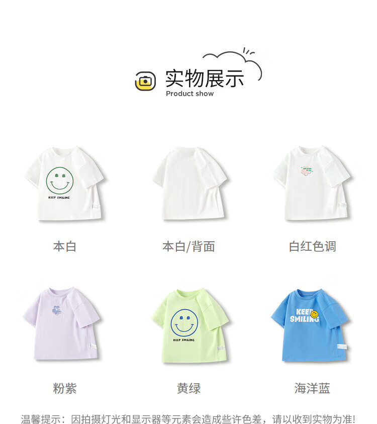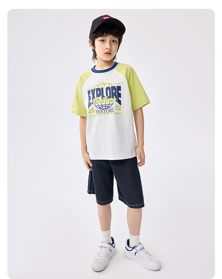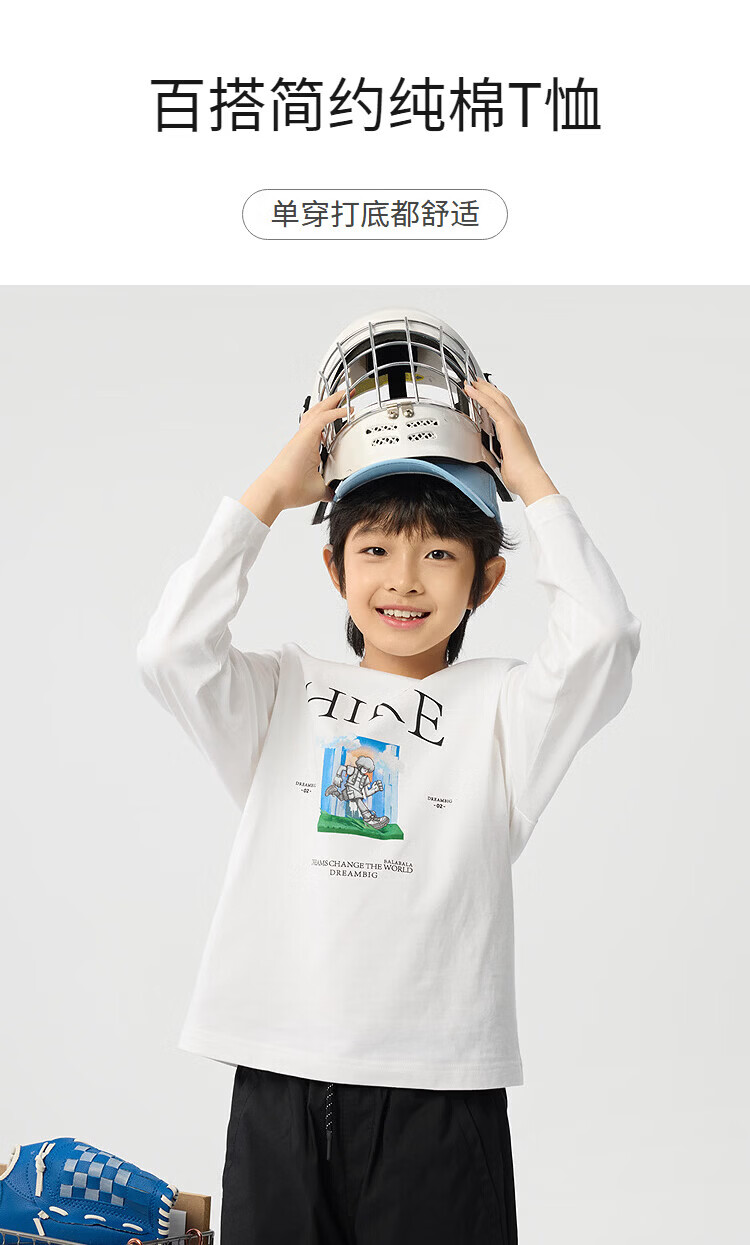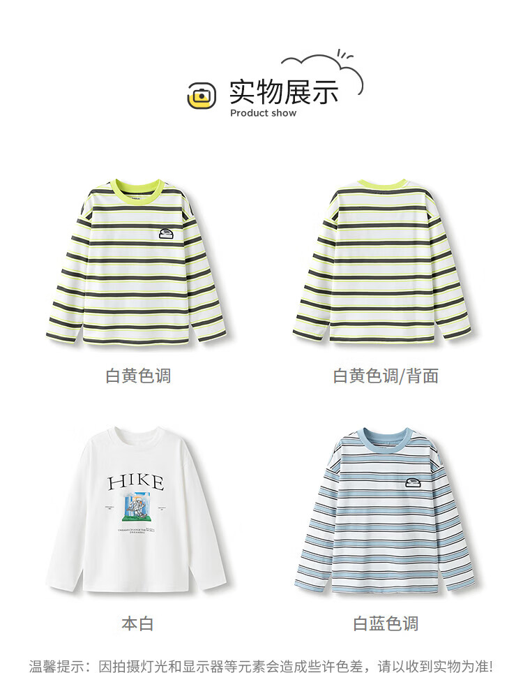 巴拉巴拉童装儿童短袖t恤长袖男童女童打底衫夏款青少年百搭宽松上衣 白黄色调00313-202125100106 150