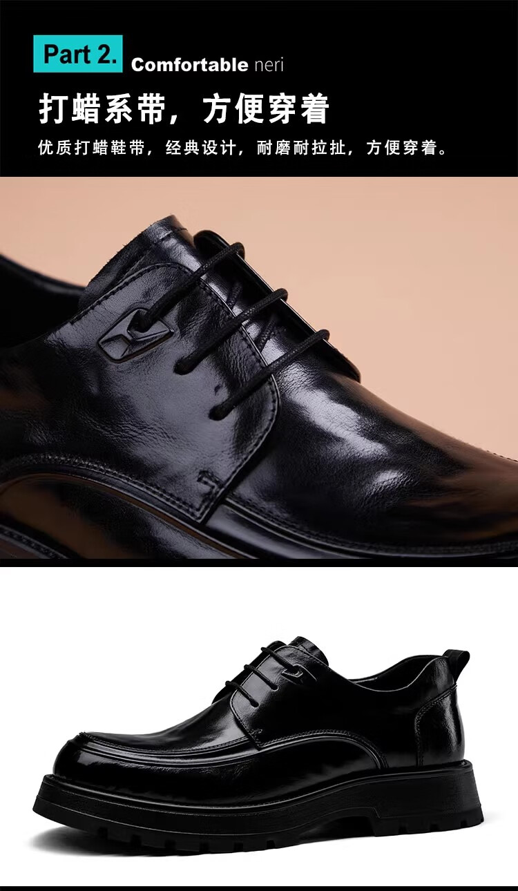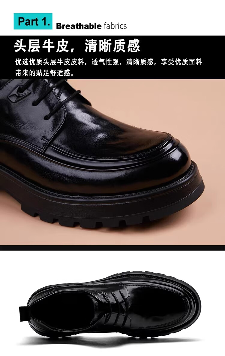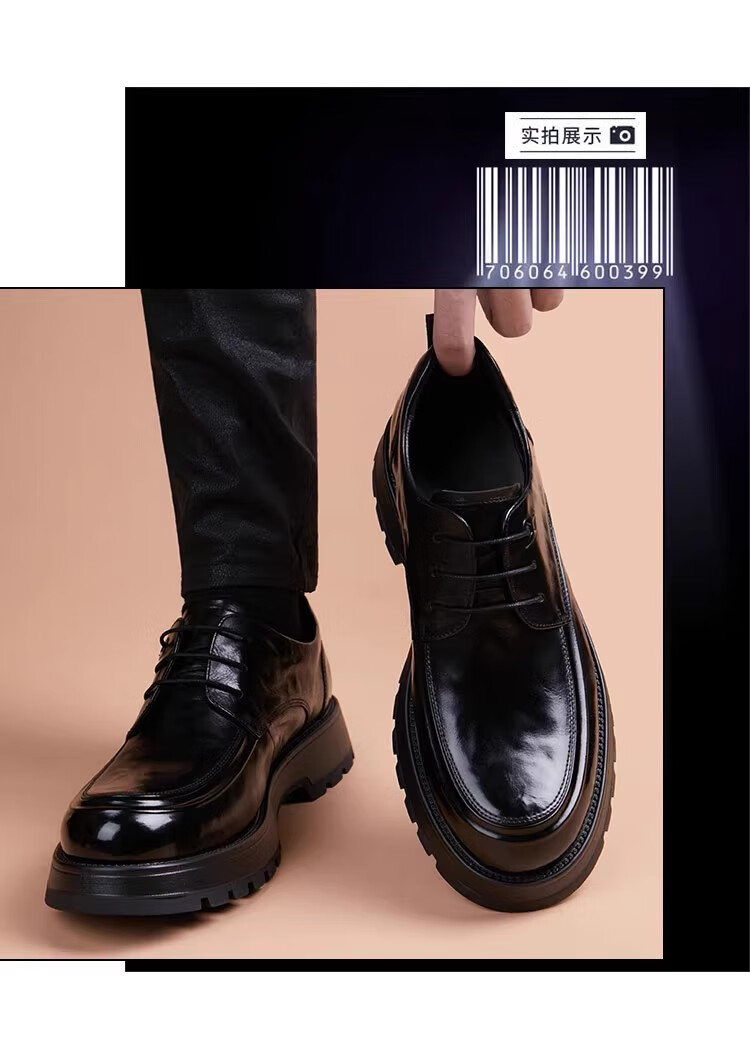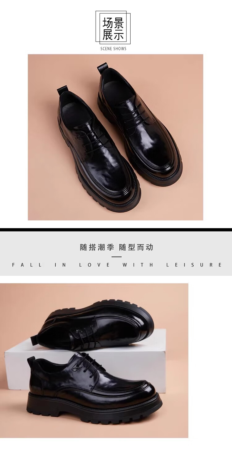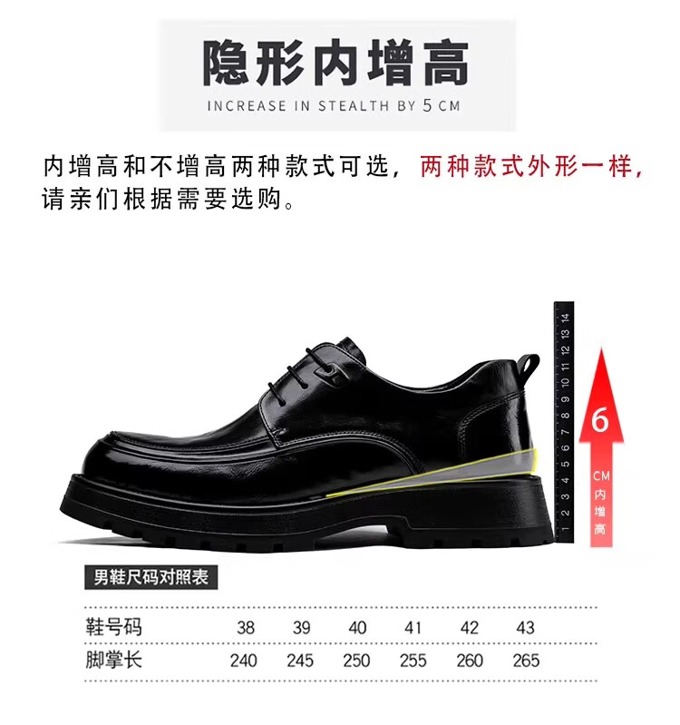 Walker Shop高端皮鞋男款2026新款厚底增高商务休闲男鞋头层牛皮皮鞋男夏季薄 黑色内增高【品牌男鞋 礼盒包装】 40