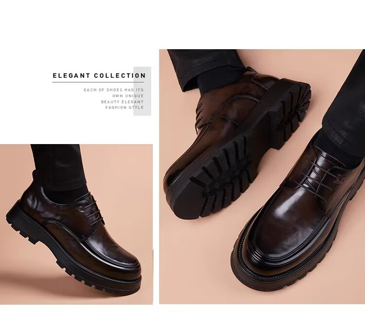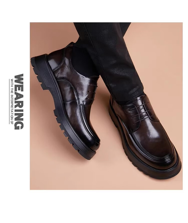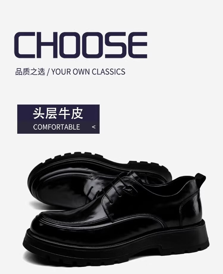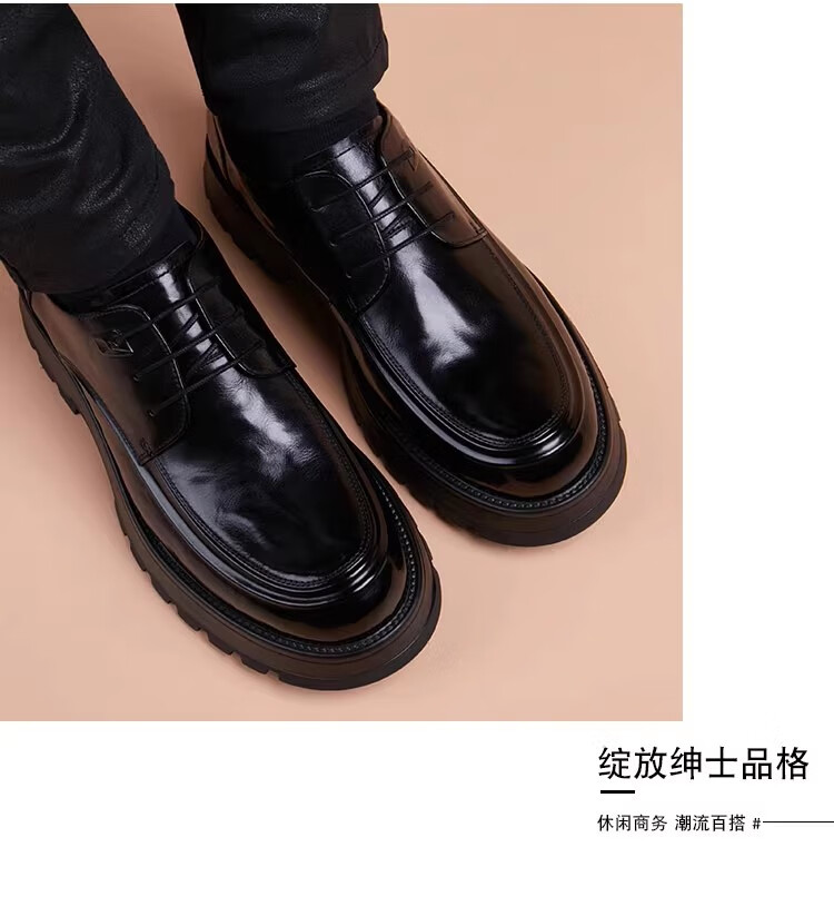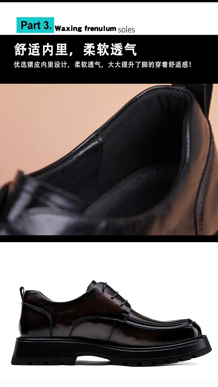 Walker Shop高端皮鞋男款2026新款厚底增高商务休闲男鞋头层牛皮皮鞋男夏季薄 黑色内增高【品牌男鞋 礼盒包装】 40