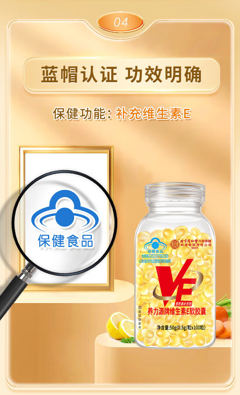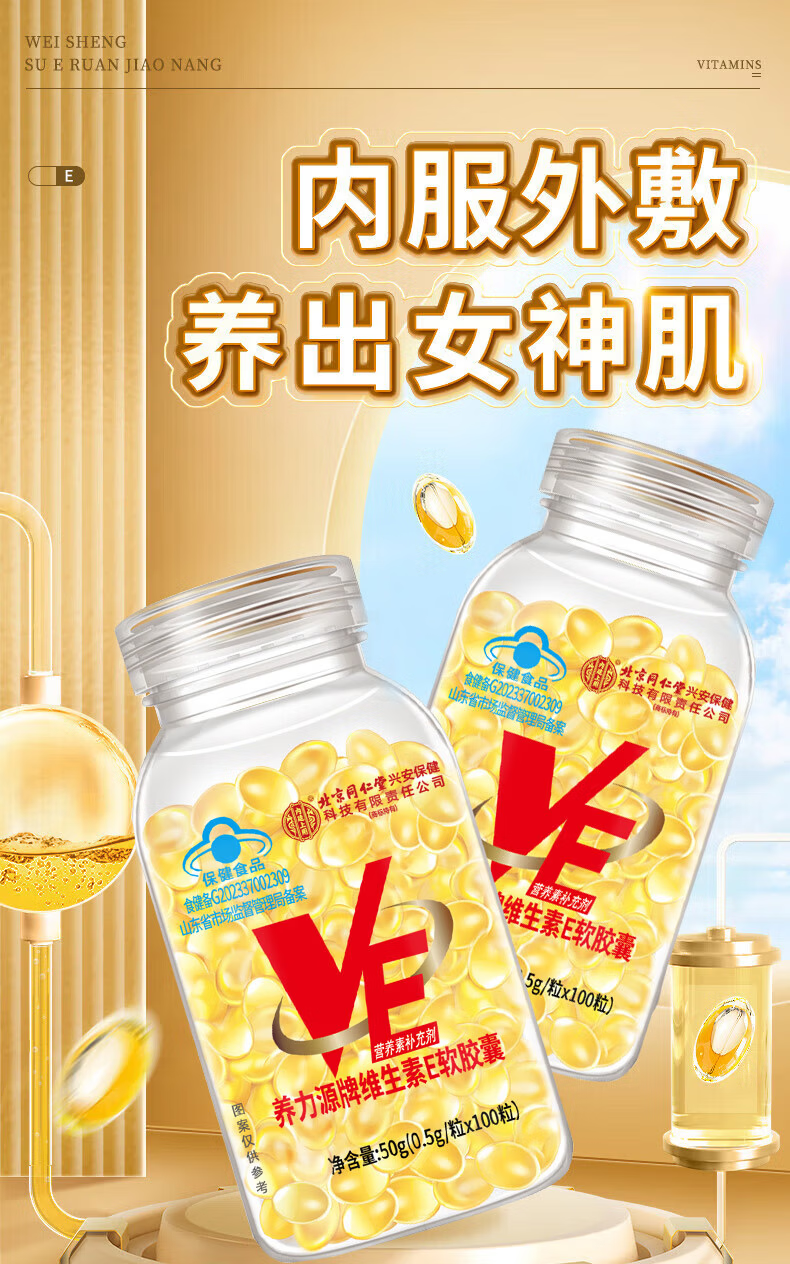 同仁堂(TRT)维生素E软胶囊美白淡斑淡化黑色素皮肤抗皱紧致抗衰老进口原料 1瓶100粒【维生素E】 50g*1瓶 官方正品旗舰品质