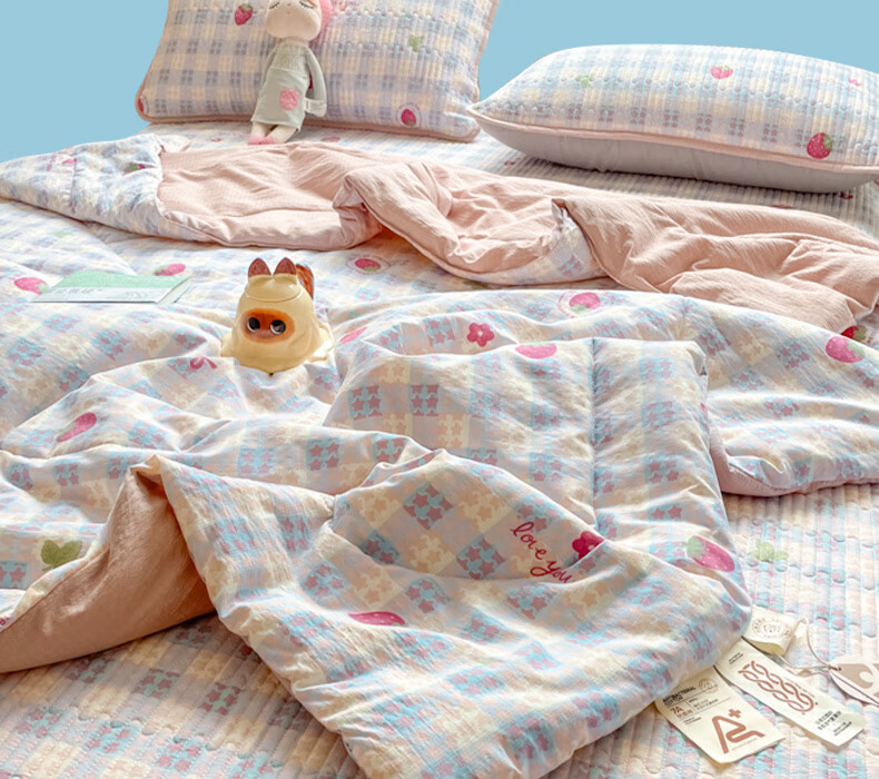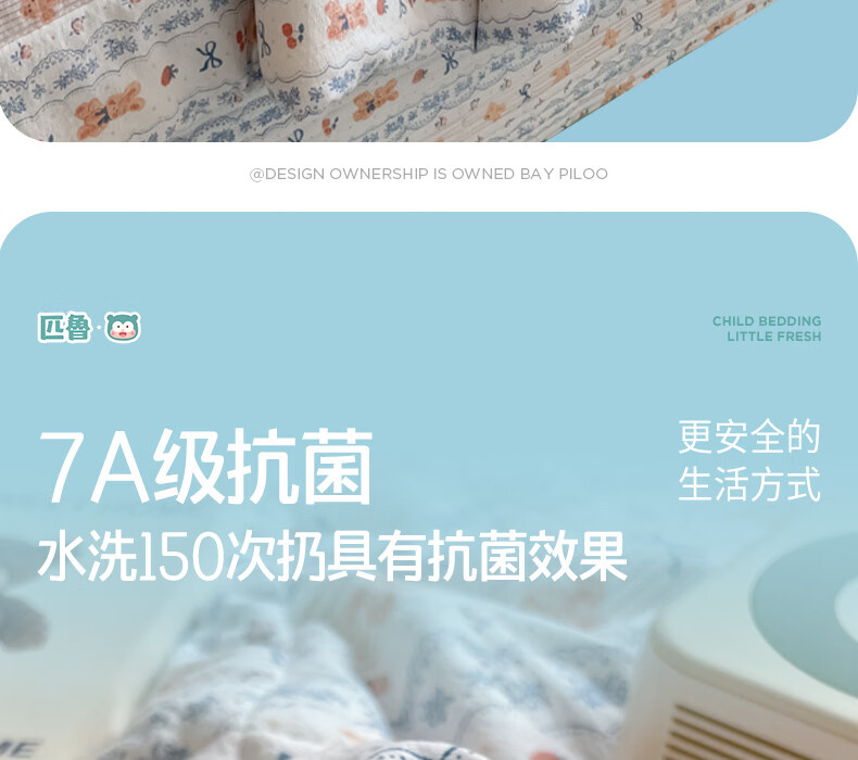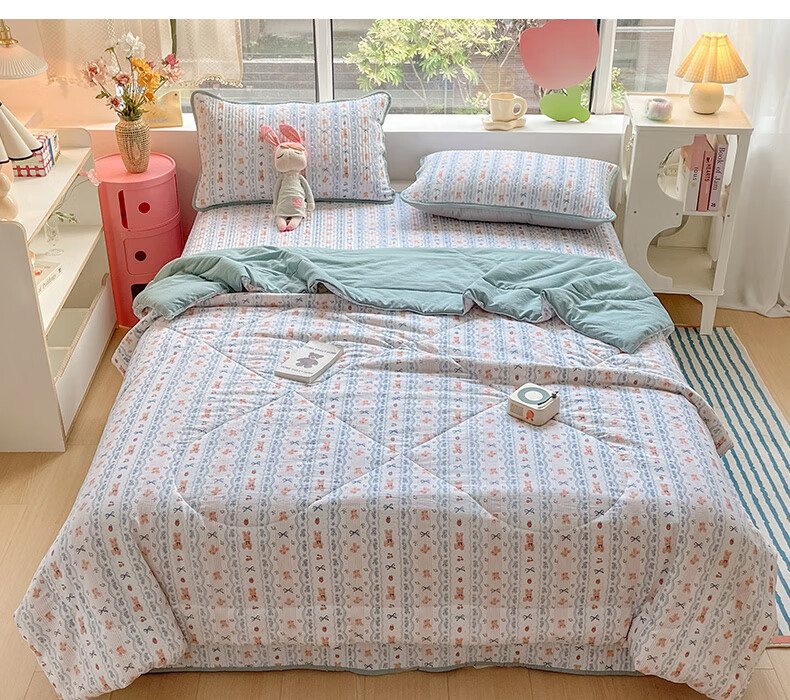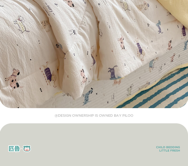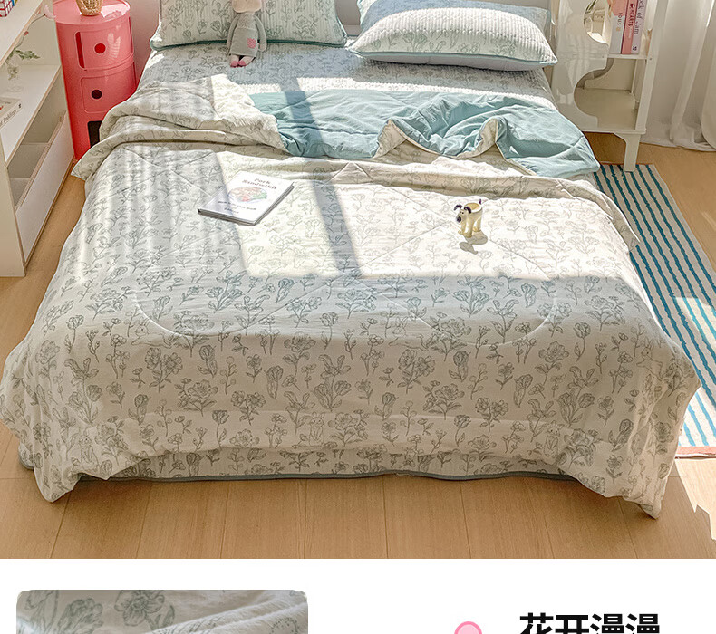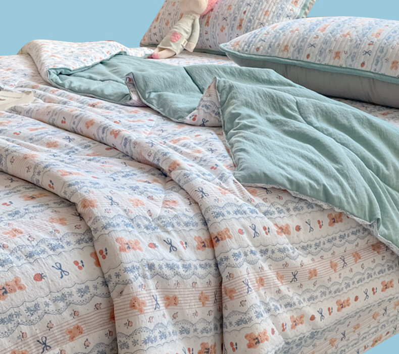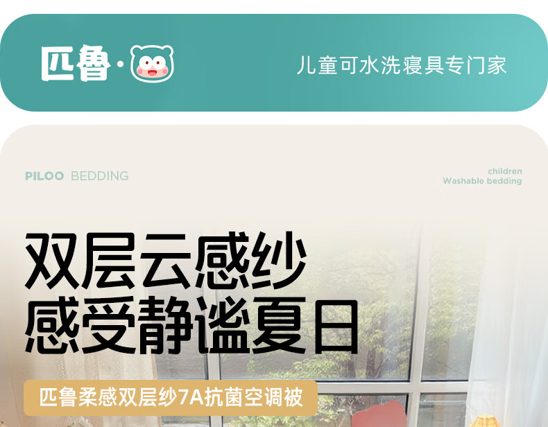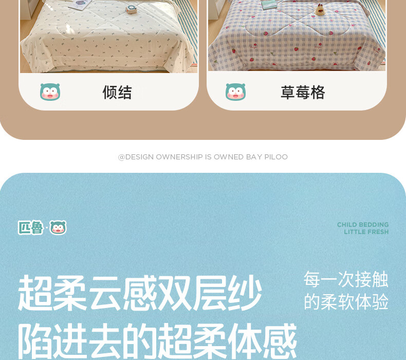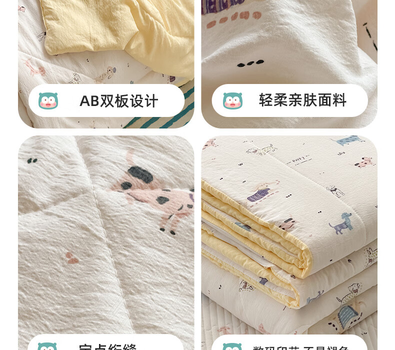 匹鲁儿童被子夏凉被双层柔感双层纱7A抗菌可水洗机洗夏季大豆空调被 倾结(7A抗菌) 150cm*200cm