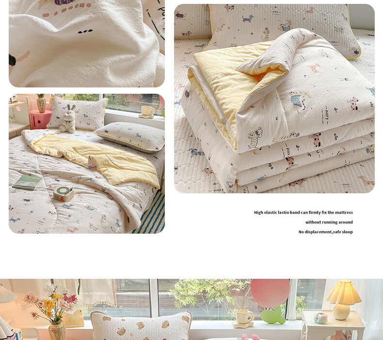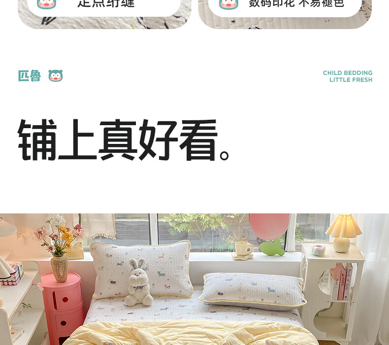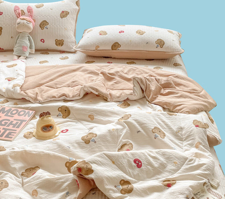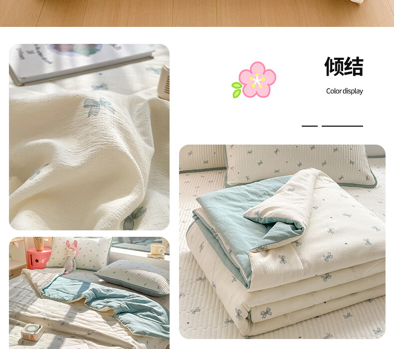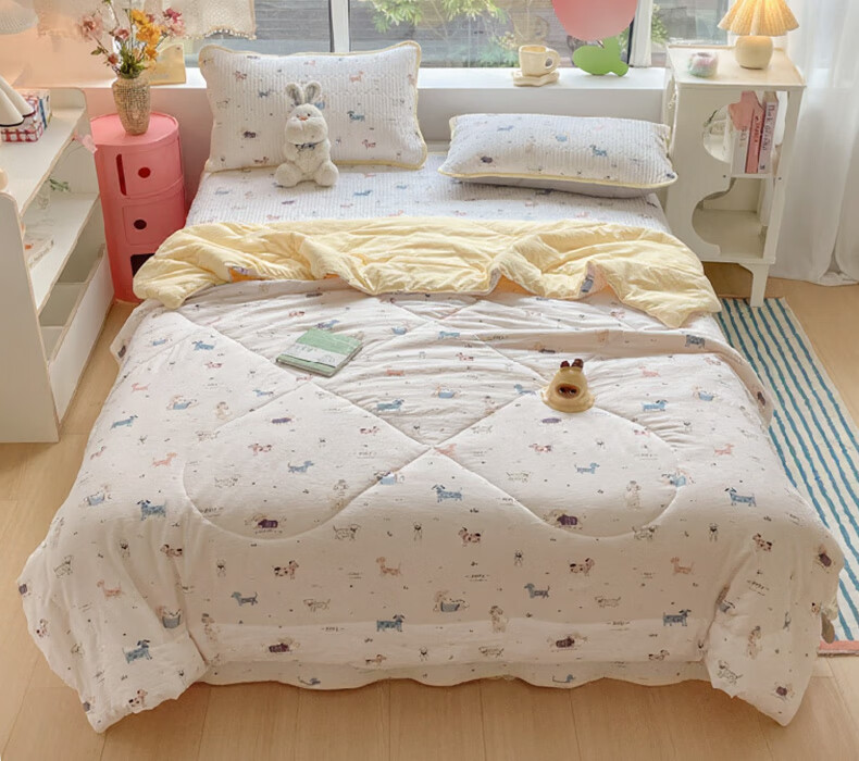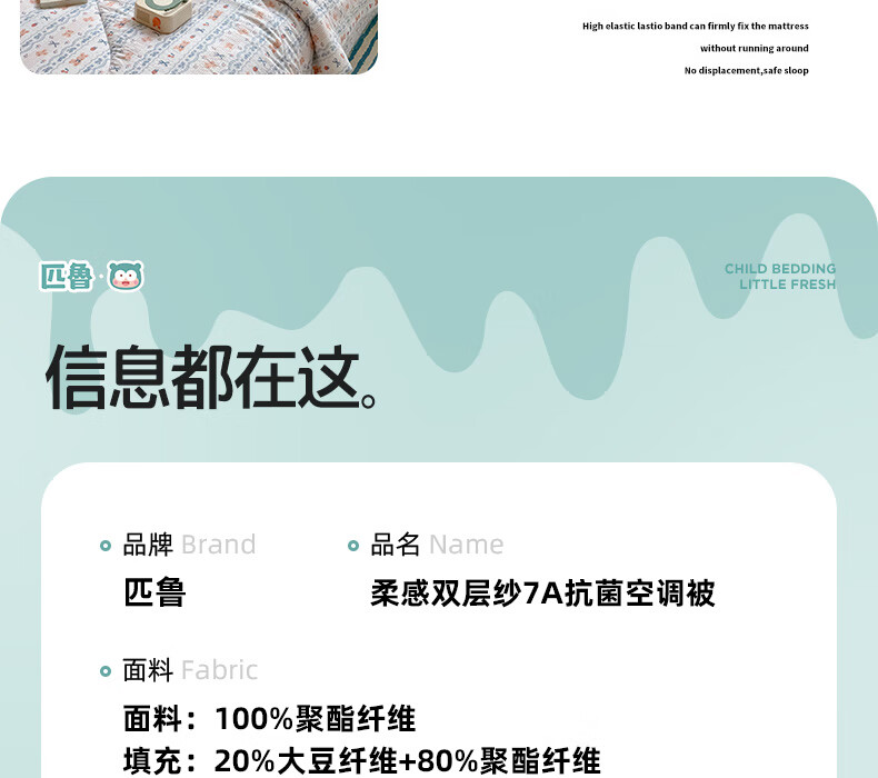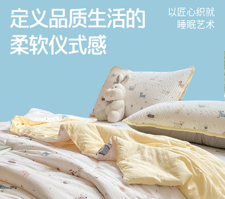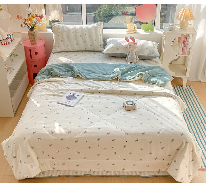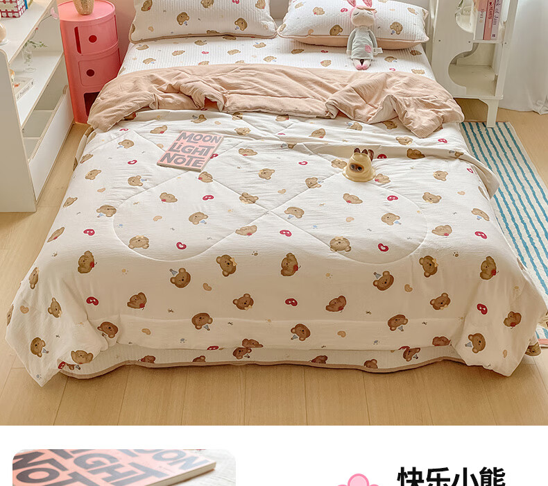 匹鲁儿童被子夏凉被双层柔感双层纱7A抗菌可水洗机洗夏季大豆空调被 倾结(7A抗菌) 150cm*200cm