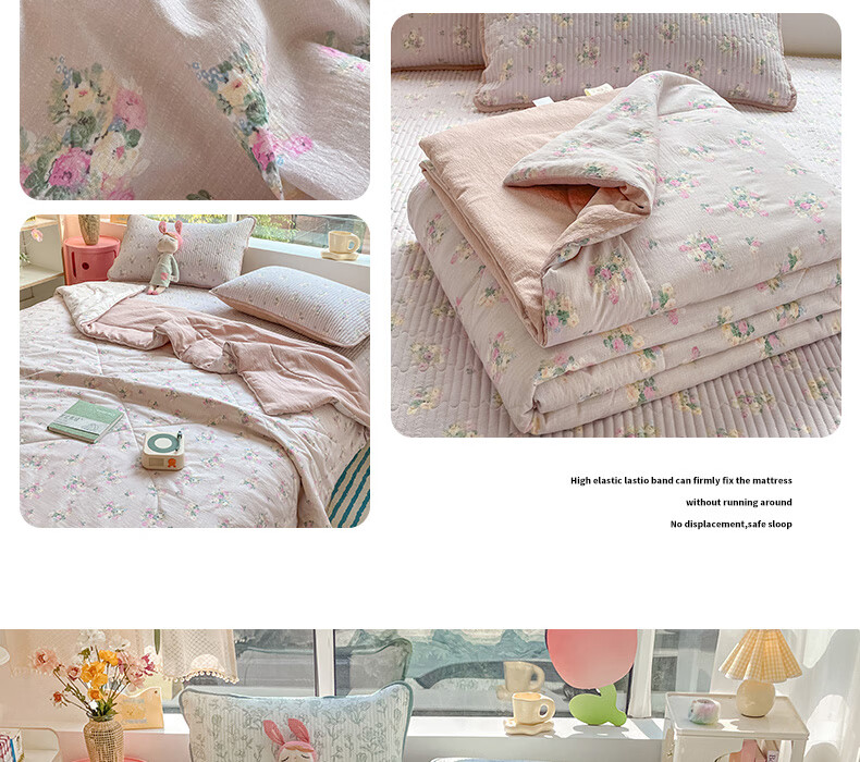 软贝 小清新四件套 透气亲肤 印花卡通简约田园套件被套床单床上用品 朵朵情怀-绿 2.0m 床单款 四件套(被套200*230cm)