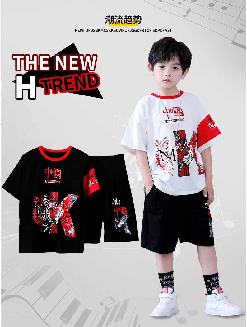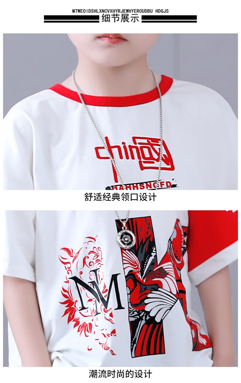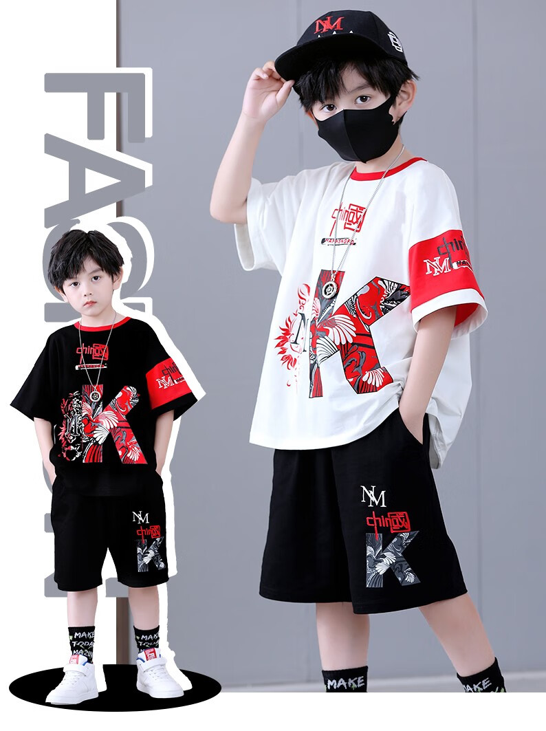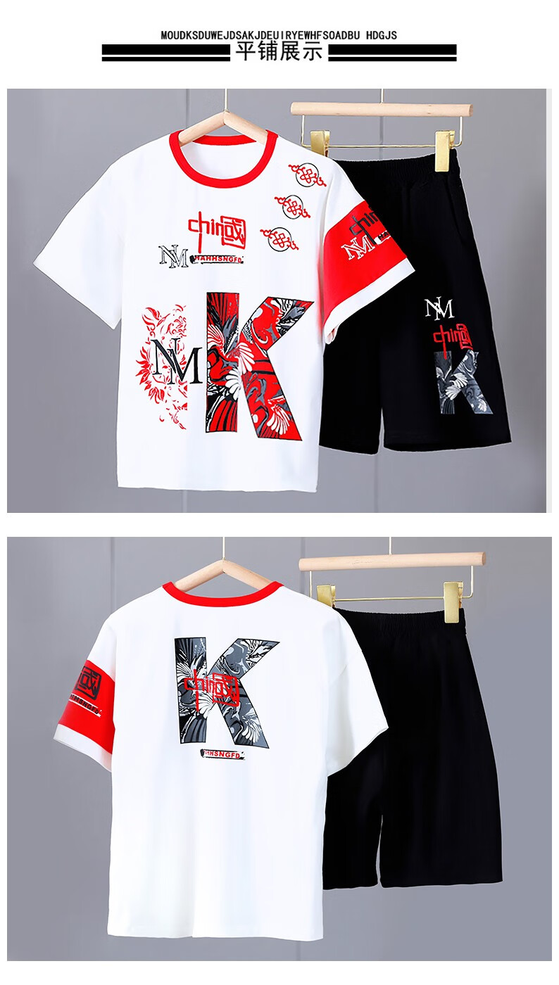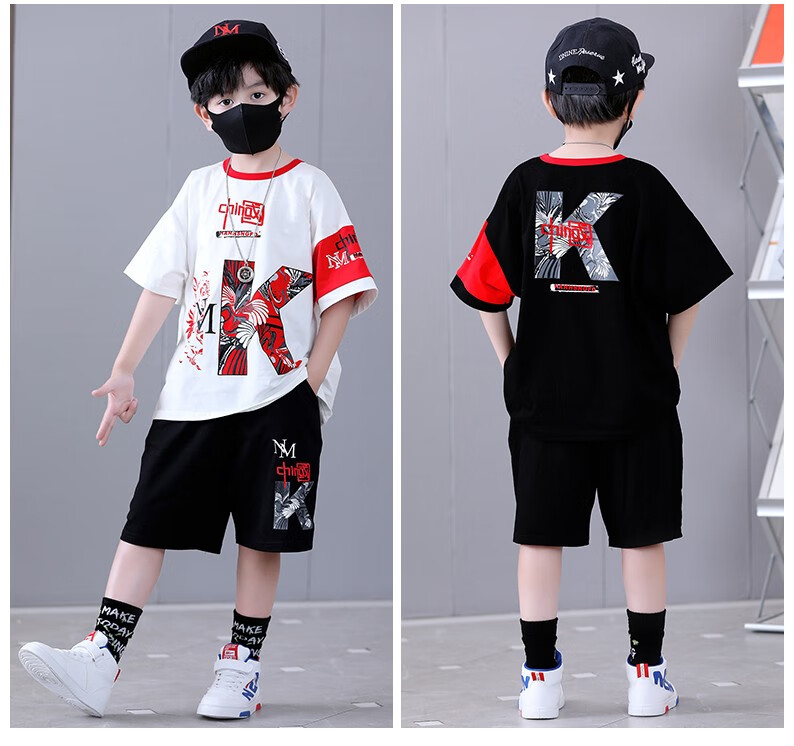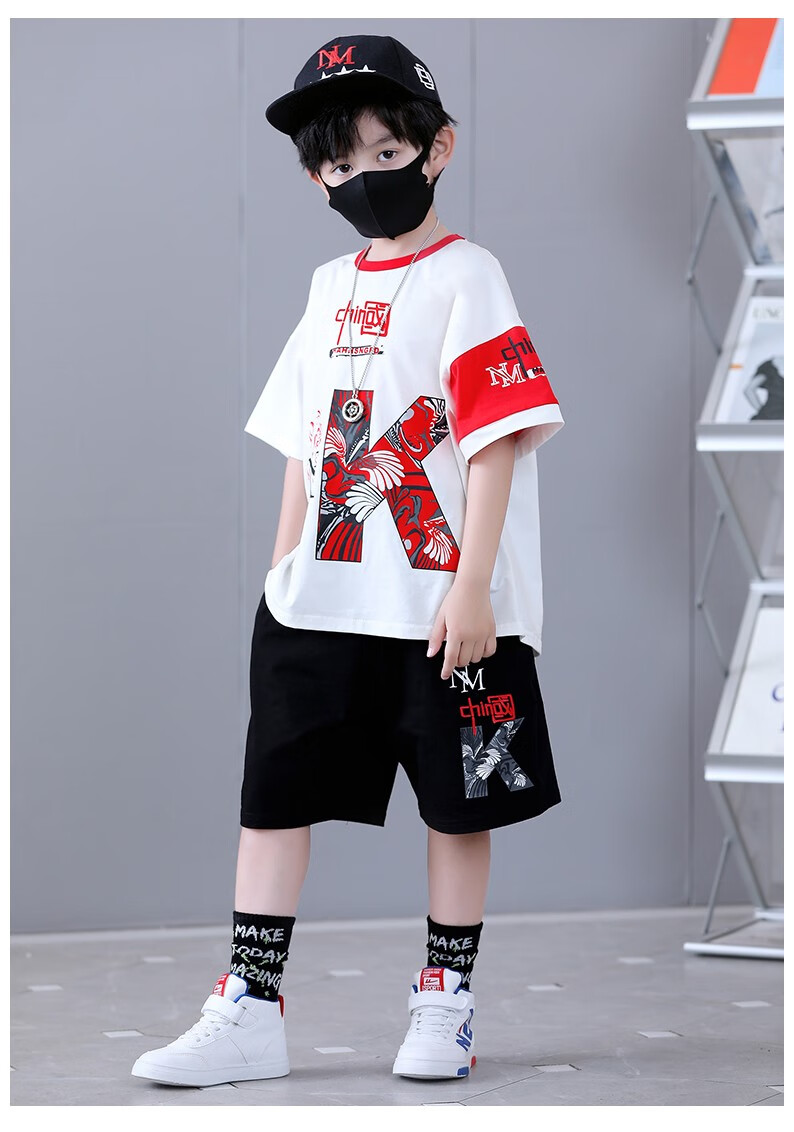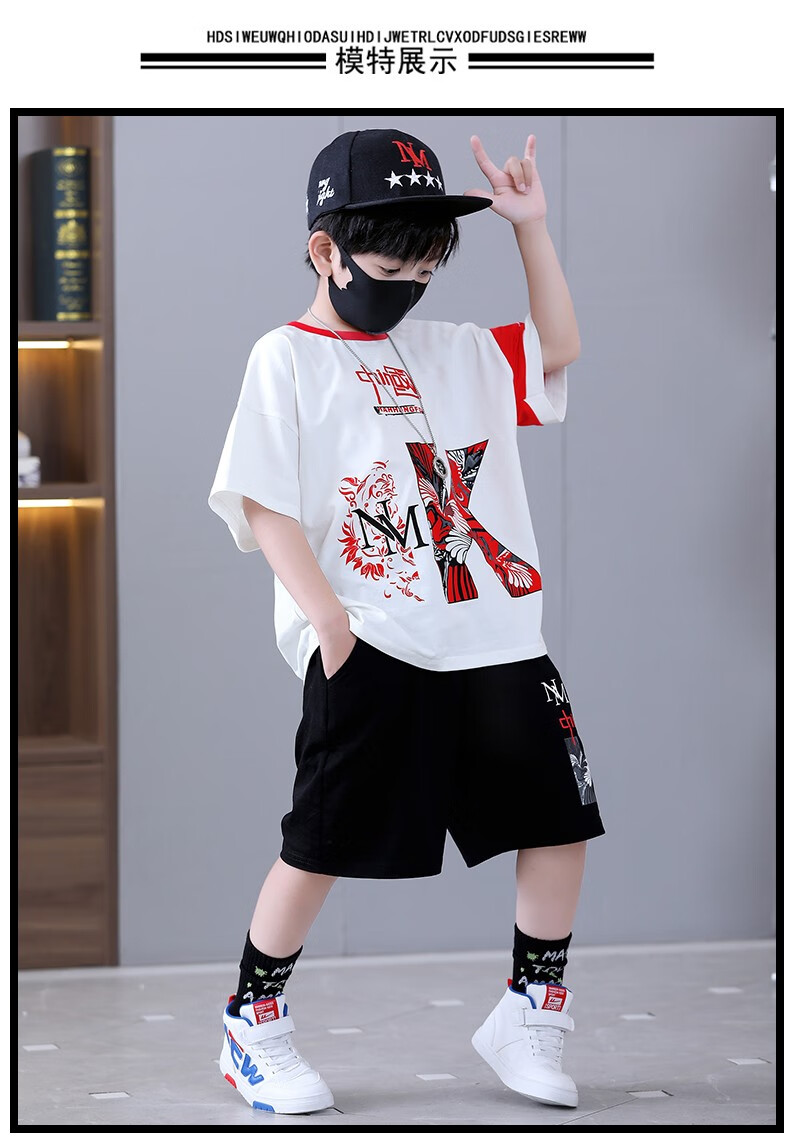 宇龙童话(elongstory)童装短袖男童套装帅气中国风男孩夏天国潮运动儿童街舞衣服裤子 白色夏装套装(衣服裤子) 160 码建议身高1.45-1.5米左右