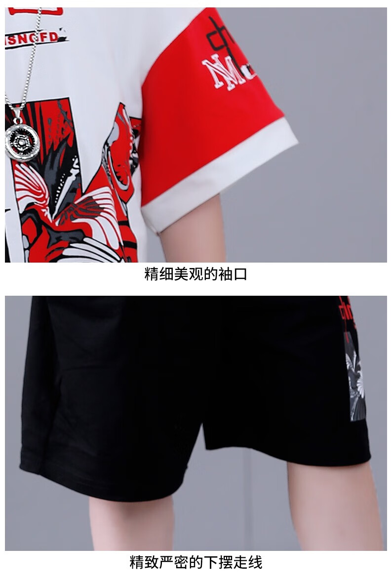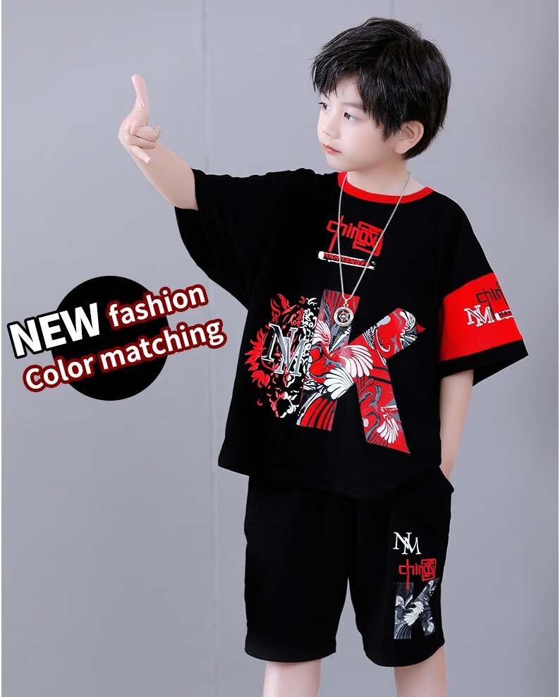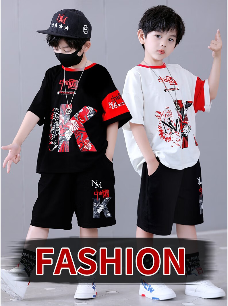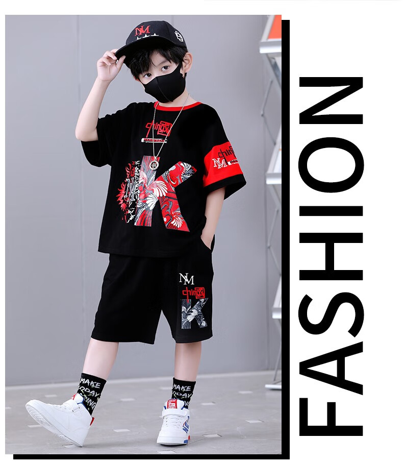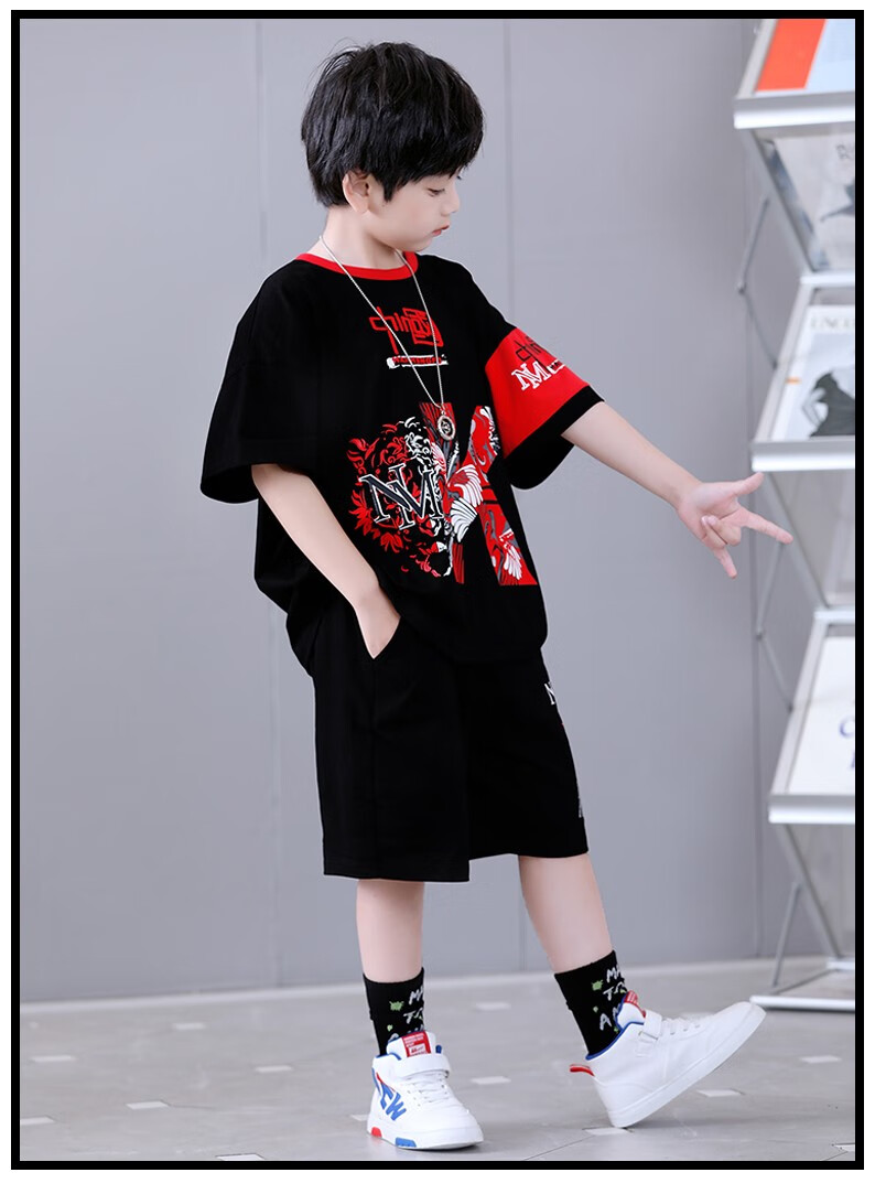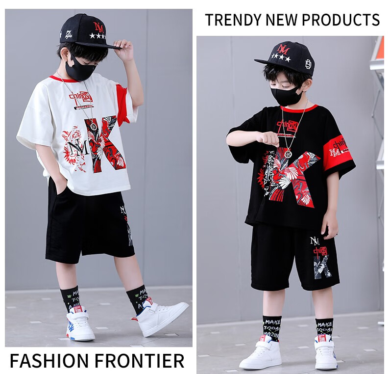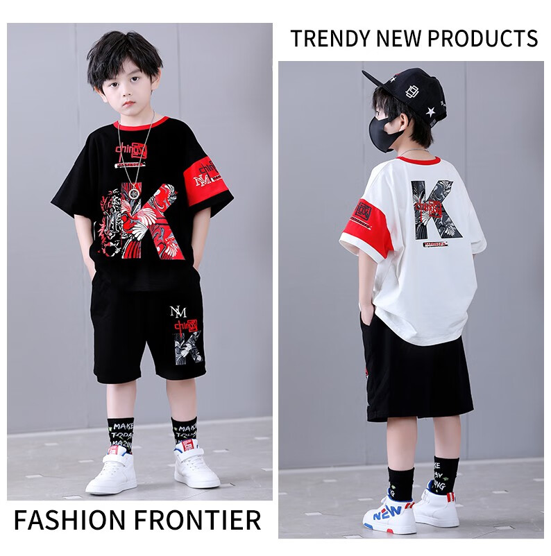 宇龙童话(elongstory)童装短袖男童套装帅气中国风男孩夏天国潮运动儿童街舞衣服裤子 白色夏装套装(衣服裤子) 160 码建议身高1.45-1.5米左右