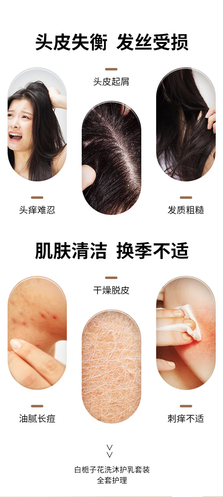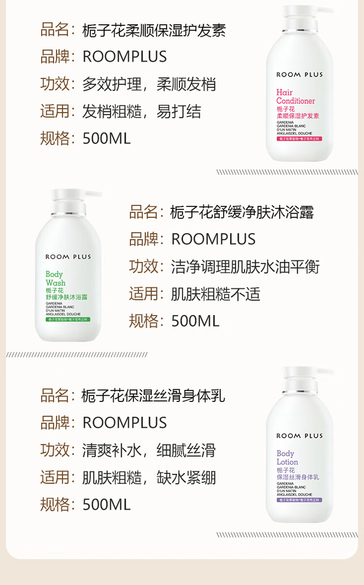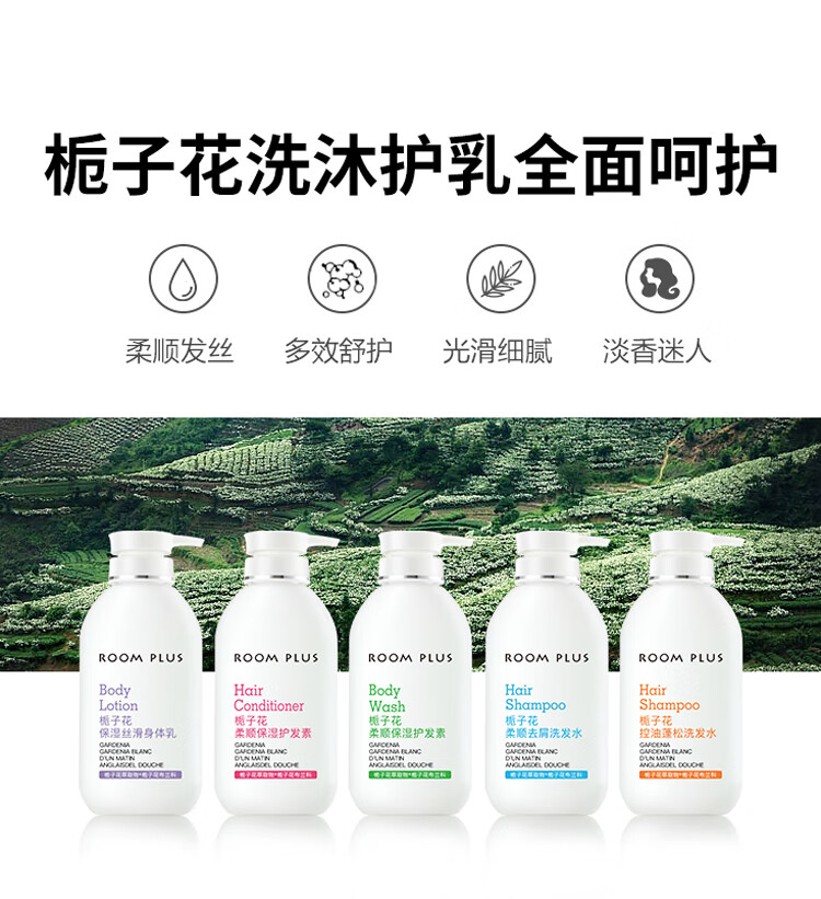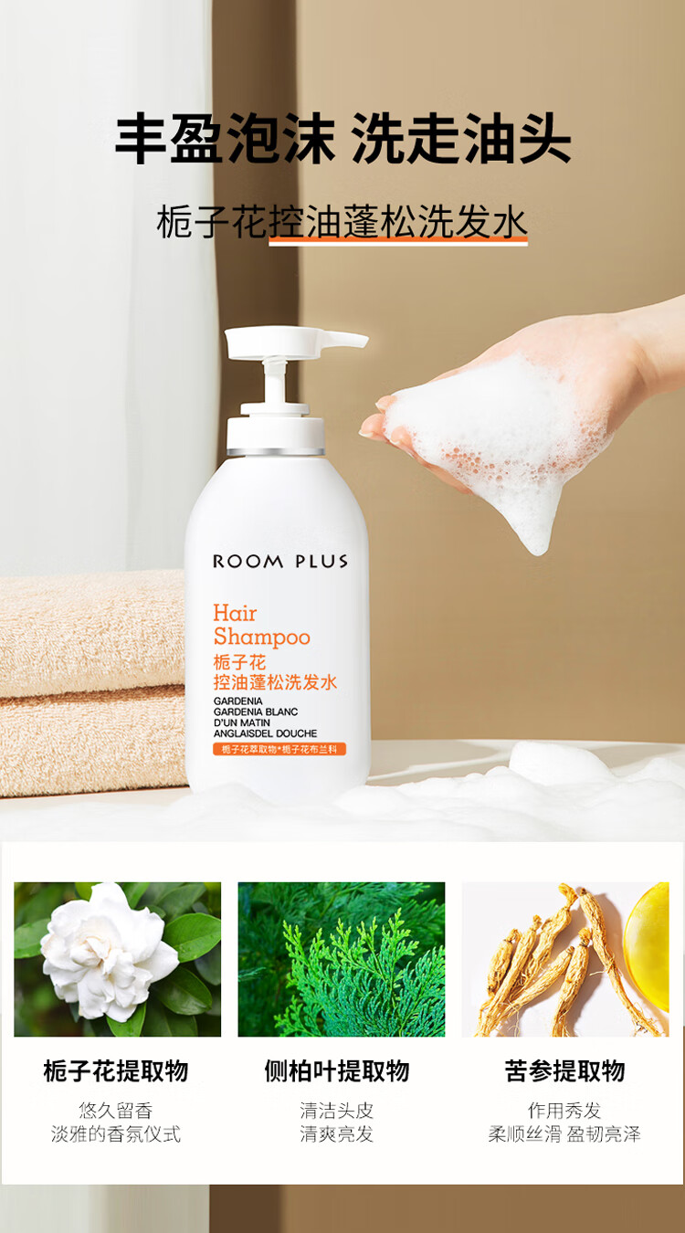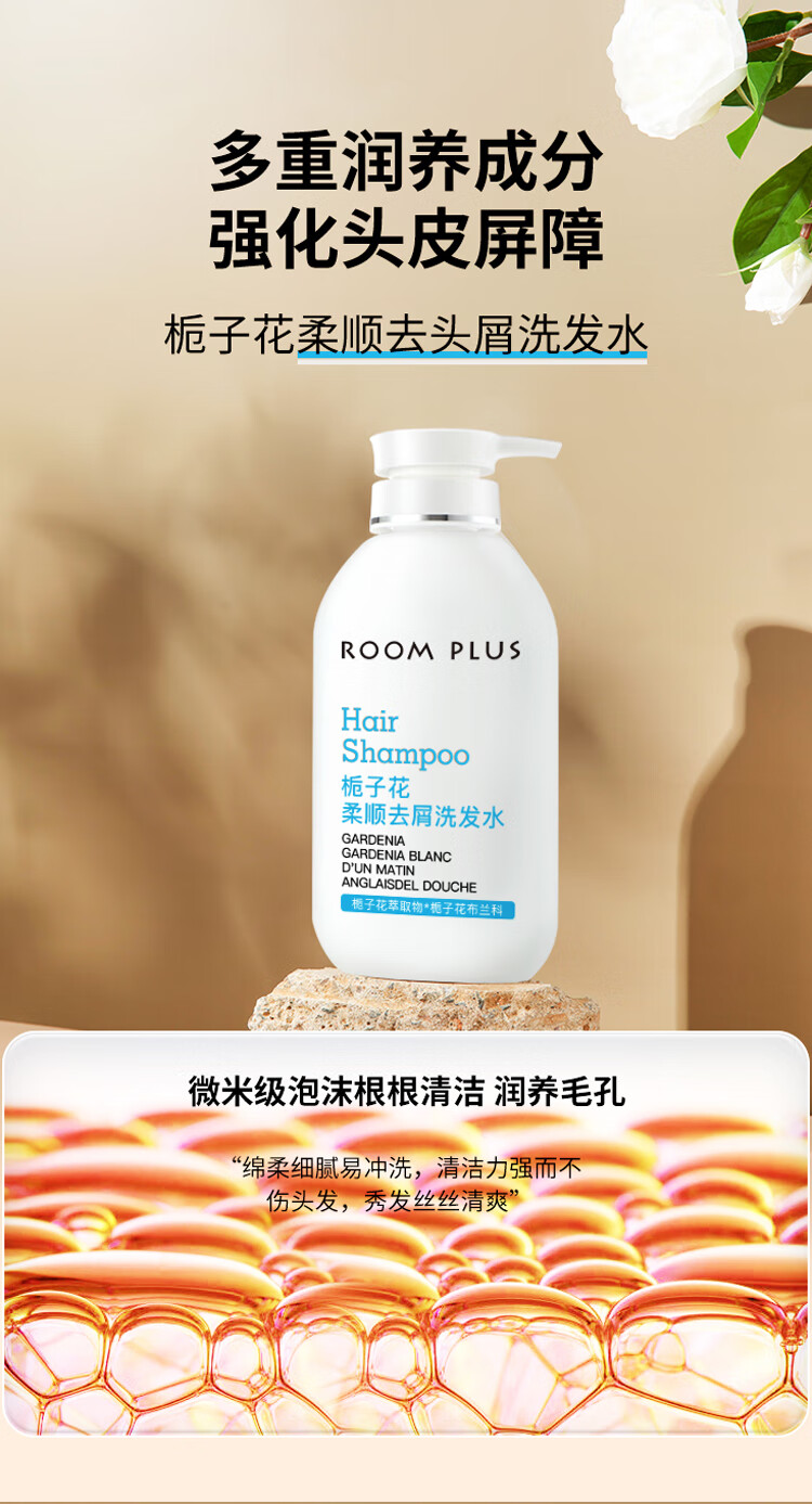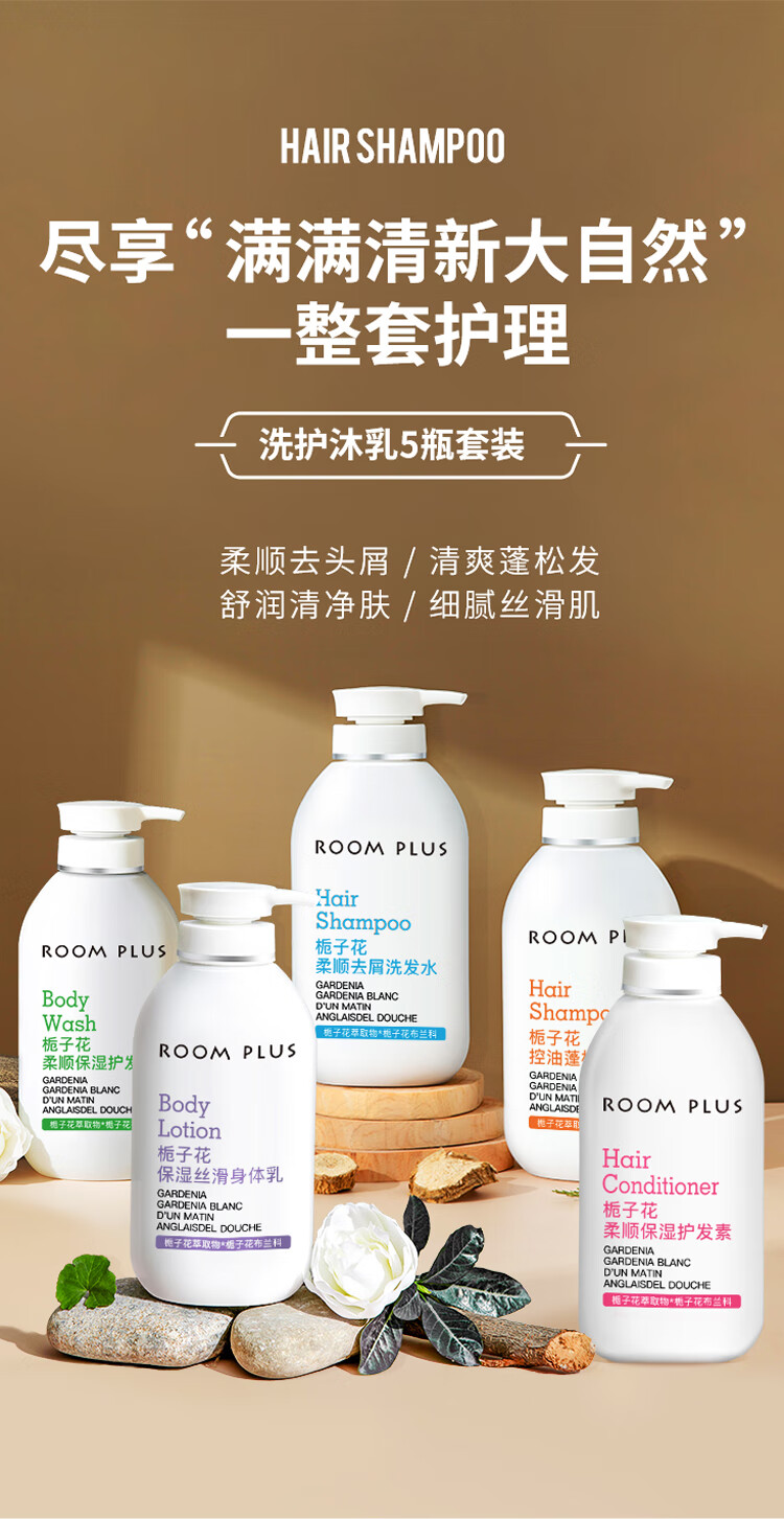 room plus白栀子花香沐浴露洗护套装洗发水男女香氛清爽清洁 去屑洗发+控油洗发