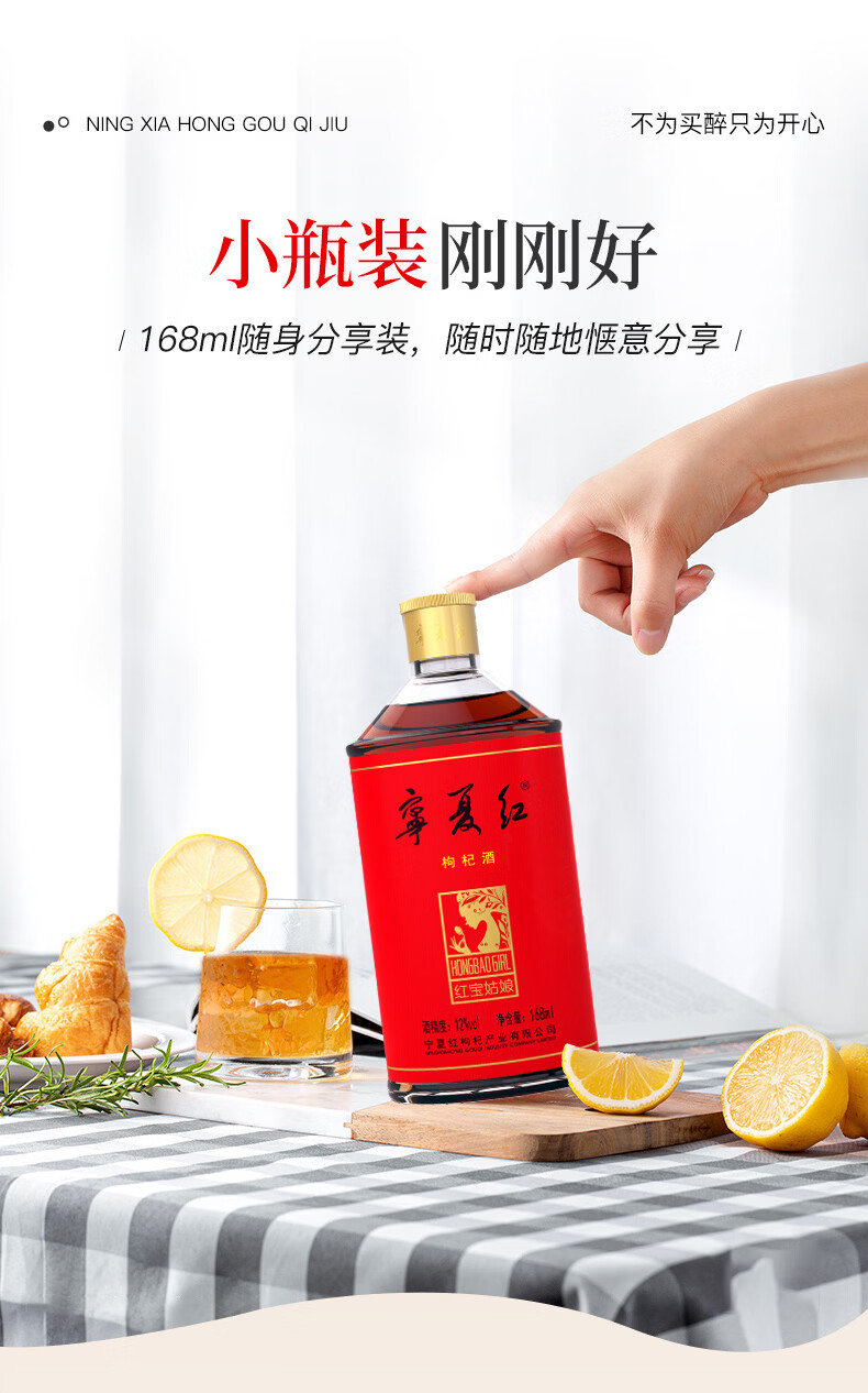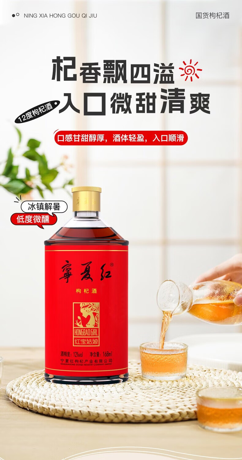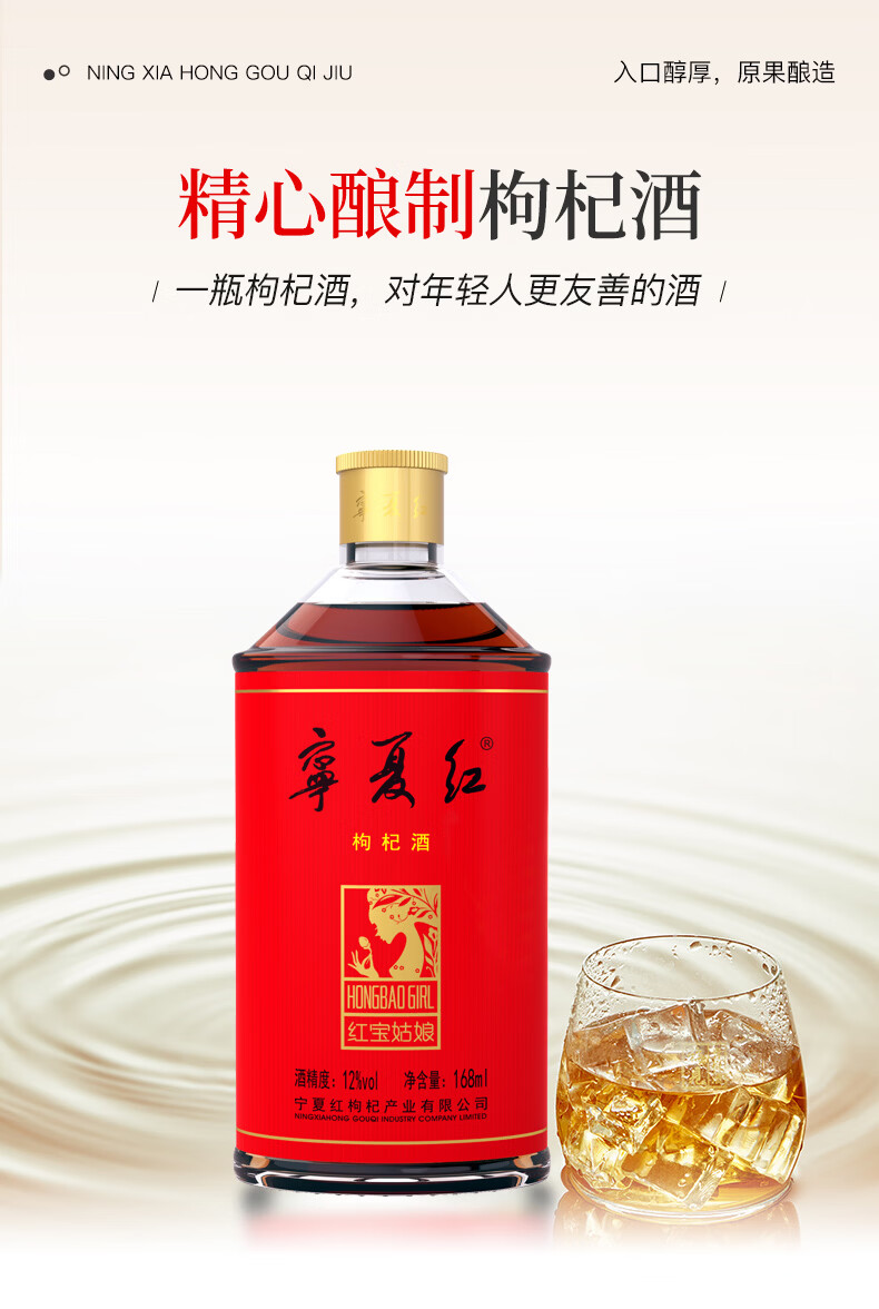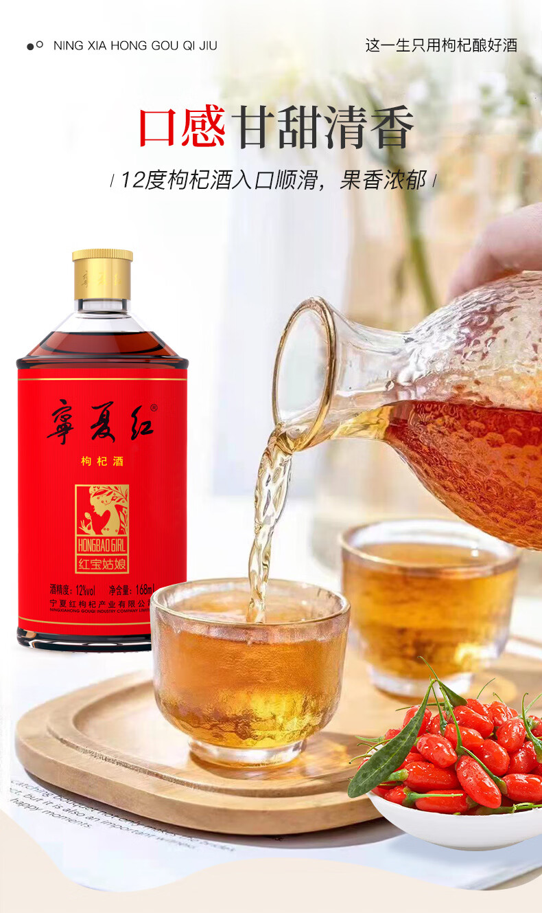 宁夏红枸杞酒12度果酒养生酒草本酒保健酒红宝姑娘宁夏168ml小瓶整箱发 12度 168mL 24瓶 【赠枸杞原浆】