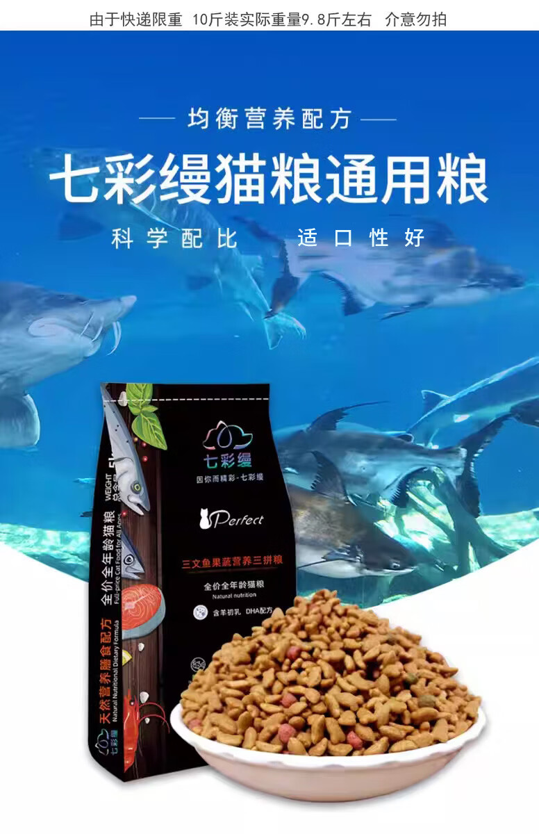 七彩缦爱心猫粮10斤5kg装鱼肉味猫咪牛肉味营养主粮通用幼猫成猫流浪猫 鱼肉味10斤