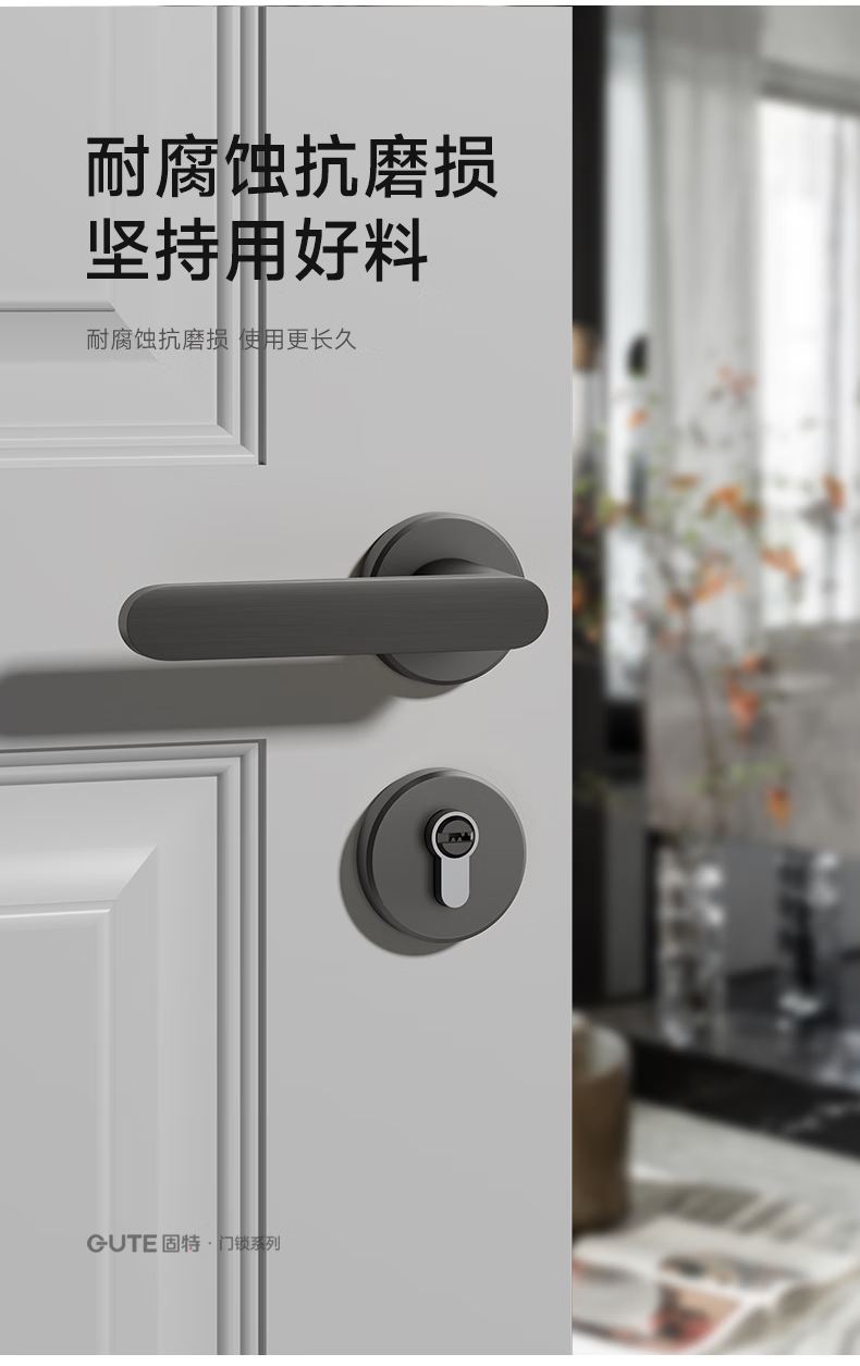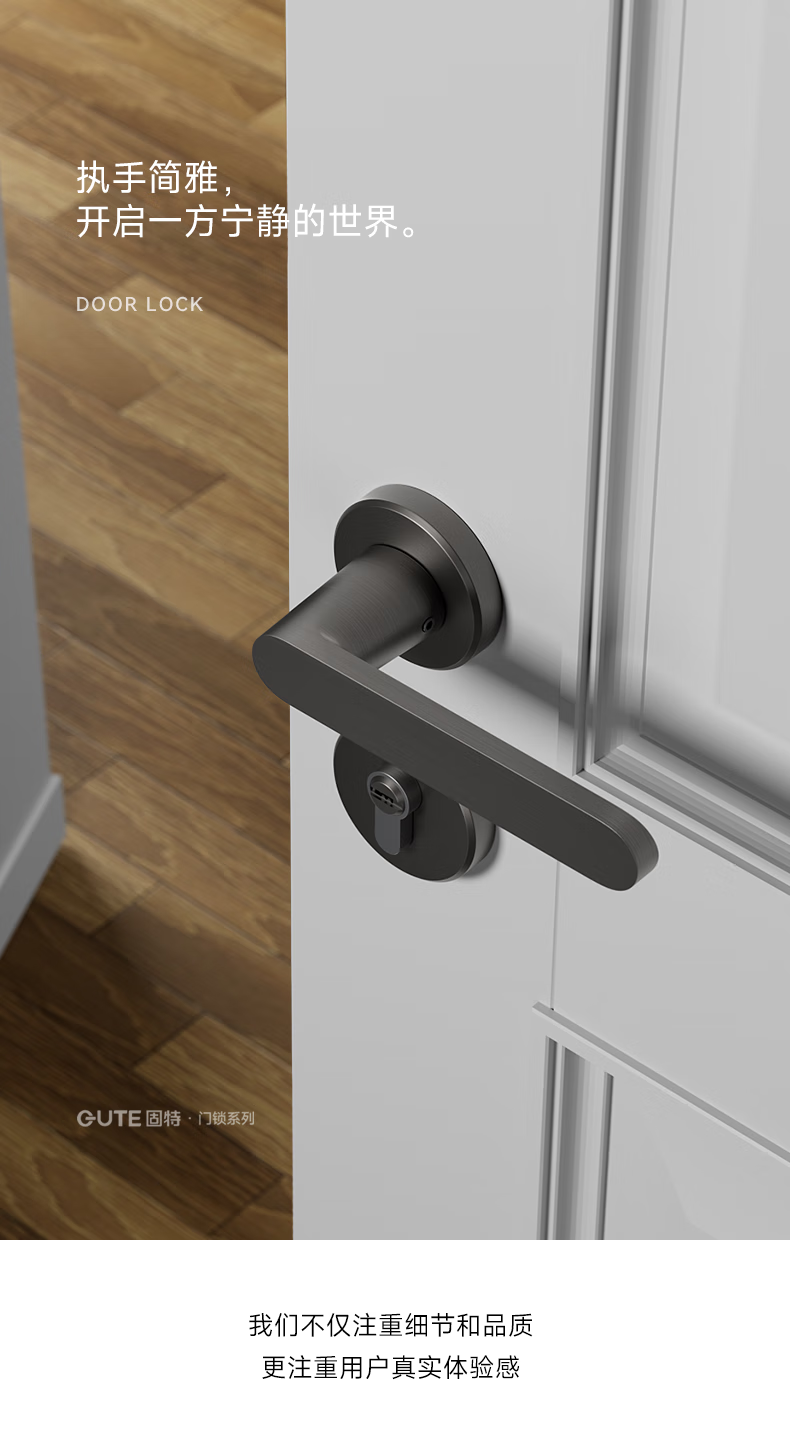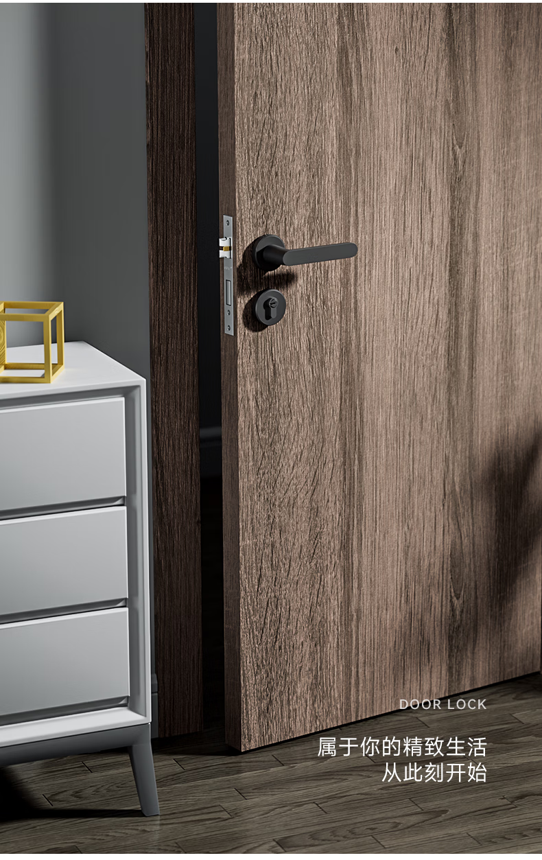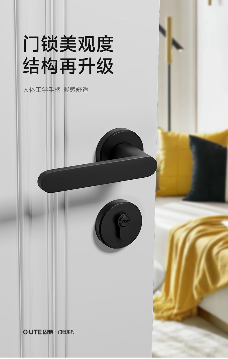 固特现代简约静音家用门锁分体锁具通用室内卧室入户门把手木门卫生间 6802黑色