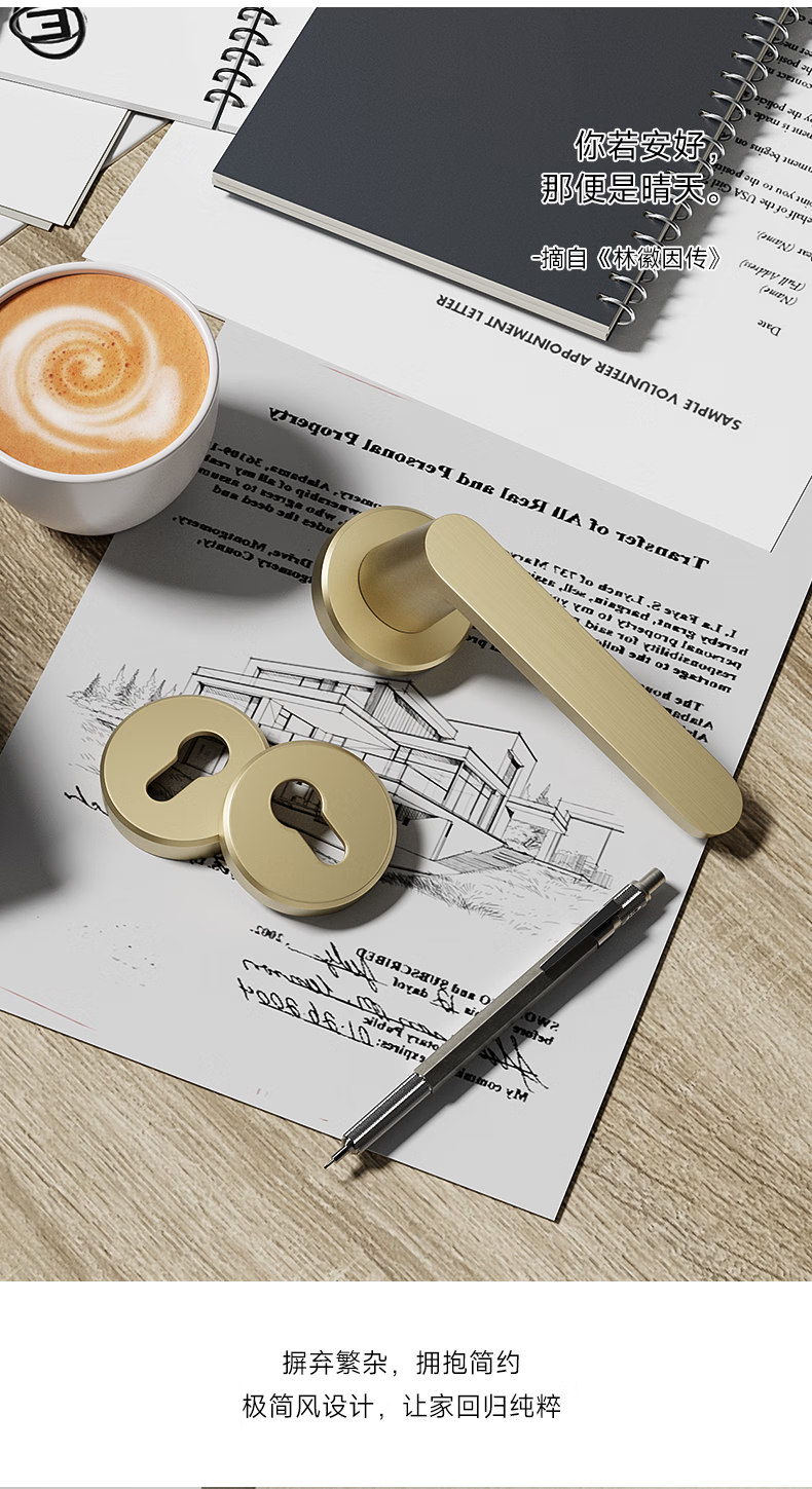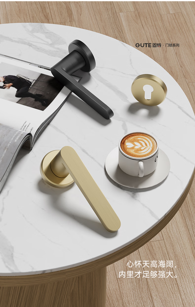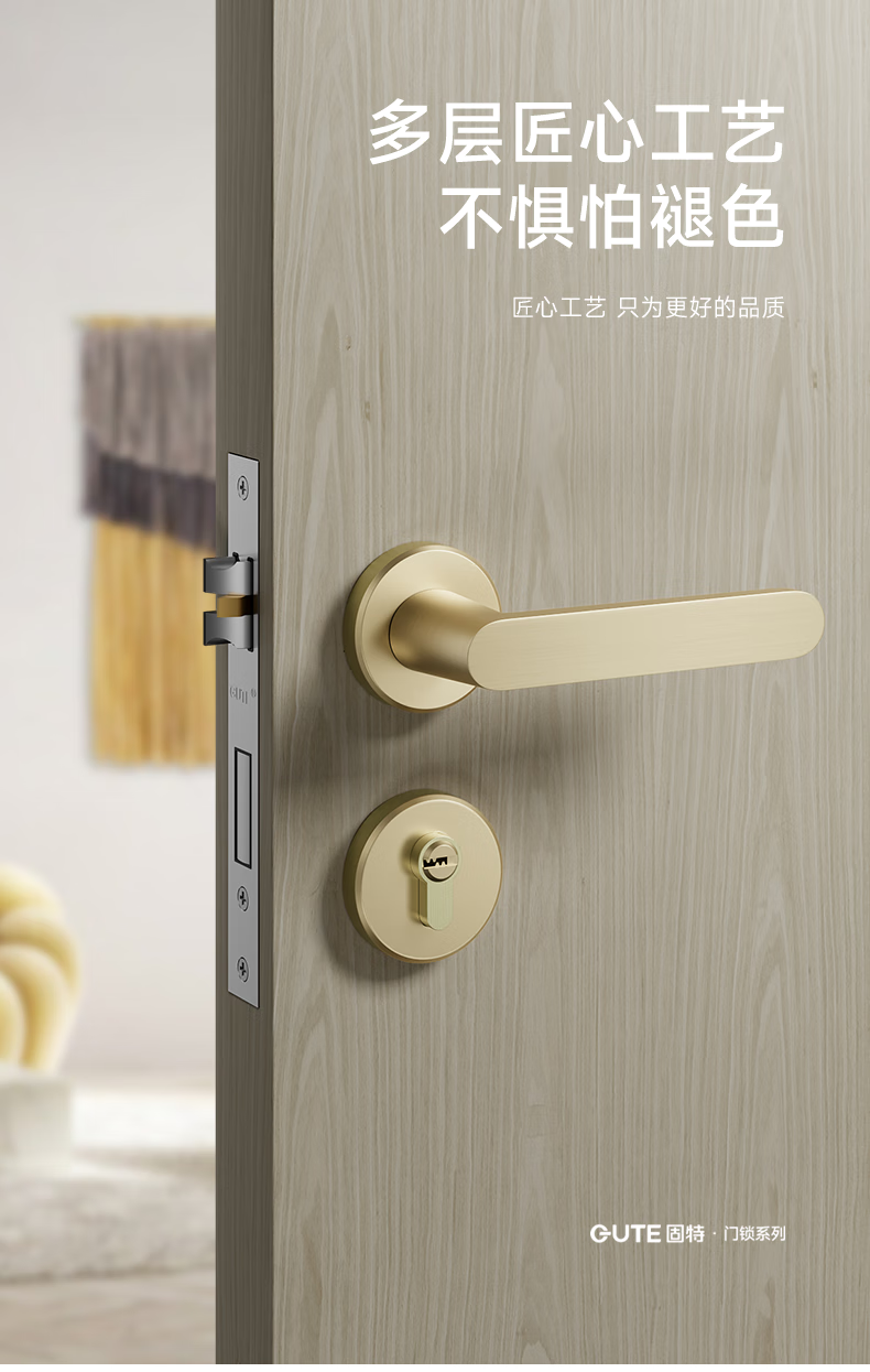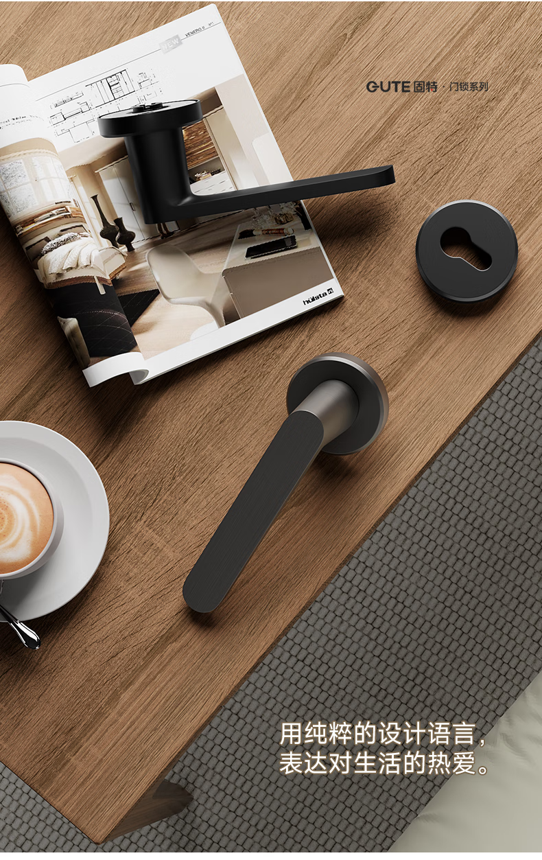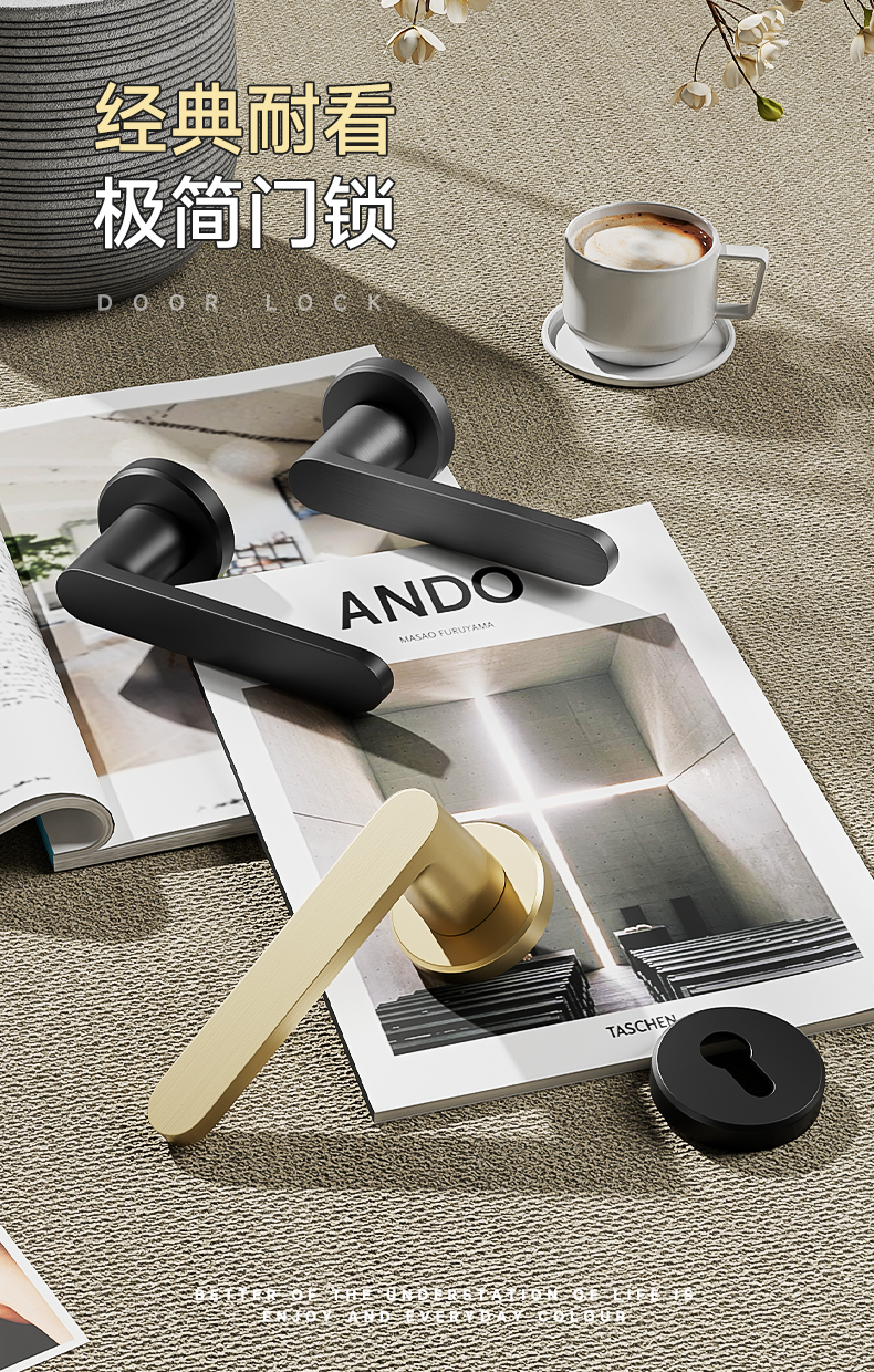 固特现代简约静音家用门锁分体锁具通用室内卧室入户门把手木门卫生间 6802黑色