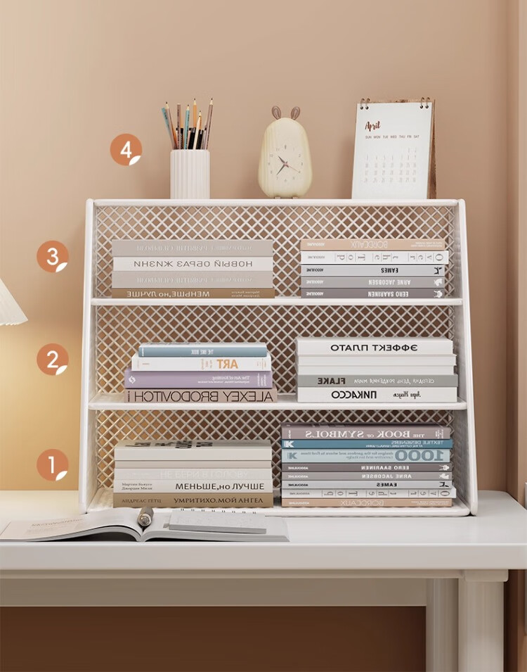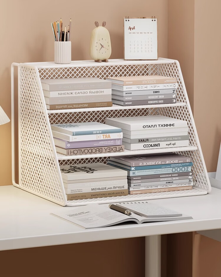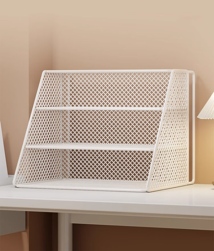 尔思家桌面置物架台面书架家用桌上收纳架多层办公桌书桌分层架子整理架 白色大号【加高款】