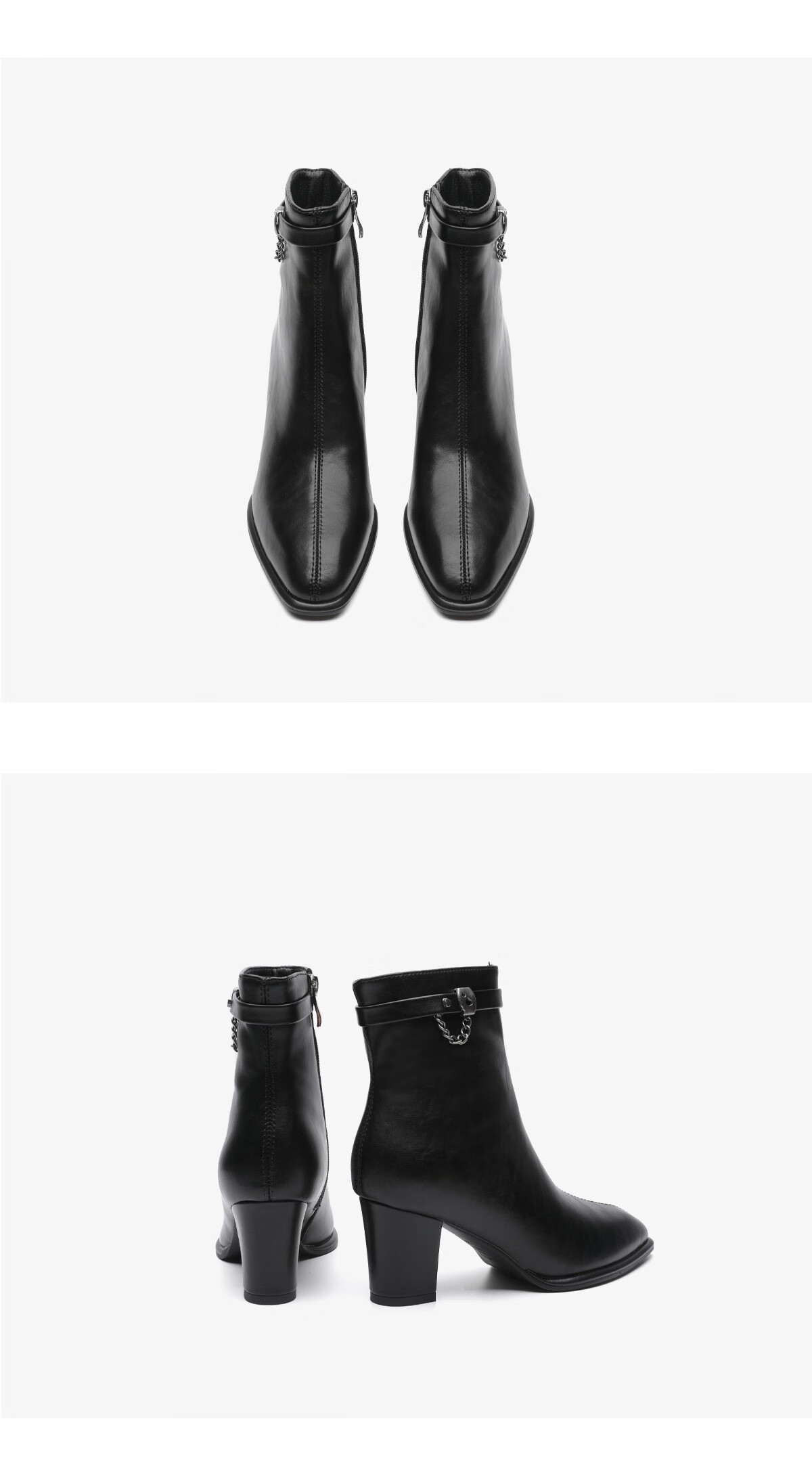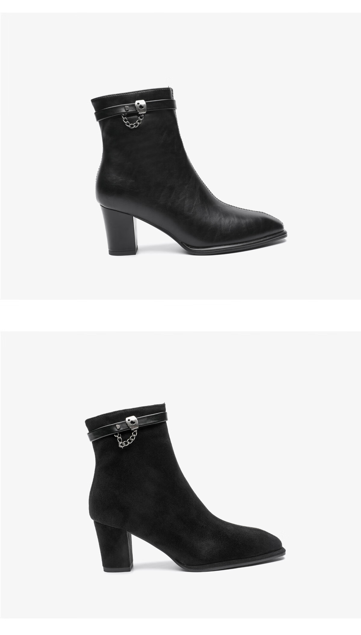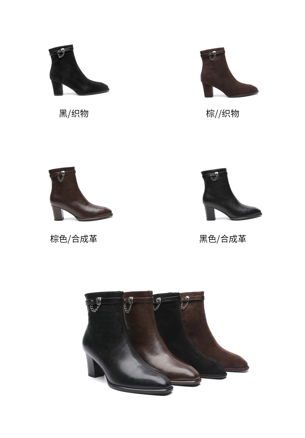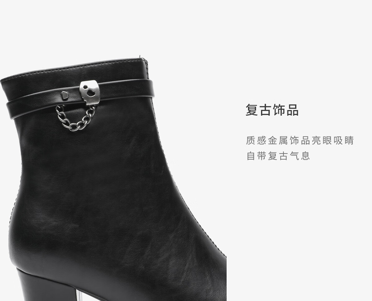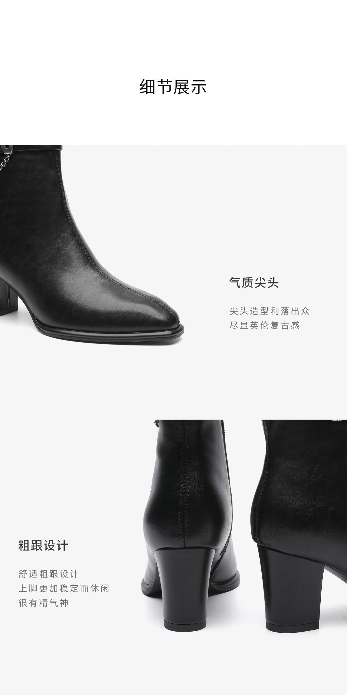 月芽儿女鞋2025新款冬季短靴女猫跟时装靴尖头靴中年女士瘦瘦靴 绒里黑色01T 34