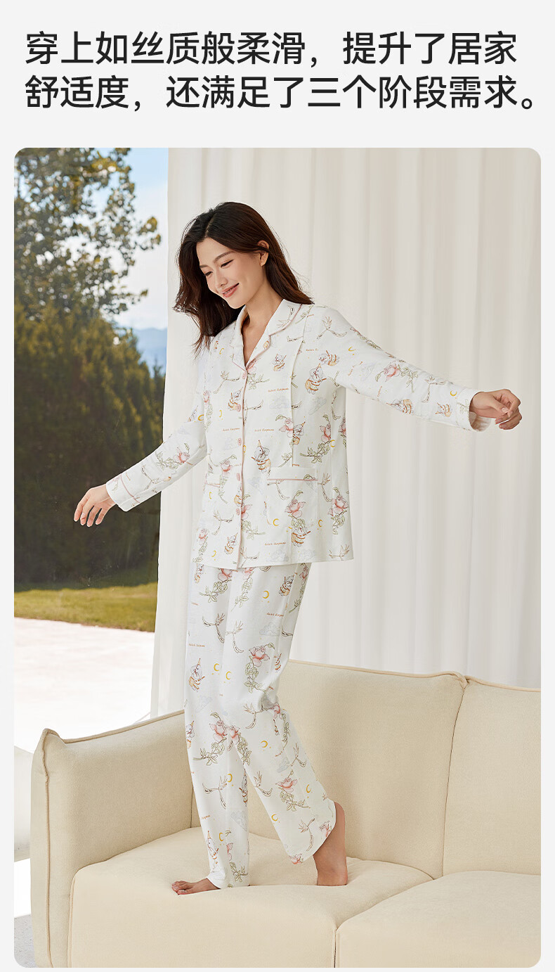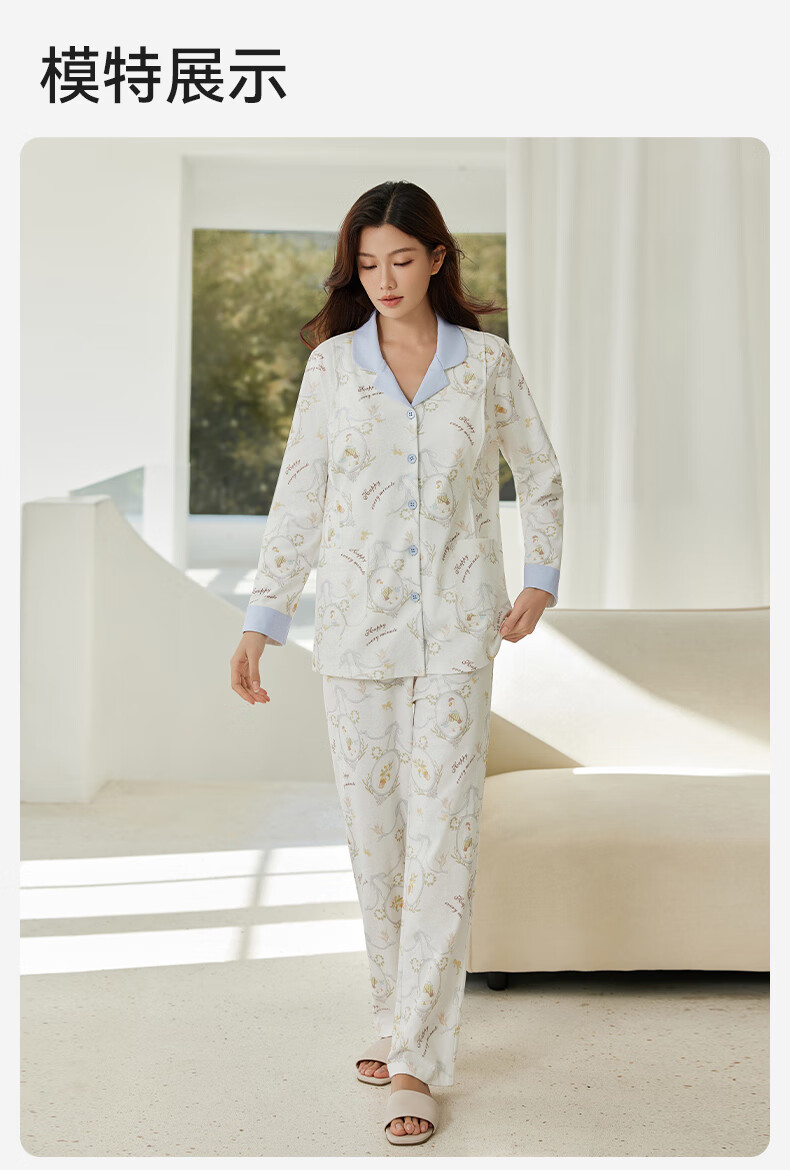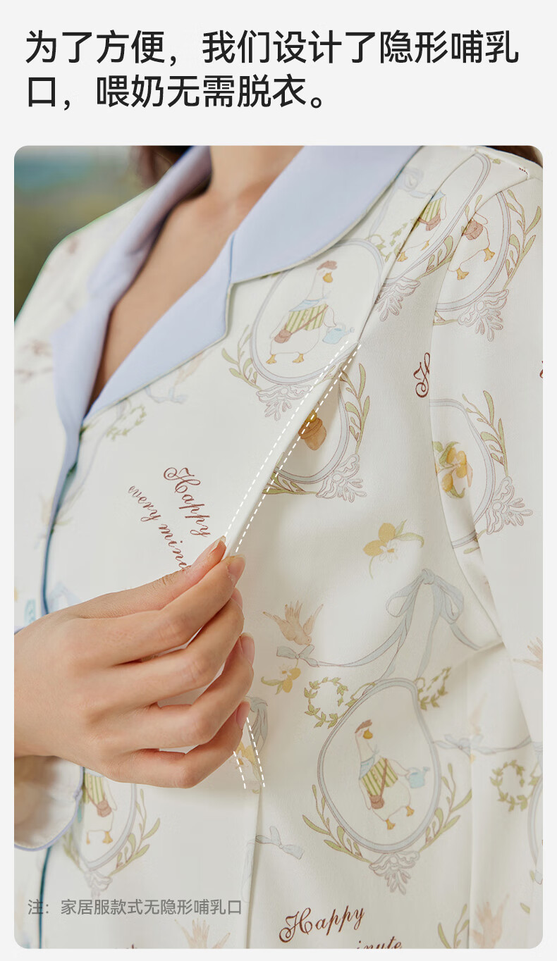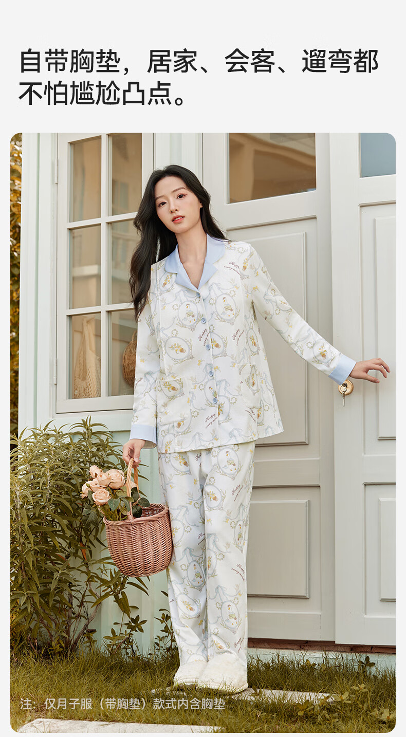 十月结晶月子服孕产妇冬季棉产后哺乳装睡衣家居服套装 花环游鸭M码