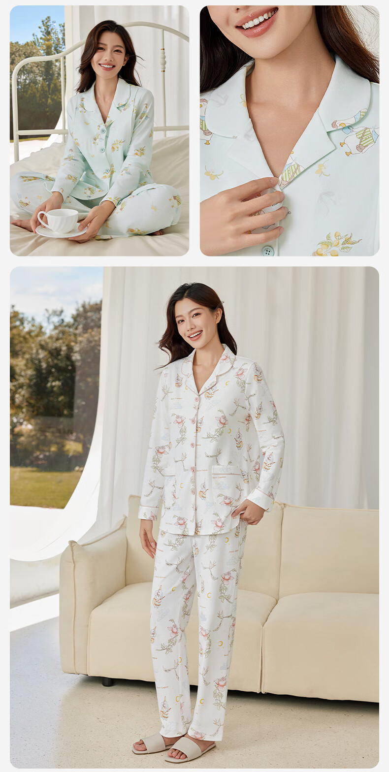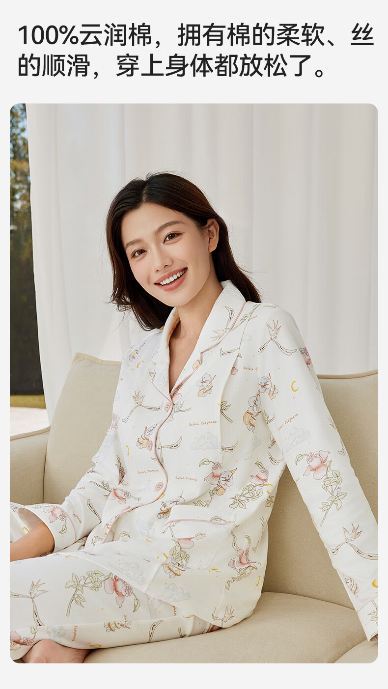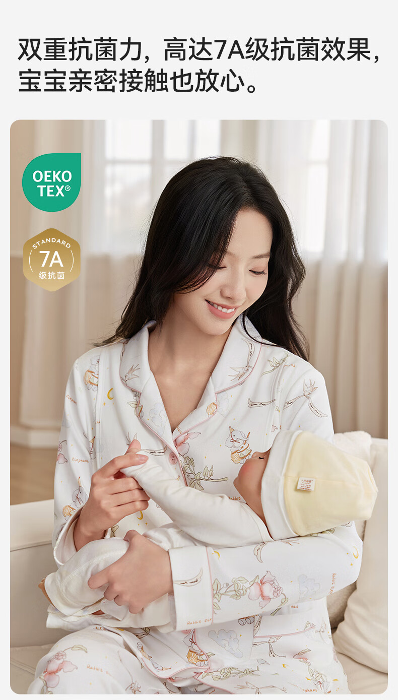 十月结晶月子服孕产妇冬季棉产后哺乳装睡衣家居服套装 花环游鸭M码