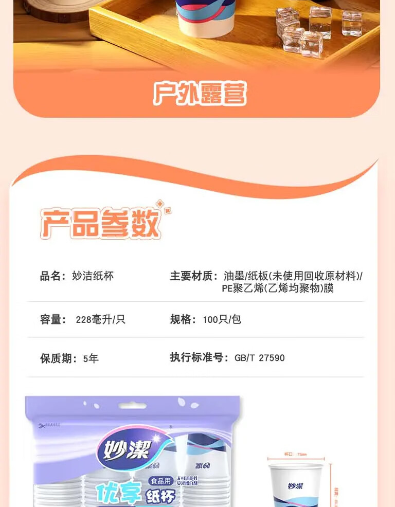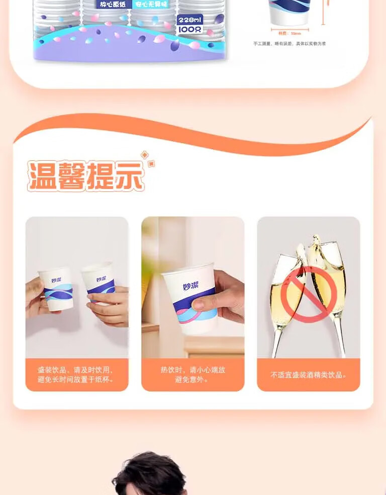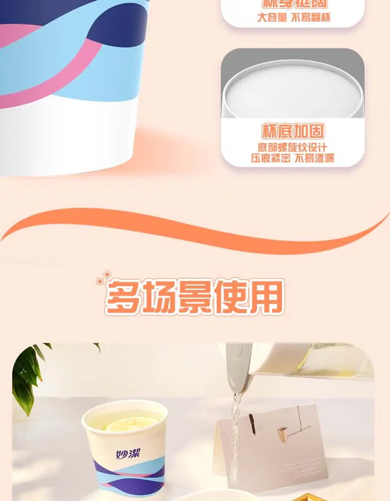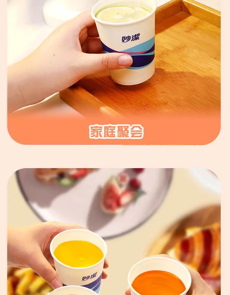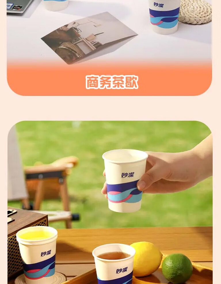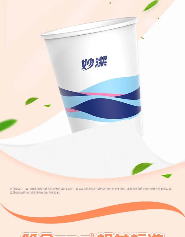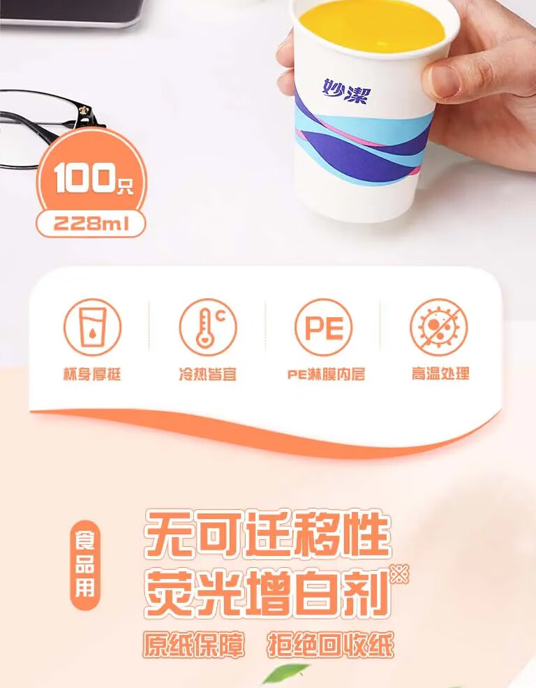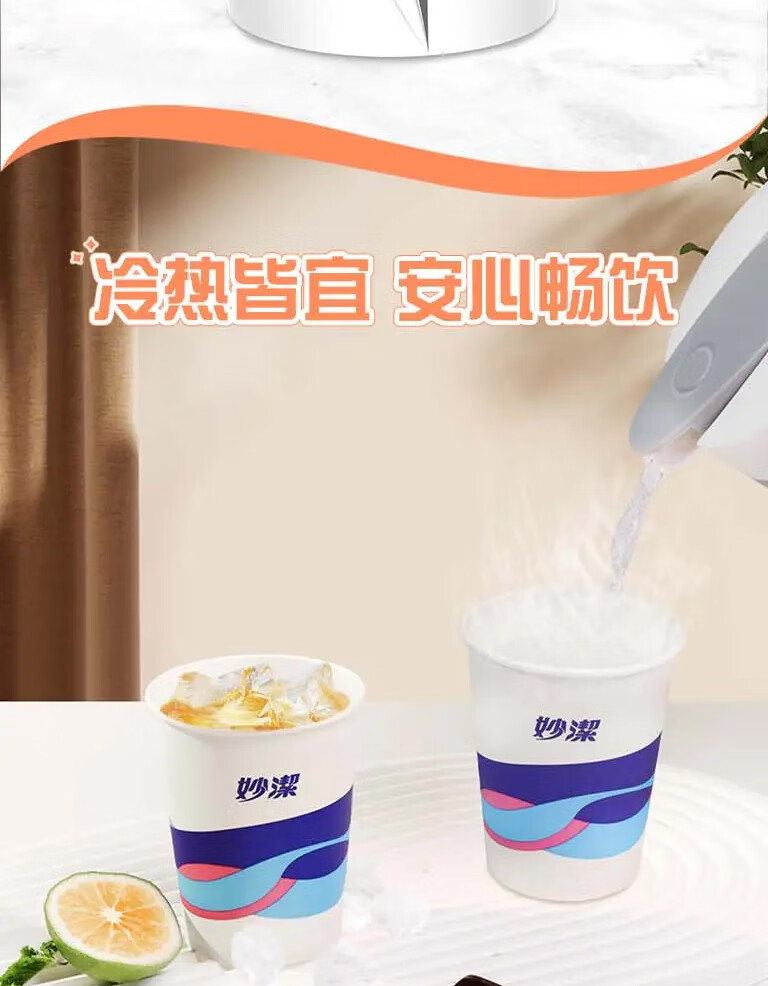 妙洁 纸杯 100只*228ML 一次性杯子茶水加厚食品级