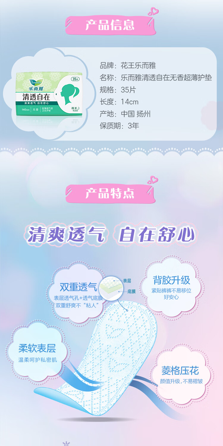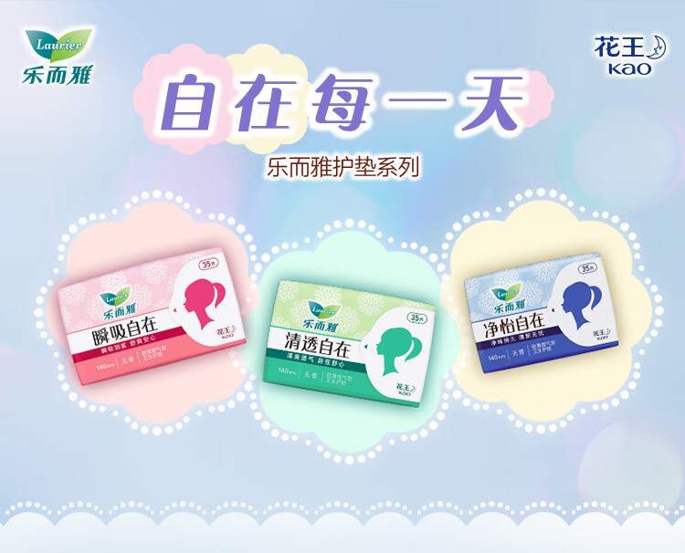 乐而雅花王清透自在无香超薄护垫14cm35片卫生巾姨妈巾京东自营新国标
