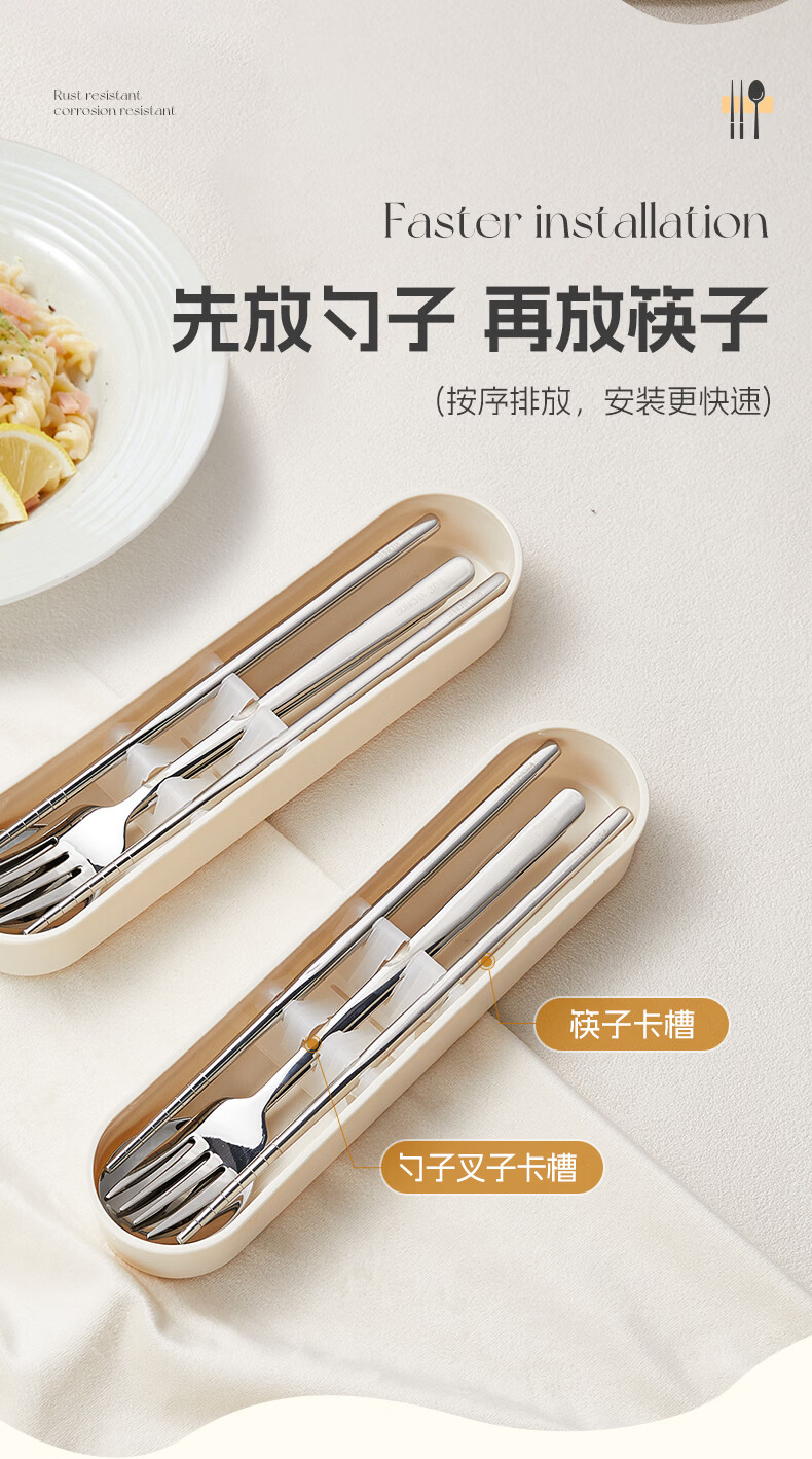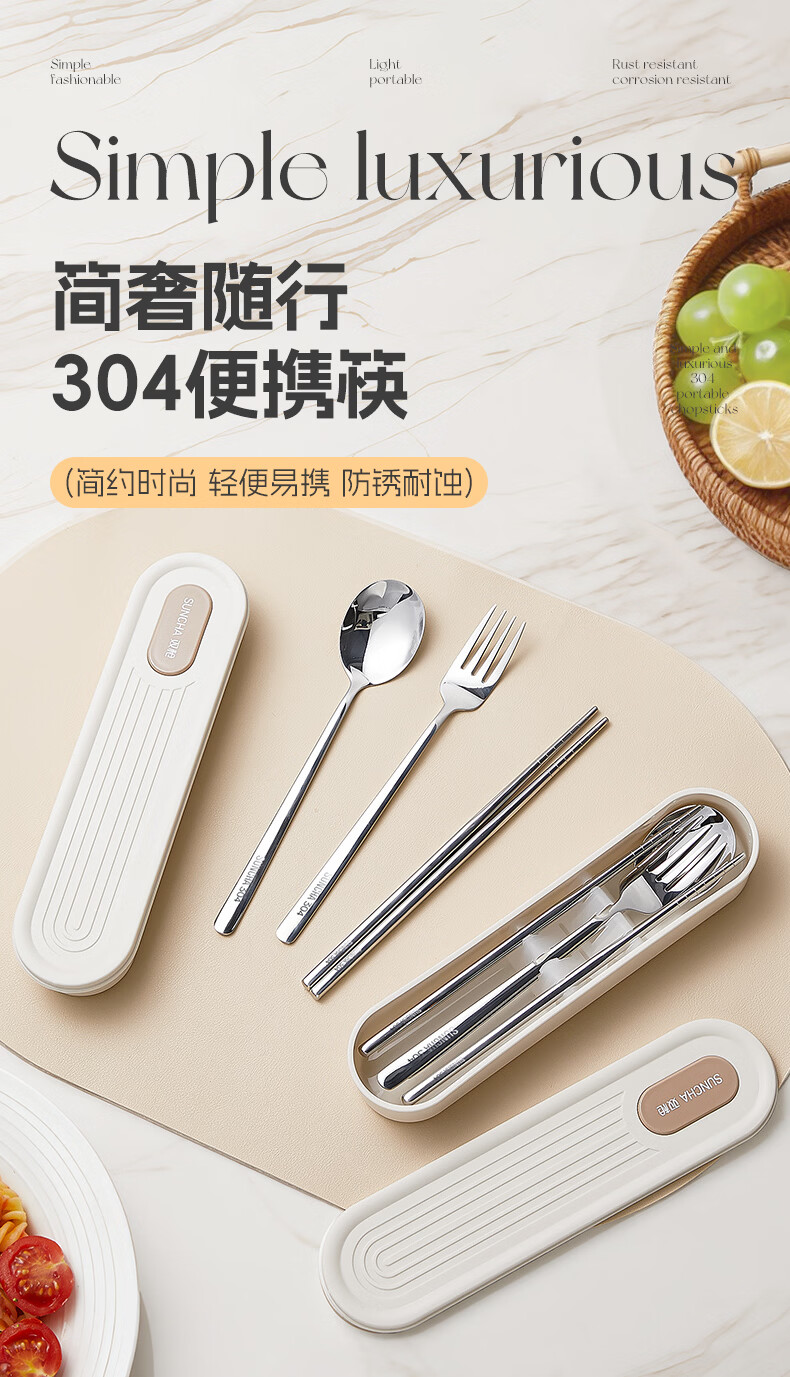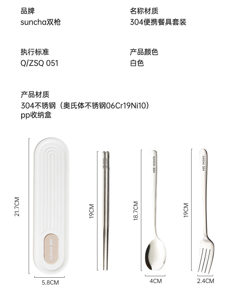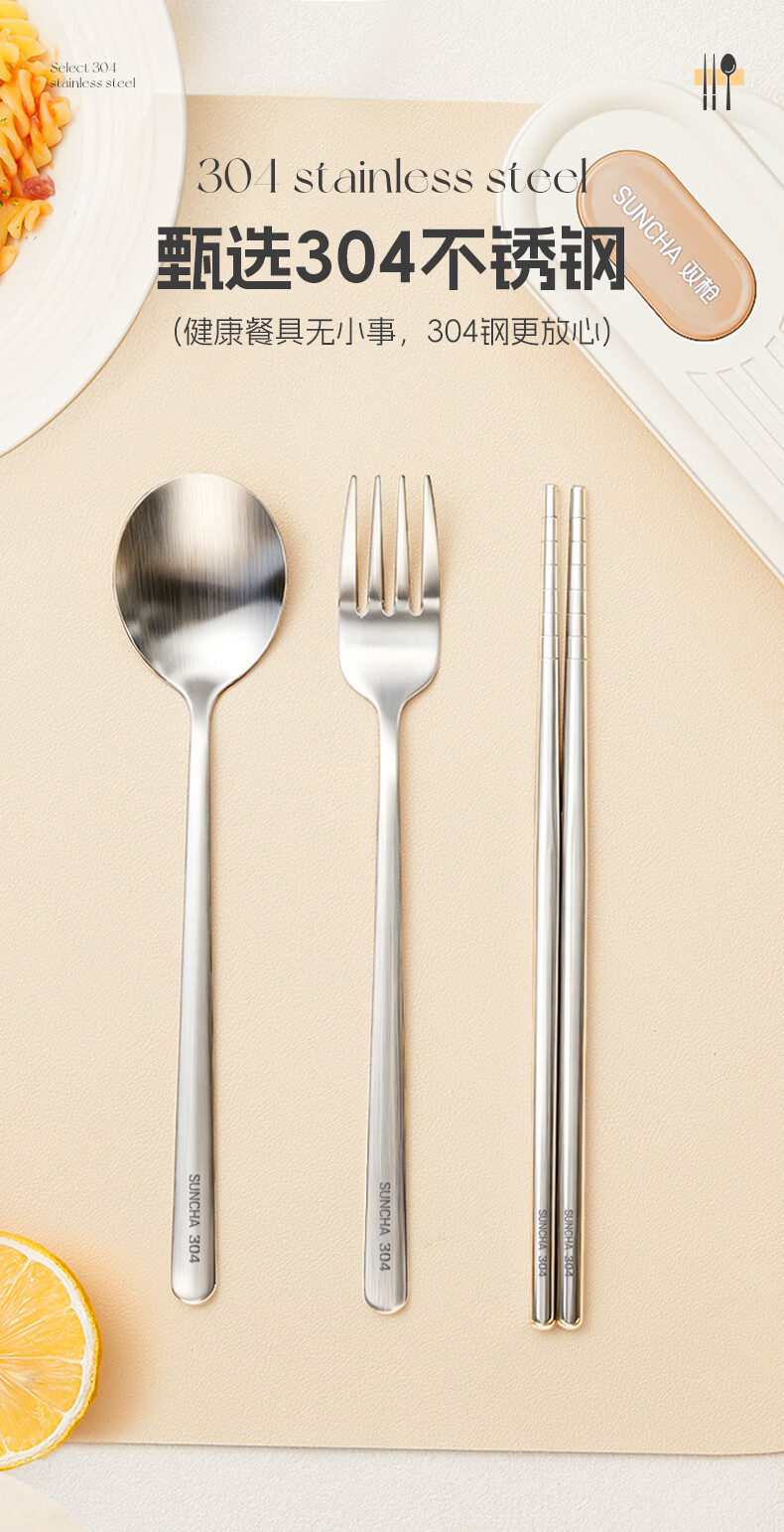 双枪食品级304不锈钢便携餐具筷子个人专用学生成人筷勺盒 两件套