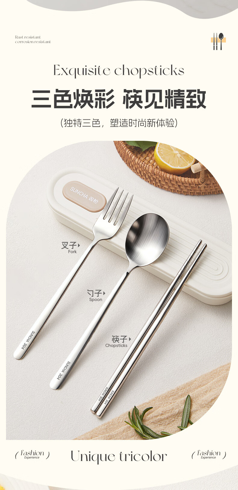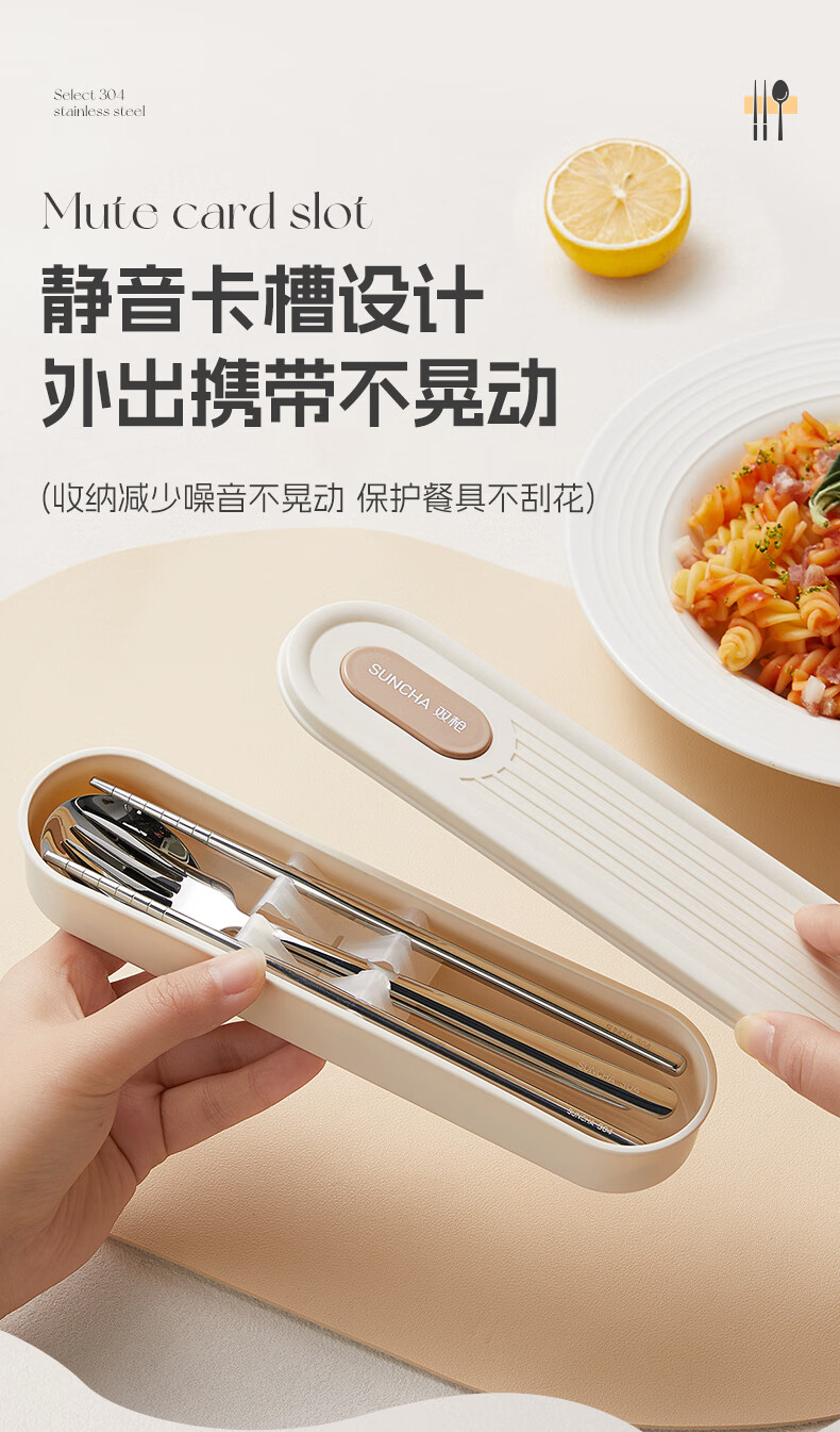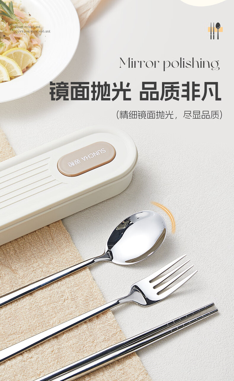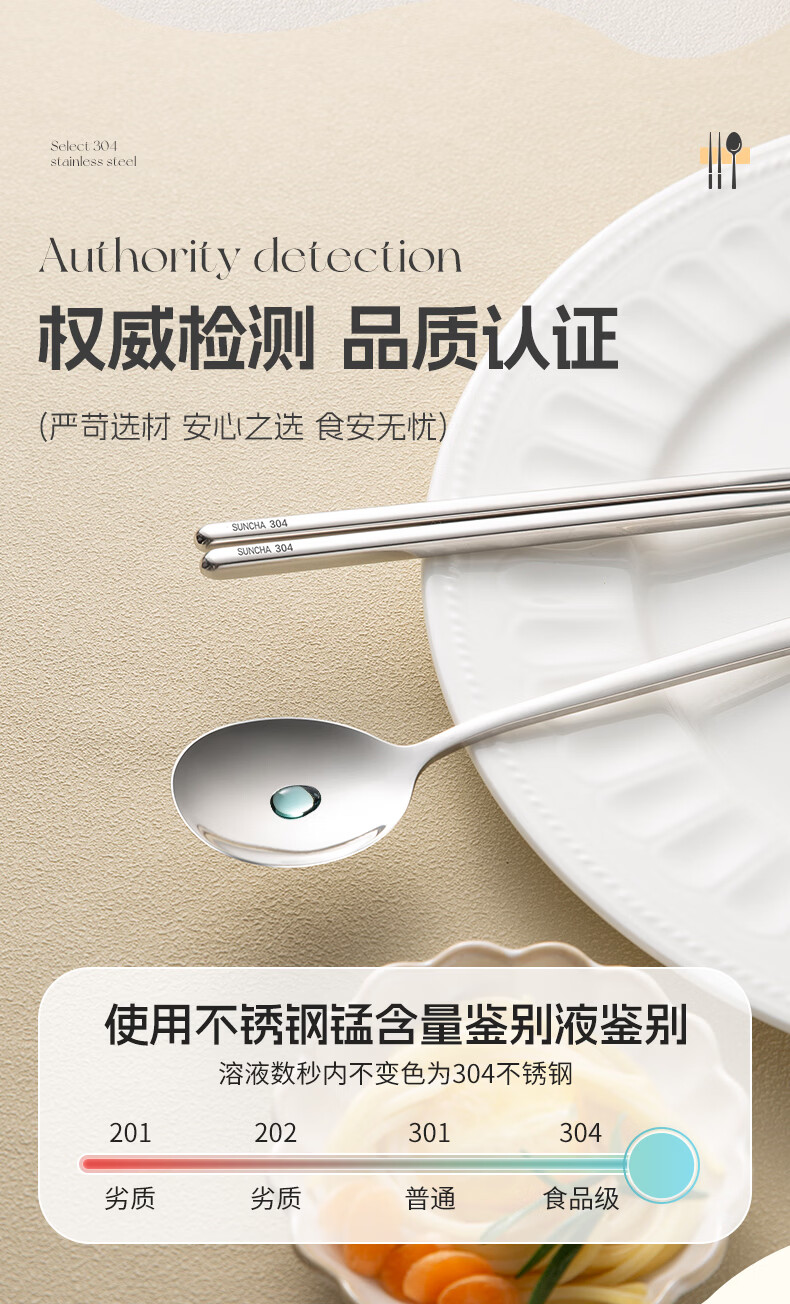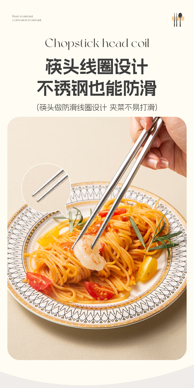 双枪食品级304不锈钢便携餐具筷子个人专用学生成人筷勺盒 两件套