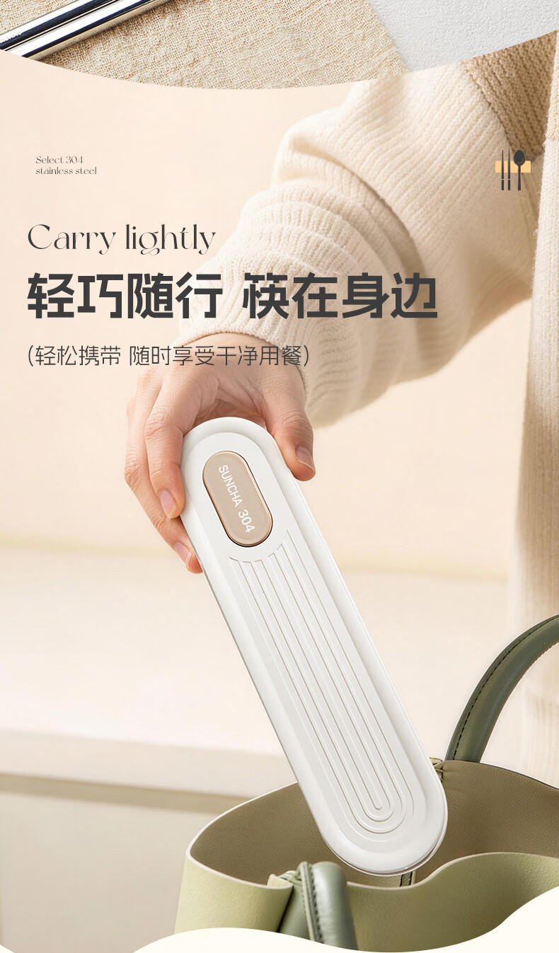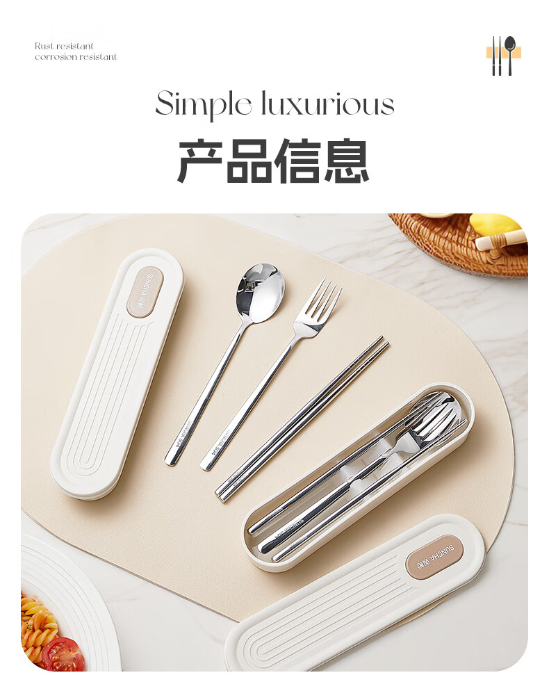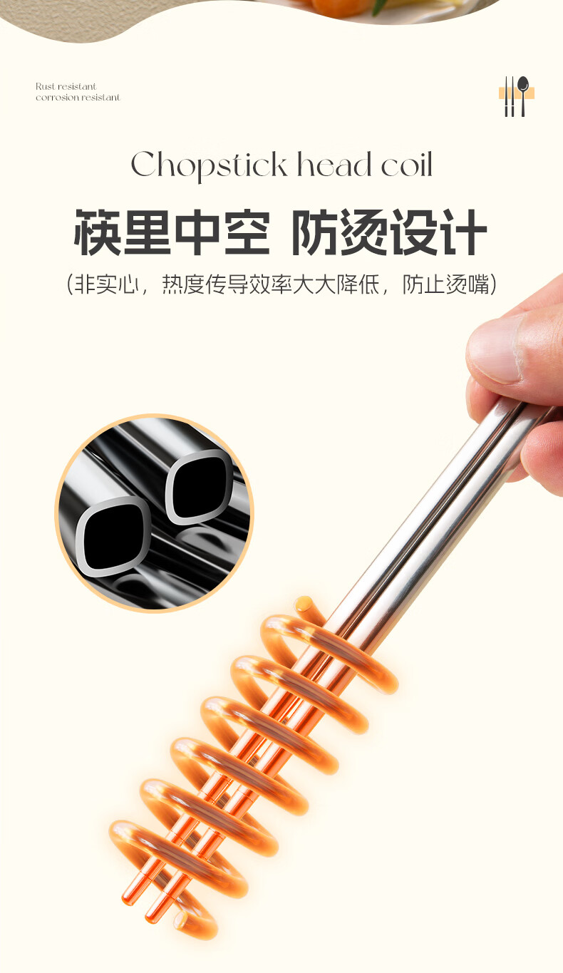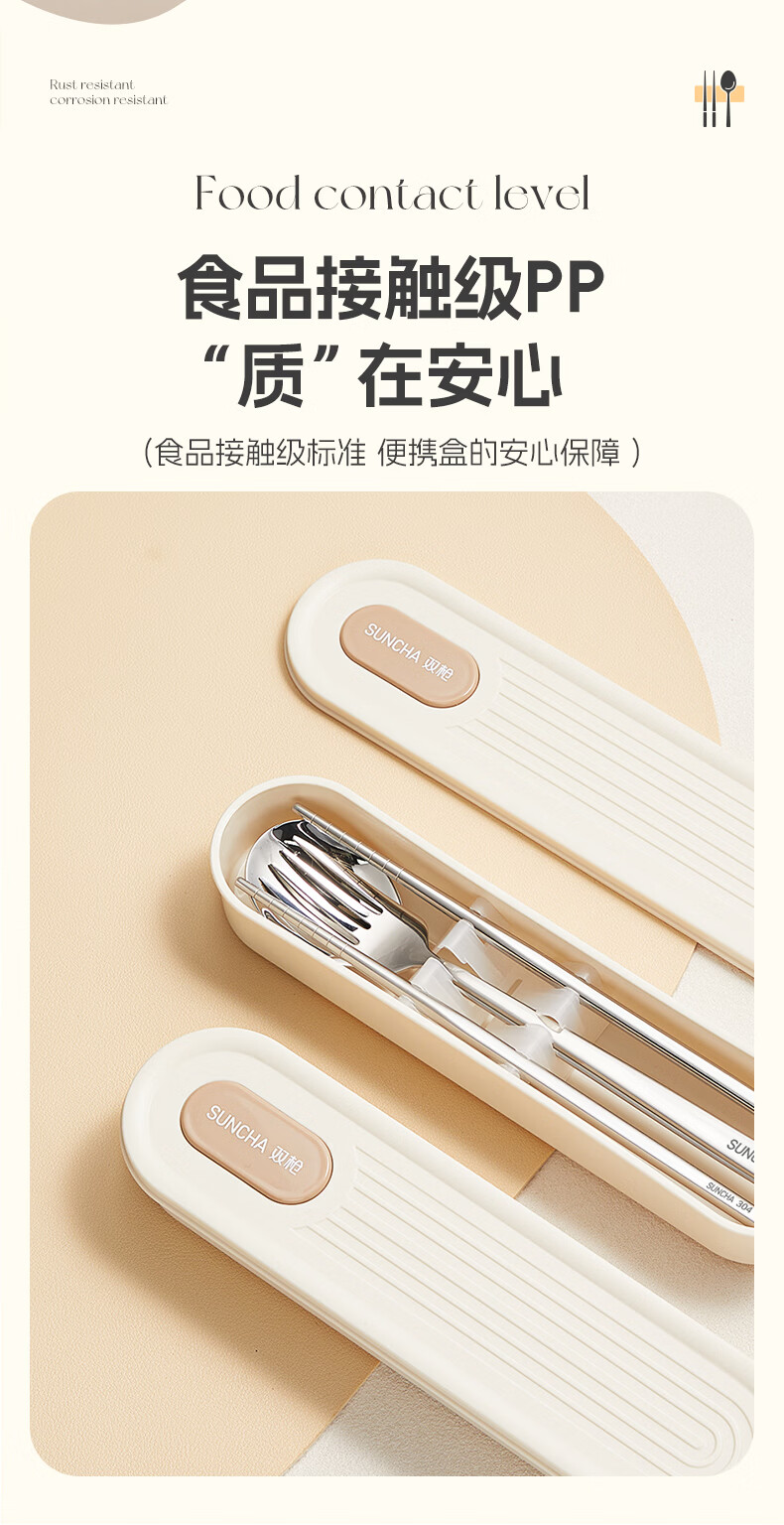 双枪食品级304不锈钢便携餐具筷子个人专用学生成人筷勺盒 两件套