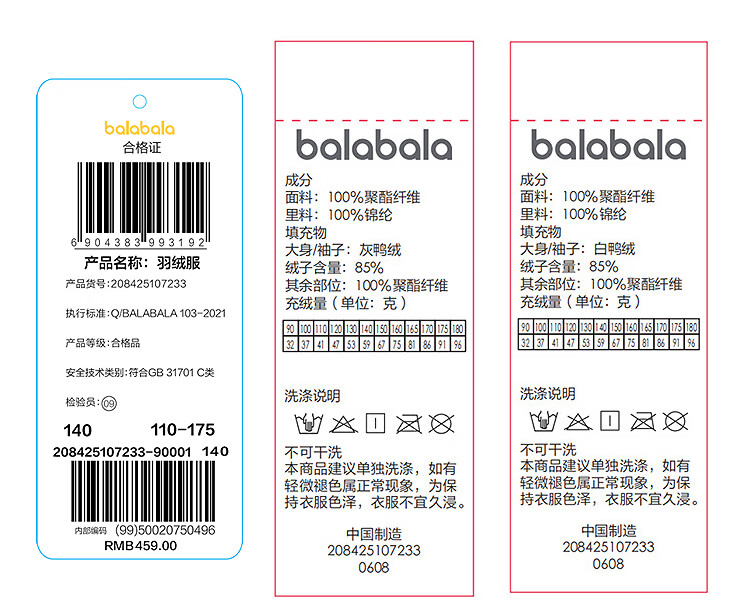 巴拉巴拉balaOne儿童羽绒服男童女童童装2025年冬季户外防护208425107233