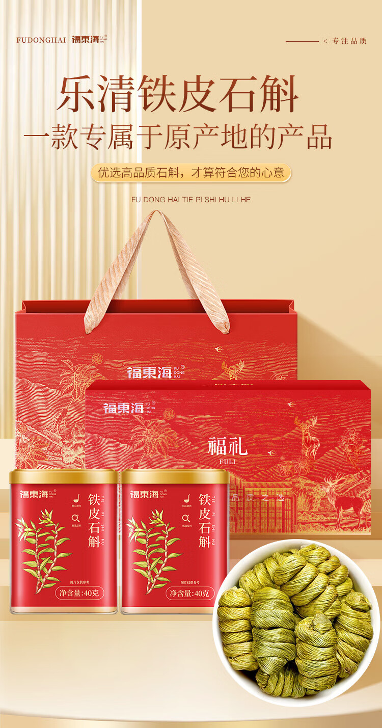 福东海 铁皮石斛80克(40*2罐)礼盒浙江乐清【特优】送父母送长辈