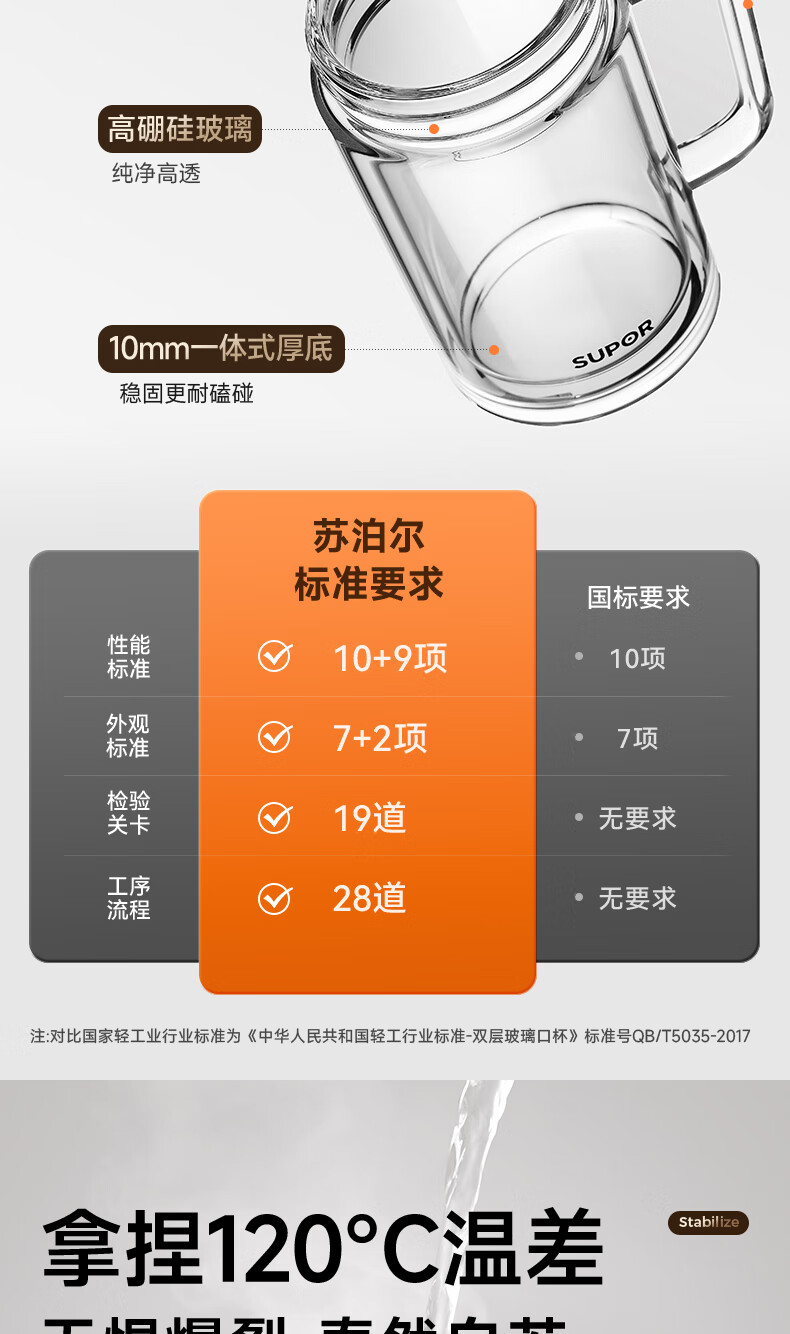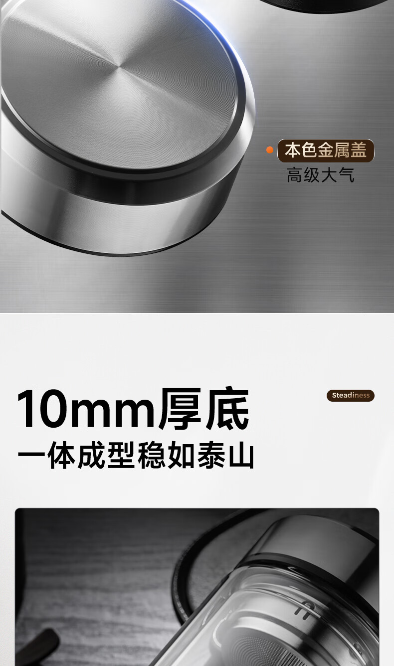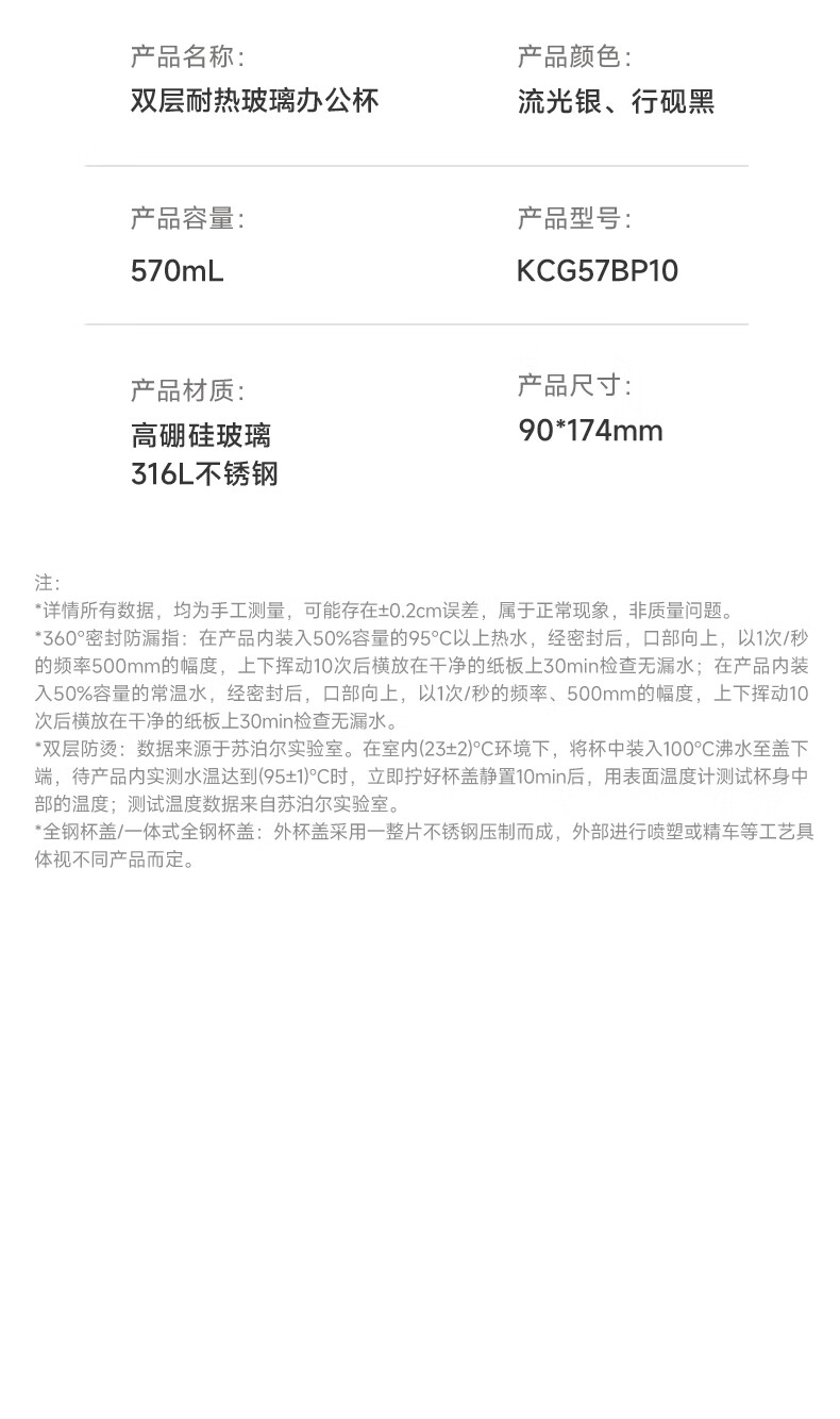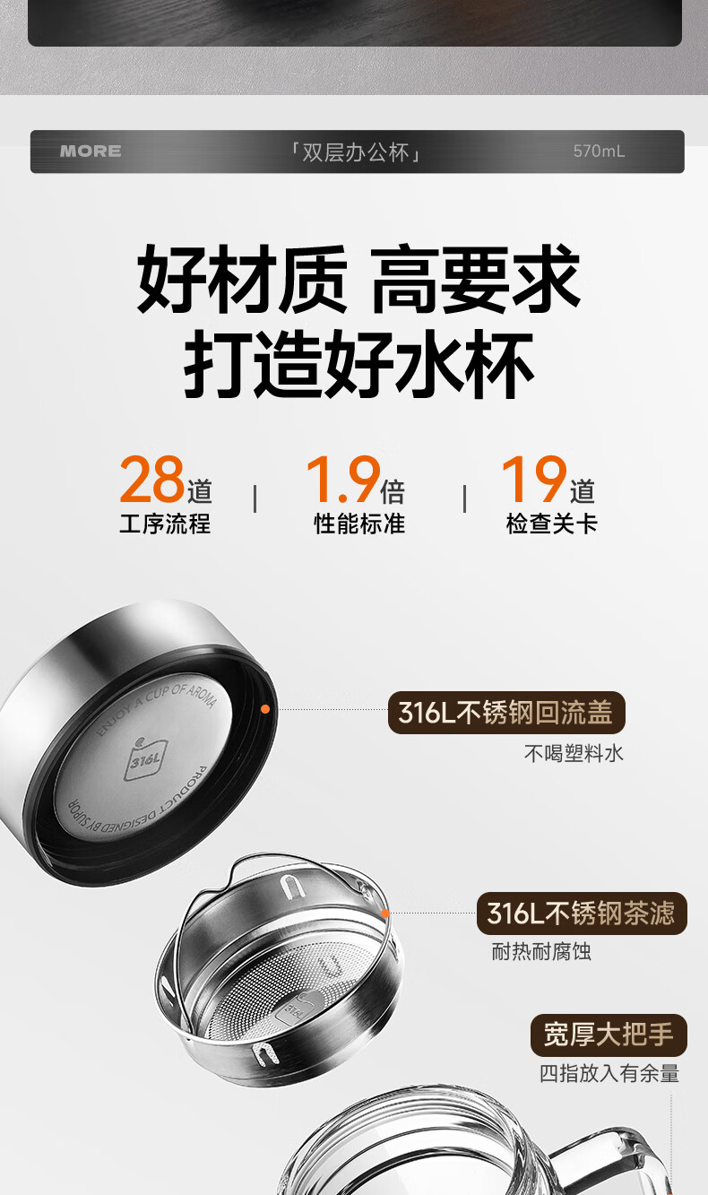 苏泊尔双层玻璃杯男家用商务办公泡茶杯子过滤车载水杯570mL.流光银