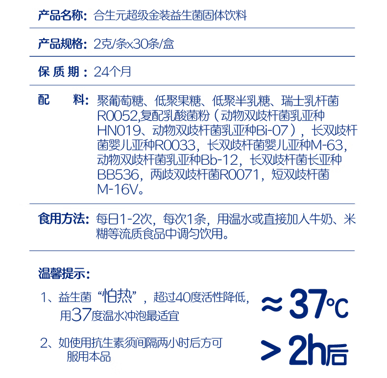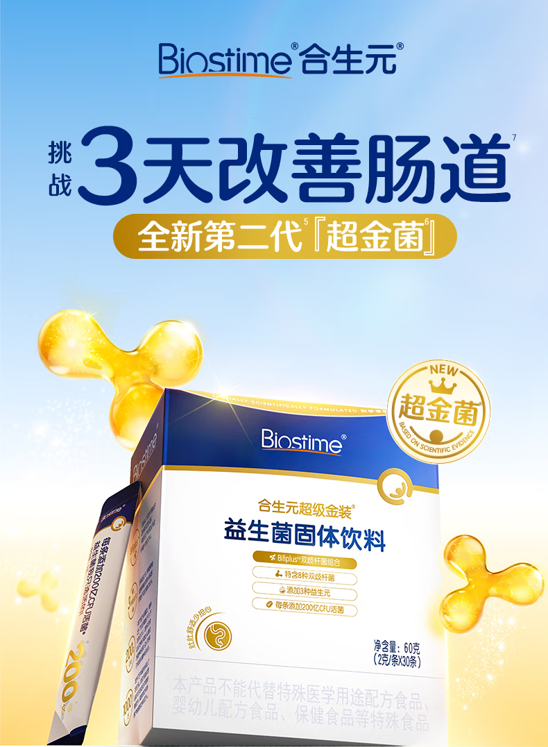 合生元(BIOSTIME)全新升级第二代超金菌益生菌婴儿双歧杆菌呵护肠胃改善肠道 30袋